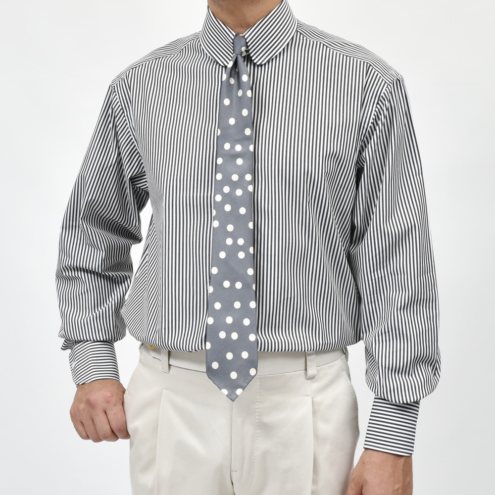 昔の凛々しい人が来ていたイギリスのカチッとした感じにしたくて、古いターンブル&アッサーで採用されていたイギリス的なディティールを採用。このシャツのコンセプトとしてイタリアのようなマニカカミーチャやアメリカ的な仕様にしたくなかったんです。