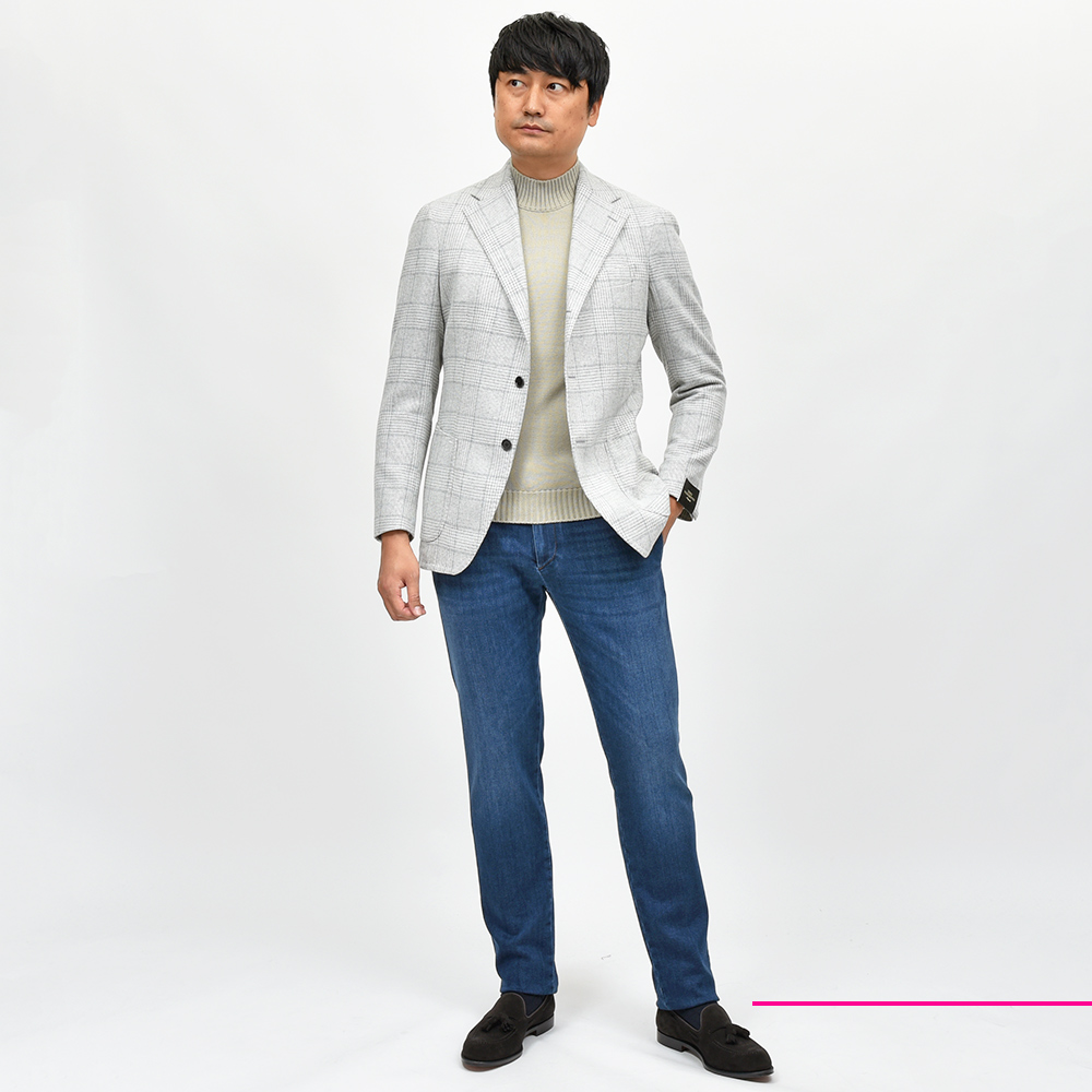 PT TORINOを代表する安定感抜群のシルエットに、上品さを香らせてくれるスラントポケットは言わずもがなの相性です。