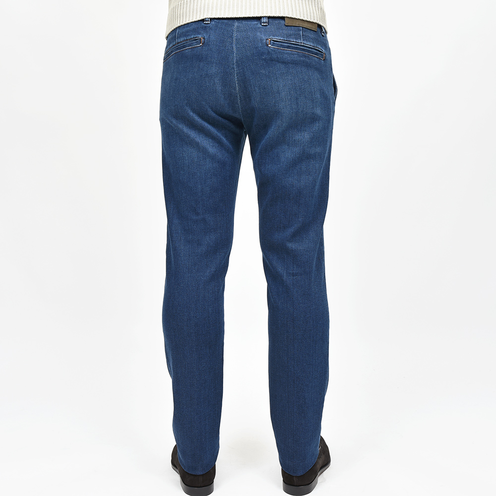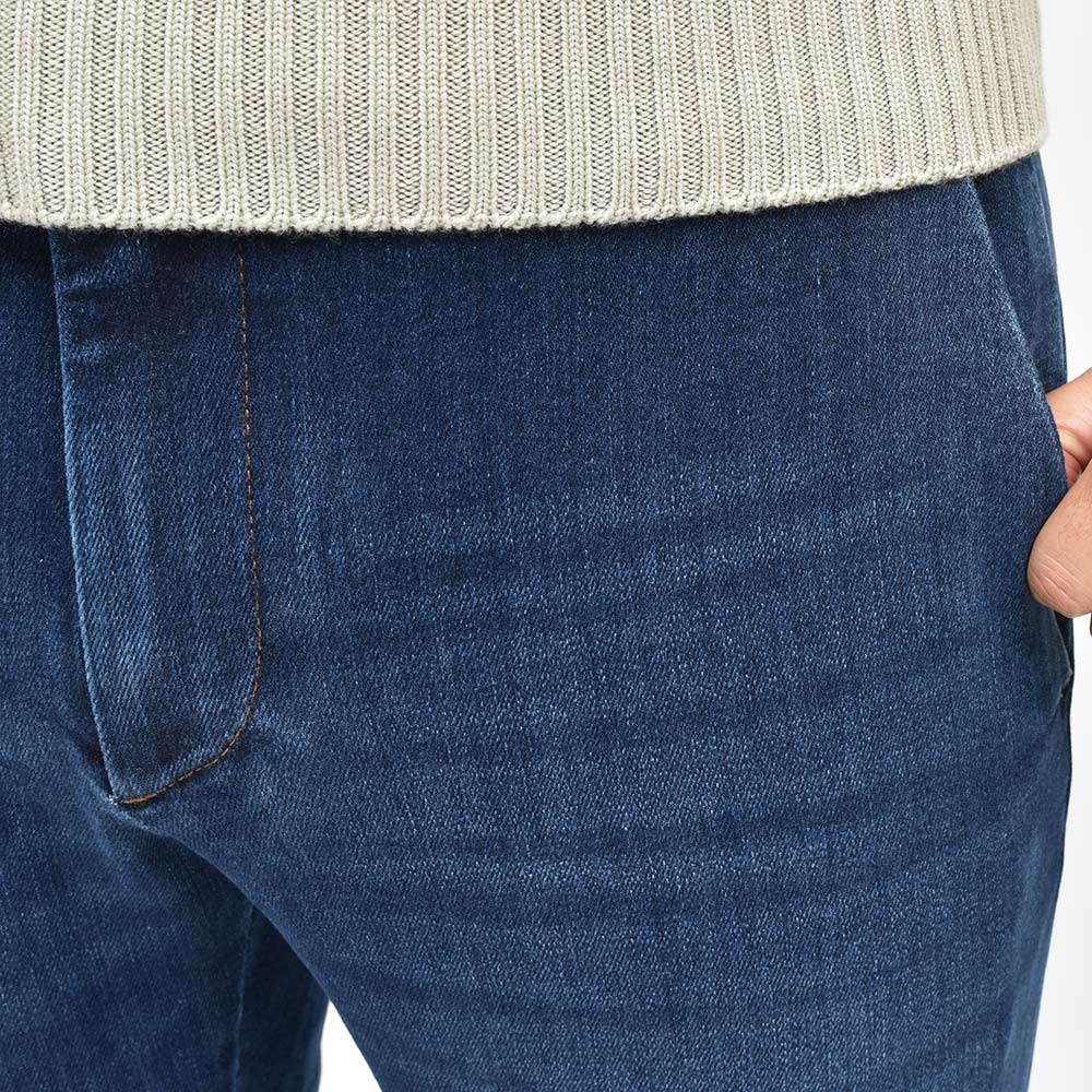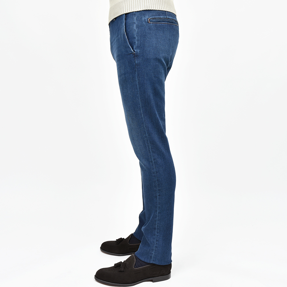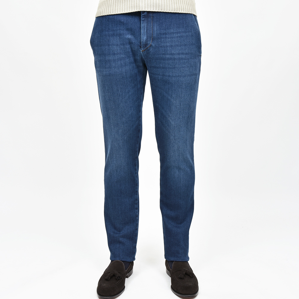 穿き回しの効くやや濃いめにインディゴを残したウォッシュドデニムは、カジュアルでの着用は勿論のこと、ジャケットなどの上品なスタイリングにも打って付けな一本です。また、大人気の“Travel”シリーズに近い伸縮性あるファブリックを使用していますので、その穿き心地は言わずもがな。シルバーカラーのボタン&リベットに、ブラウンのステッチがヴィンテージライクな表情。さらに、高級感のあるスエードの革パッチが大人の色気を演出してくれます。