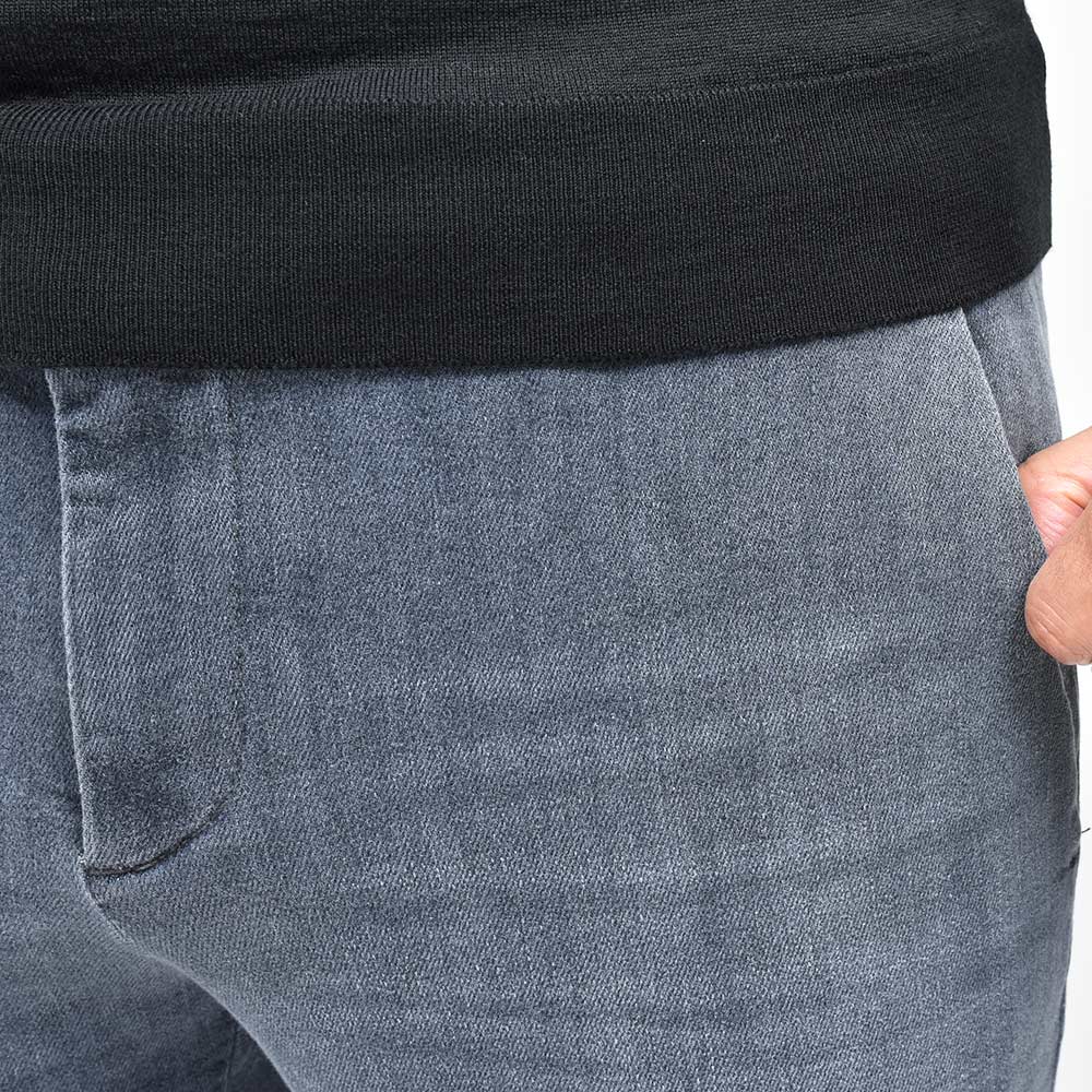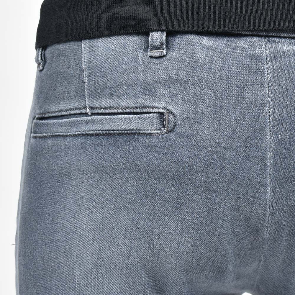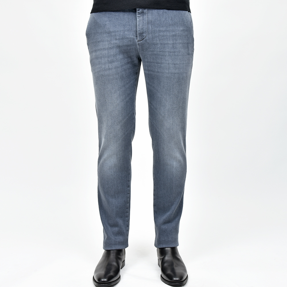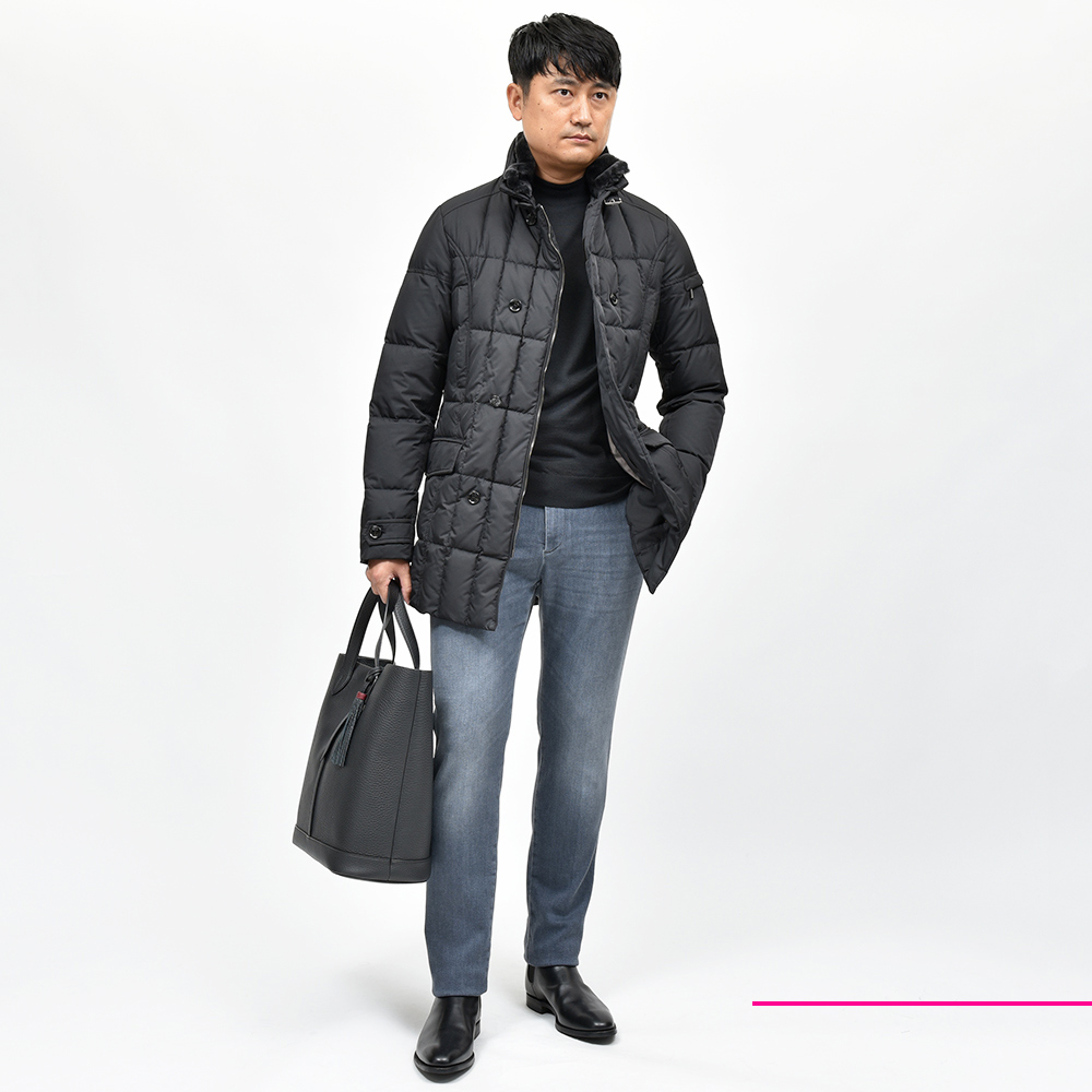 少しライトなトーンにウォッシュド加工を施したブラックデニムは、カジュアルでの着用は勿論のこと、ジャケットなどの上品なスタイリングにも打って付けな一本です。また、大人気の“Travel”シリーズに近い伸縮性あるファブリックを使用していますので、その穿き心地は言わずもがな。マットブラックのボタンに、同色のステッチがモダンな表情。さらに、高級感のあるスエードの革パッチが大人の色気を演出してくれます。