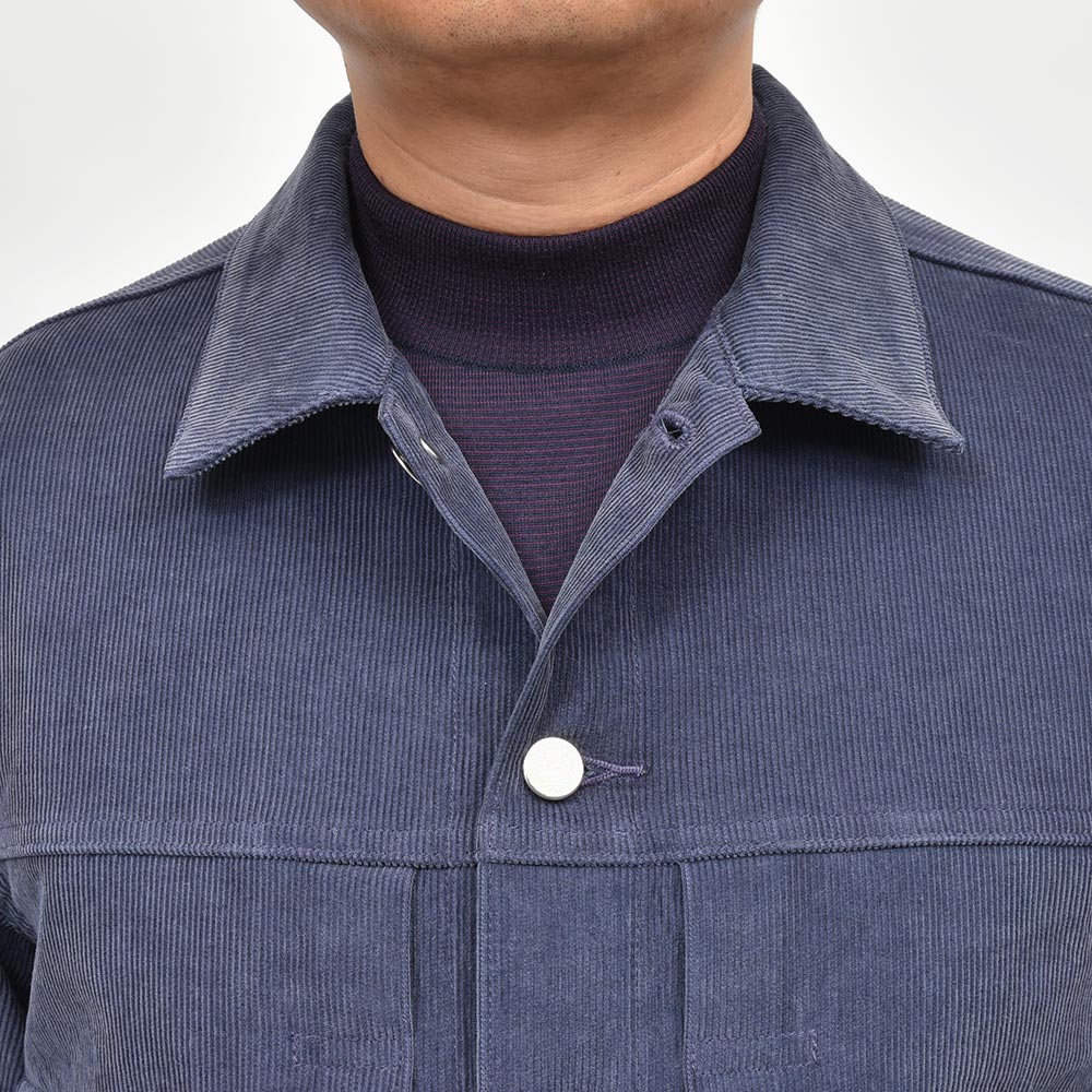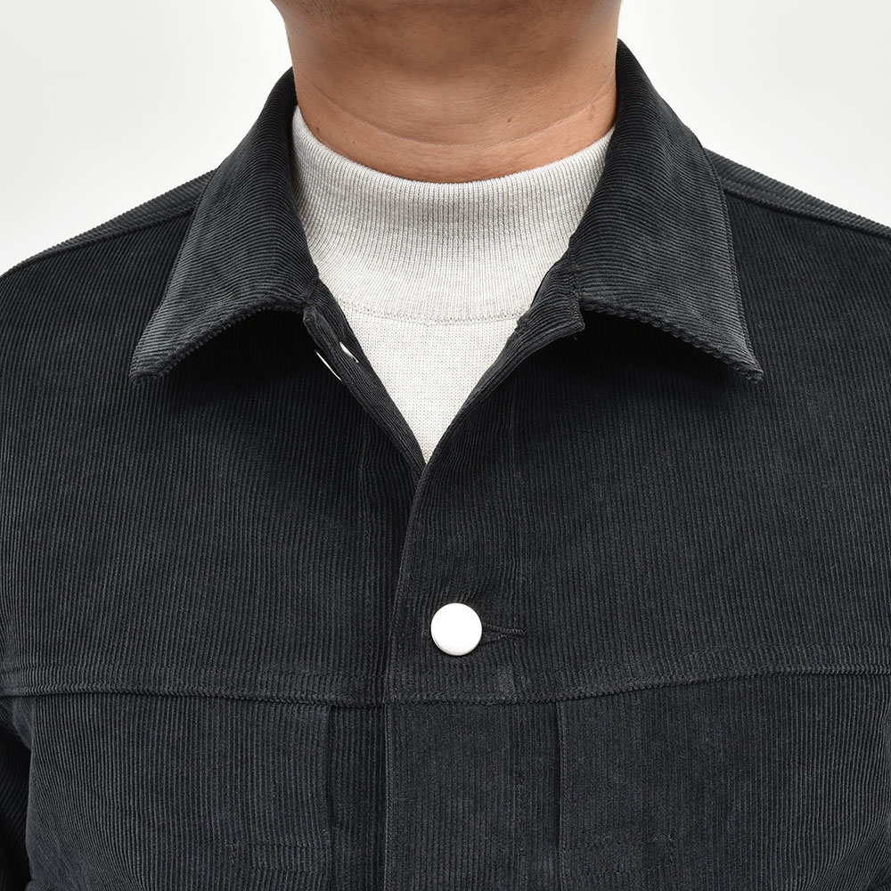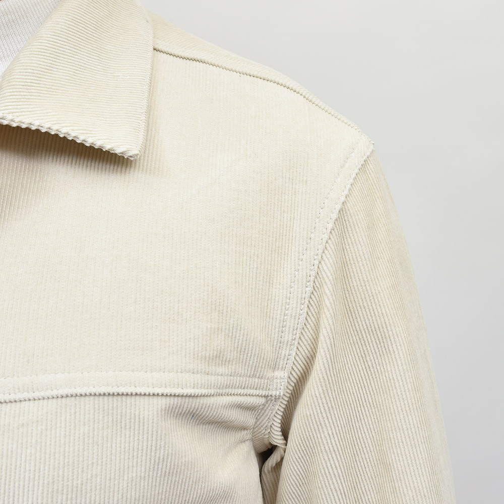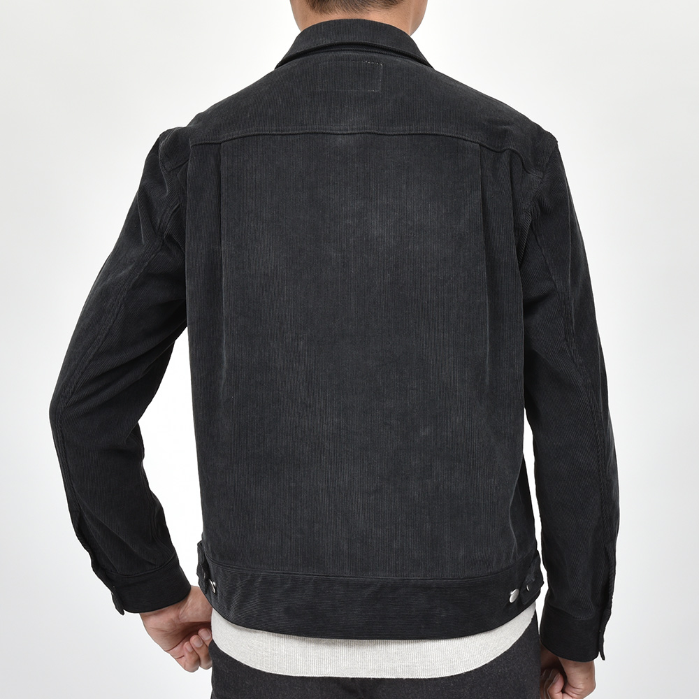 両胸ポケットのボタンに、左胸ポケットのブランドネームタグを排し、使用されているボタンも刻印などのない未気質なデザイン。それらによってビンテージライクではなく、あくまで現代的な表情が生まれ、モダンなスタイルを作り上げてくれます。また、肩付けにテーラードの技術を採用することで前振り袖となっており、肩周りの可動域が確保された抜群の着心地となっています。