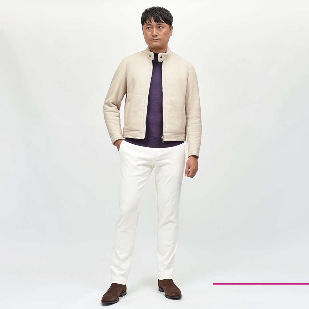 ムートン×ライダースの組み合わせは、人生の経験値を色気に変換してくれるような気がする不思議な一着です。