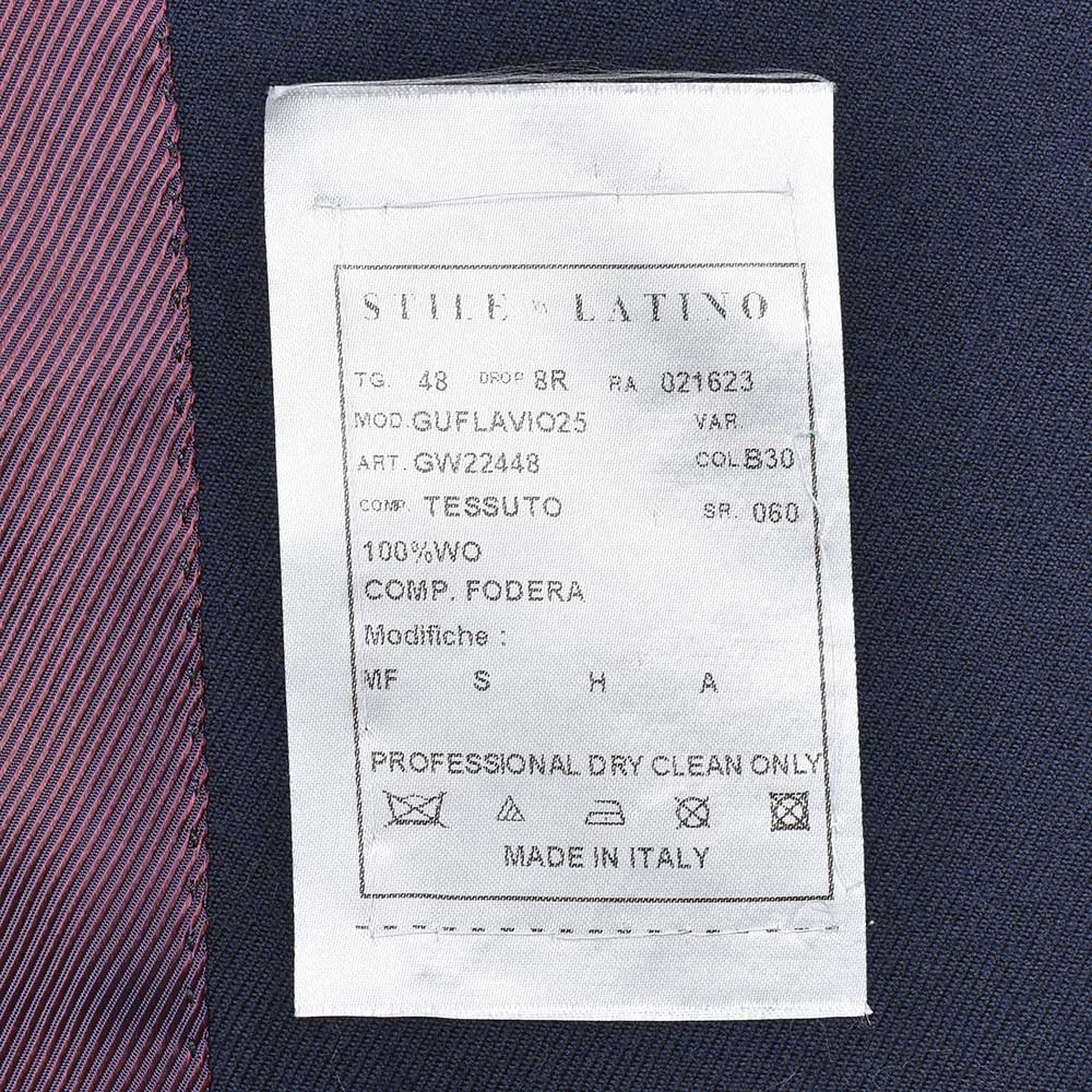 サイズ44でジャストサイズです。肩周りはピッタリフィット、ウエストもジャストといったサイズ感で、STILE LATINOと同じサイズでバッチリです。ベーシックなネイビージャケットのなので飽きのこない一着です。