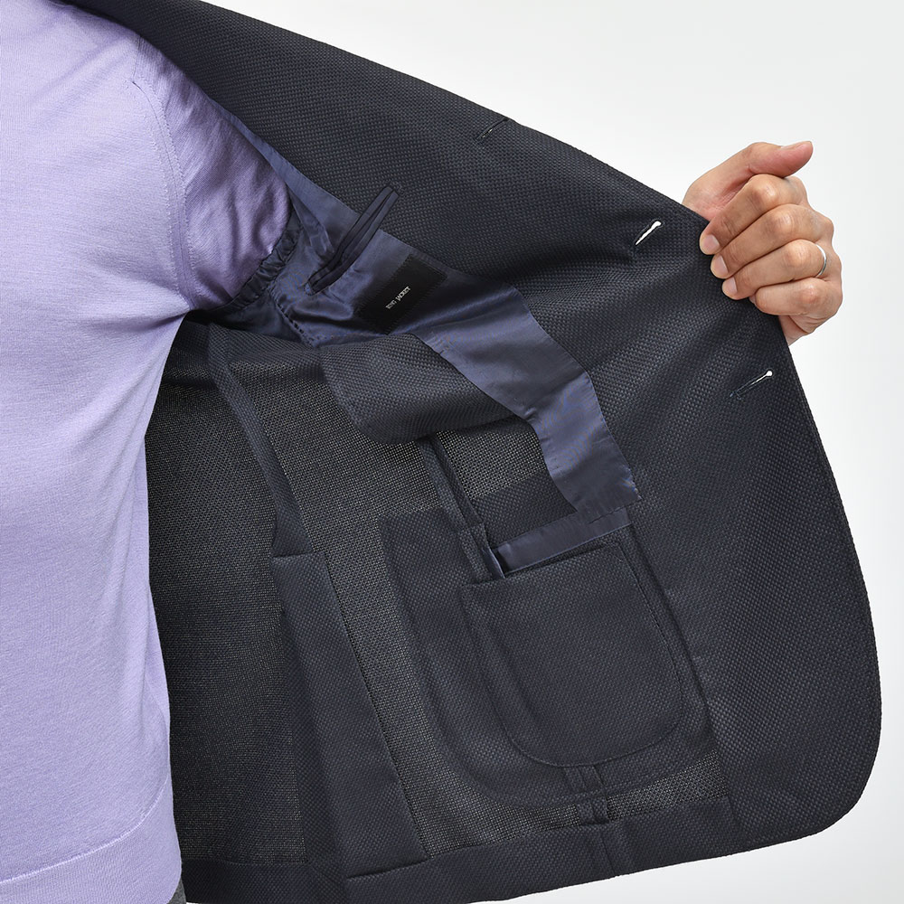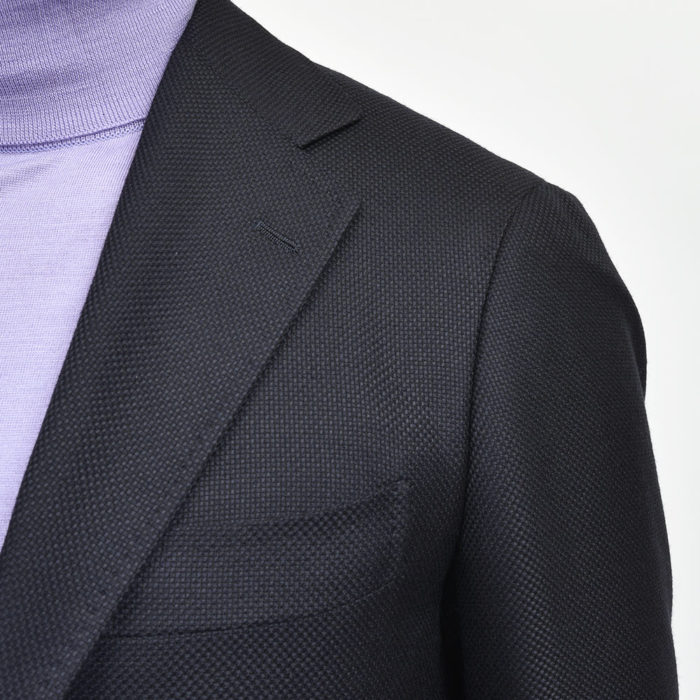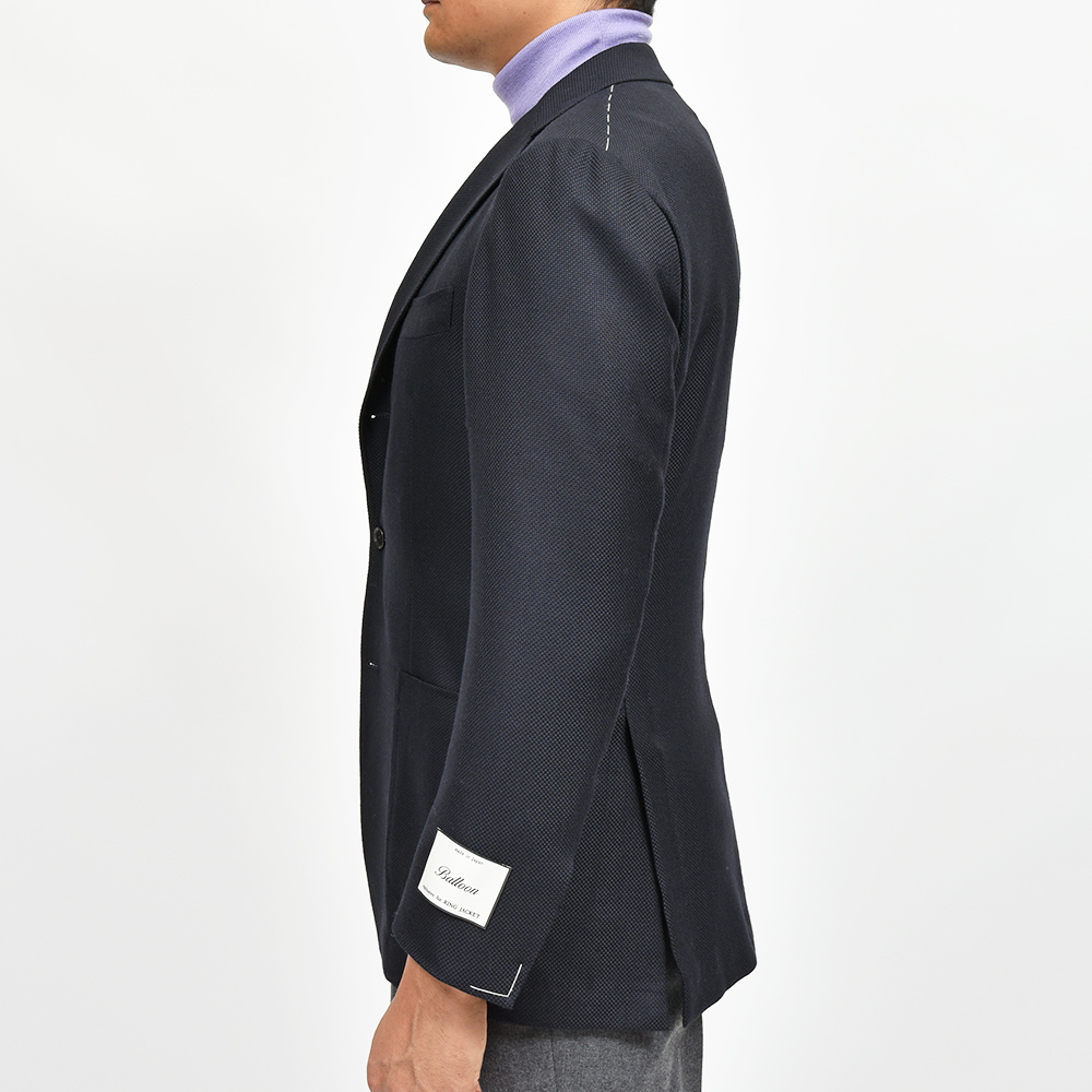 深いネイビーのホップサックジャケットは一着あれば何かと便利なのは言うでもありませんが、クラシックさとモダンさのバランスが非常に秀逸な見た目は様々なスタイリングに呼応してくれます。