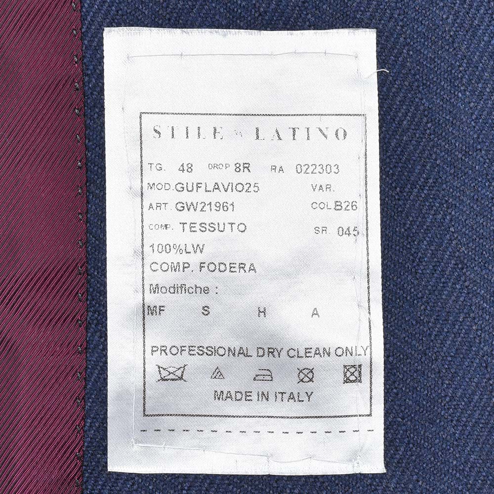 サイズ46でジャストサイズです。肩周りはピッタリフィット、ウエストもジャストといったサイズ感で、STILE LATINOと同じサイズでバッチリです。青みのあるネイビーにブリティッシュなヘリンボーンが雰囲気のある一着です。