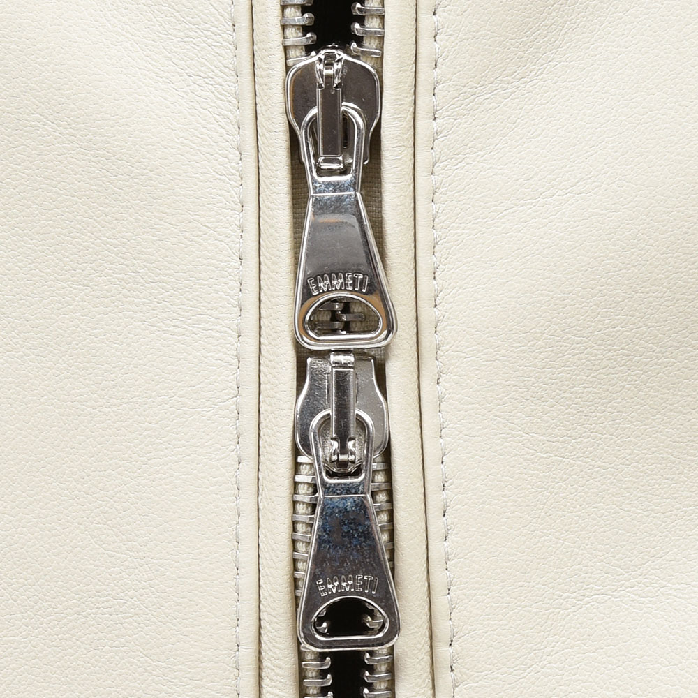 言わずと知れた、EMMEIの大定番シングルライダース“JURI”。以前からココンチでは不動の人気モデルではありましたが、今や新時代のライダースジャケットにおいて代名詞とも言えるほどの知名度になりました。その特徴はボディラインを美しく見せるタイトなフィッティングに、艶やかなシルバージップが大人の色気を香らせる。やはり、このモデルは圧倒的な完成度を誇ります。