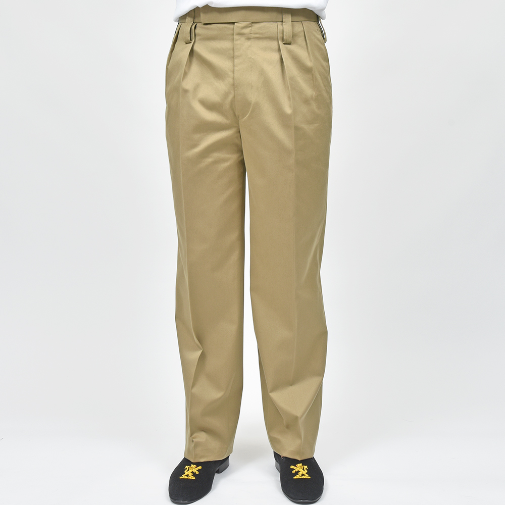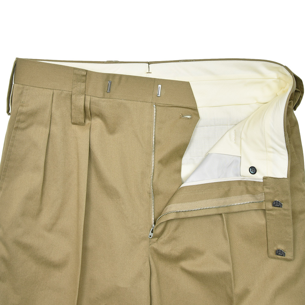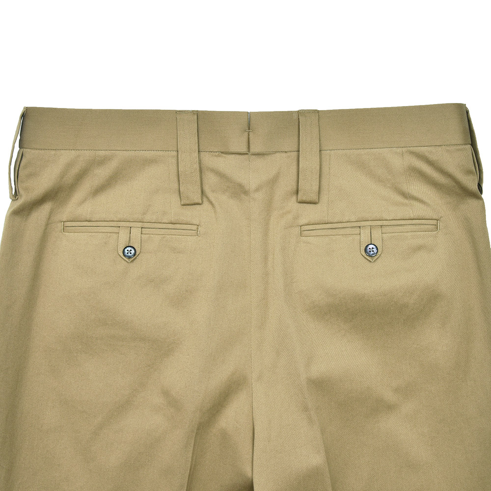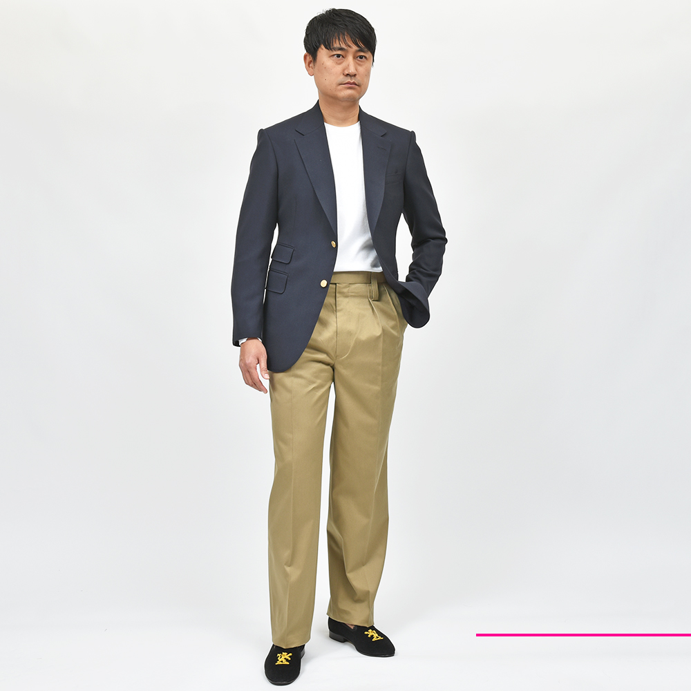 こちらのモデル“DAVIS(デイビス)”は、イギリス軍のミリタリーパンツをモチーフに、平野氏らしい英国ビスポークのテクニックを詰め込んだニューモデル。ドレススタイルは勿論、カットソーやニットをタックインした、カジュアルなスタイルにも合わせることができます。