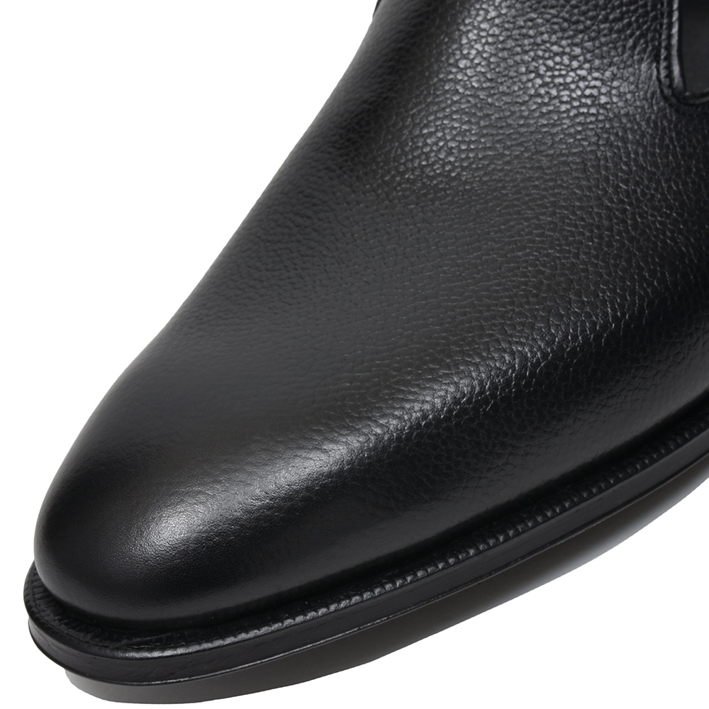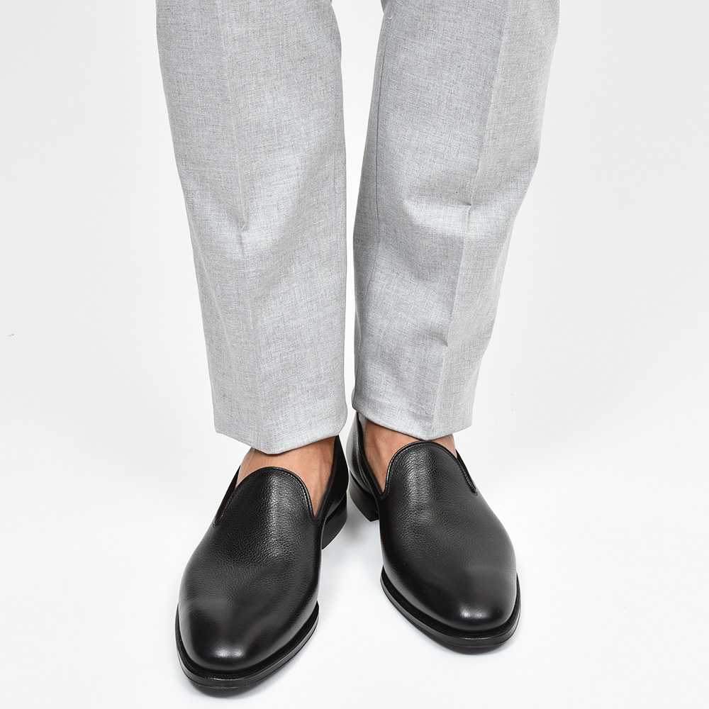 シンプルなデザインで普遍的な色気を香らせる“KENSINGTON3”。今回ringでオーダーしたKENSINGTON3は、シボが細かなぺブルグレインレザーを載せました。程よい無骨さと程よいシャープなシルエットを持つKENSINGTON3は、デニムなどのカジュアルなスタイルからスーツのハズしとして非常に有効です。アッパーはグレインレザーを使用することで傷に強く、多少の撥水性も兼ね備えていることでデイリーユースに履きやすい一足に。また、アッパー同様にライニングとレザーソールをブラックにすることで、シューズ単体で見てもモダンな印象が生まれグッと存在感を増しています。