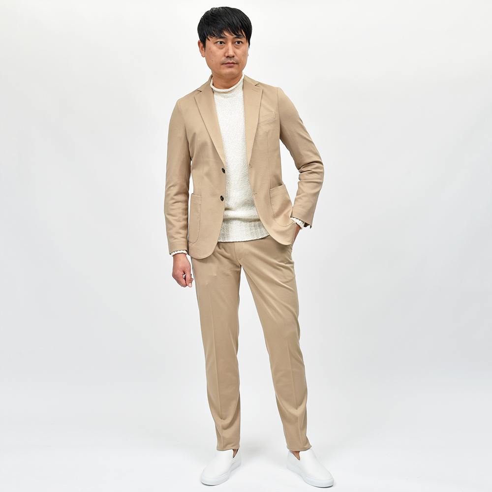 コットン ストレッチ プレミアムピケ 鹿の子ジャージー セットアップ対応 シングル2Bジャケット