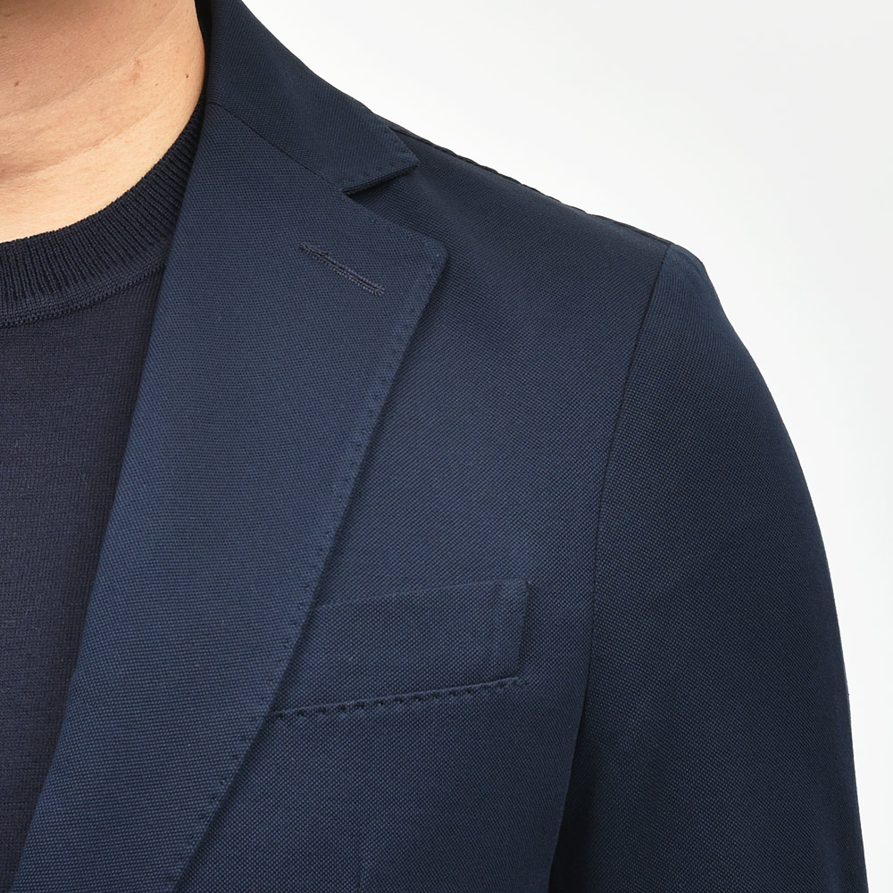 コンフォート素材を使用したセットアップの先駆者である、CIRCOLO 1901。コチラは、定番である“ピケ=鹿の子”よりもさらに目付を軽くし上品な風合いに仕上げた“プレミアムピケ”を使用。清涼感は勿論のこと、さらには伸縮性をも持ち合わせたジャージー素材というハイブリットな一着になります。程よくタイトなシルエットに、2つボタン仕様がカジュアルなジャケットとして非常に有能な働きをしてくれます。