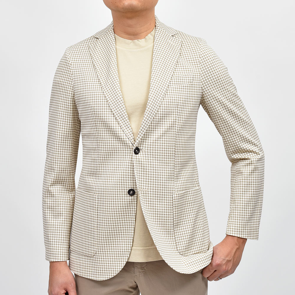コットン ストレッチ プレミアムピケ 鹿の子ジャージー ハウンドトゥース シングル2Bジャケット