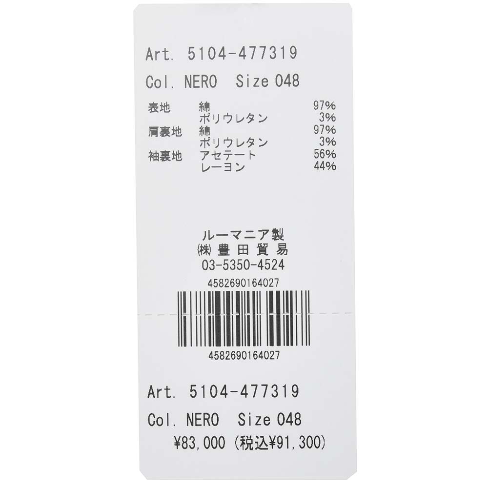 肩裏地:コットン97% ポリウレタン3%