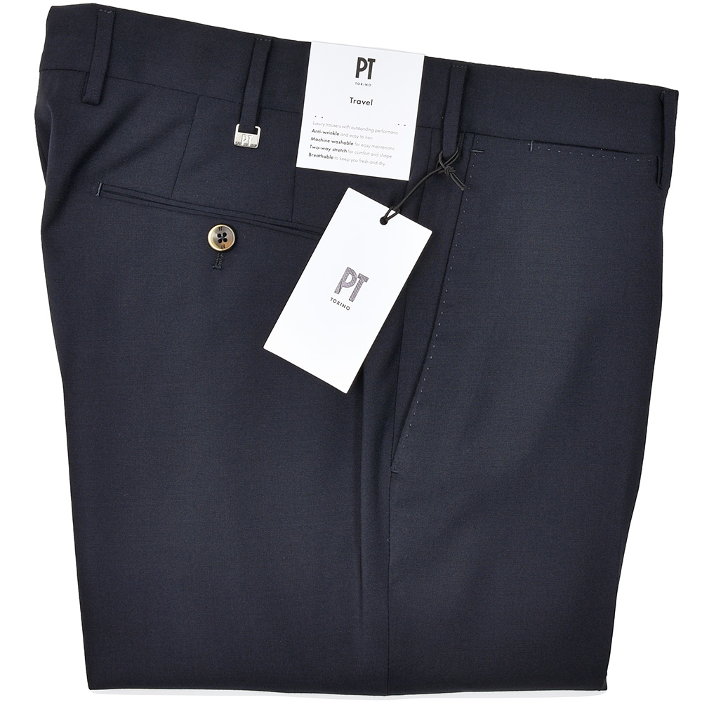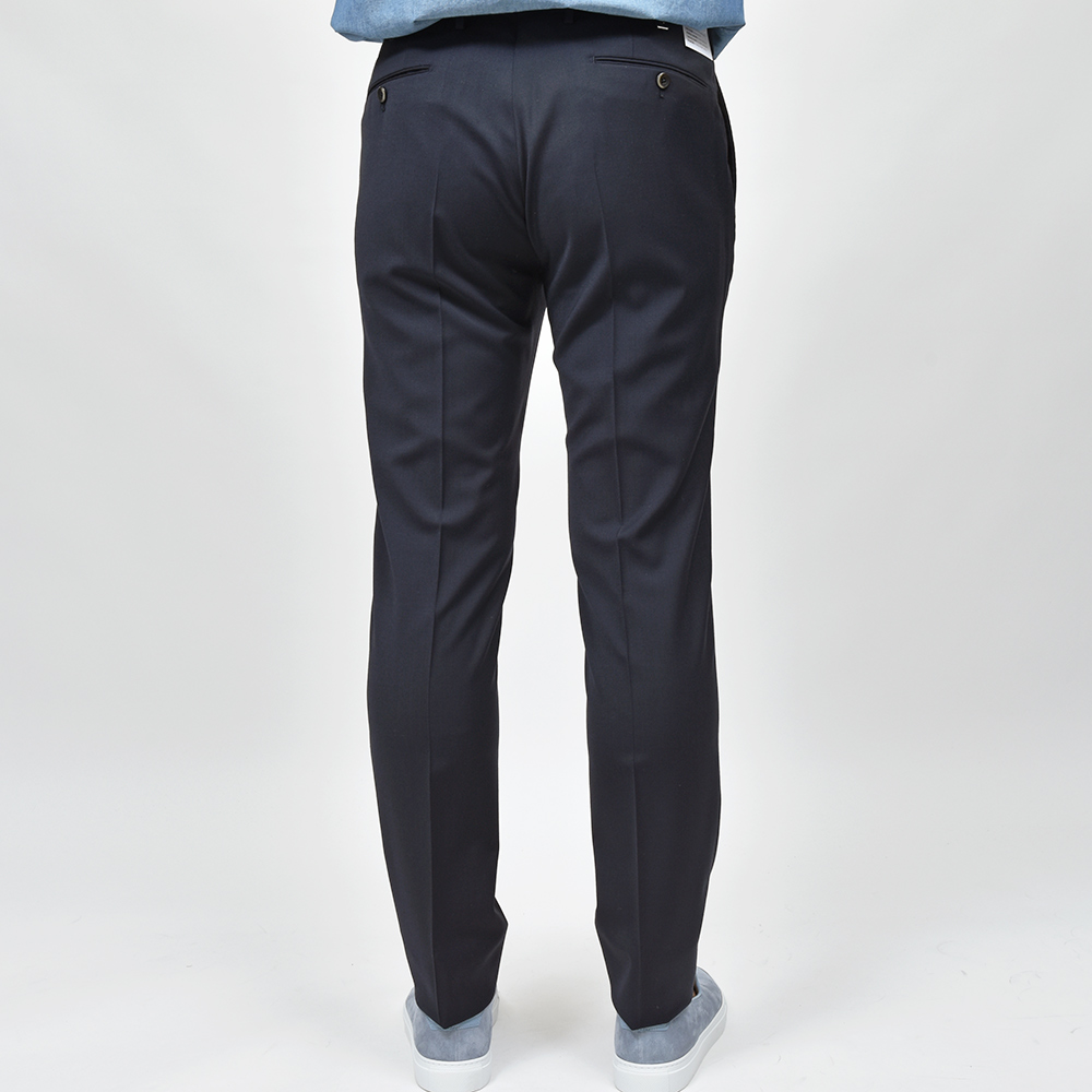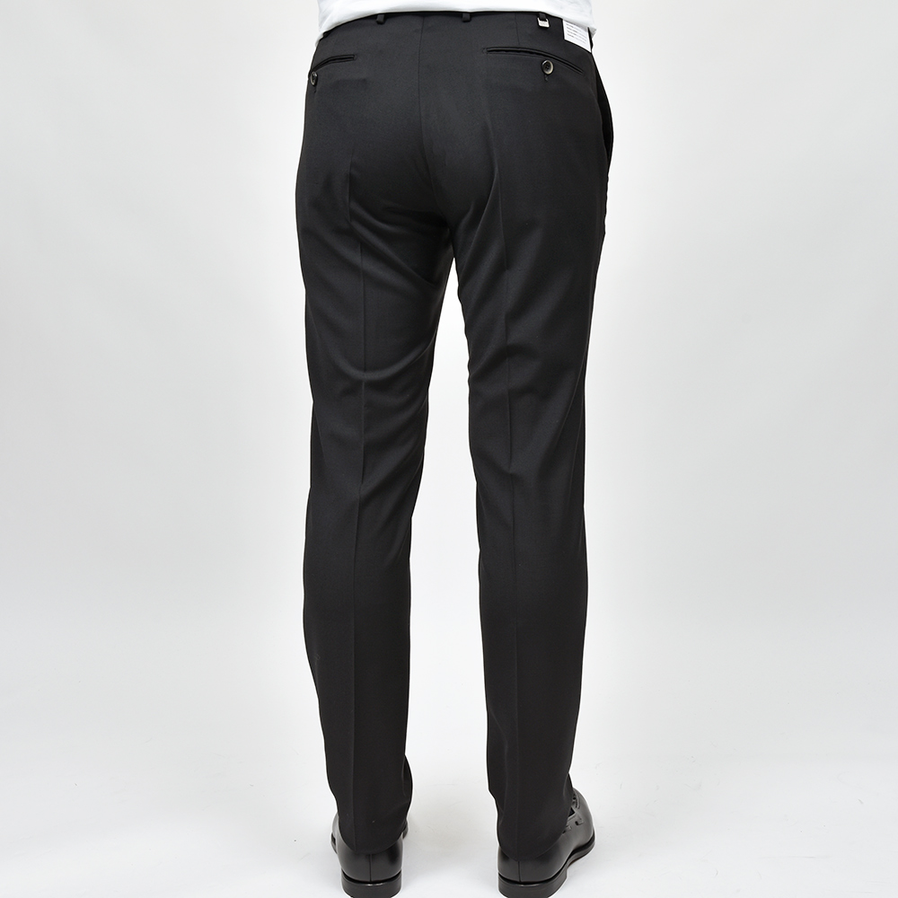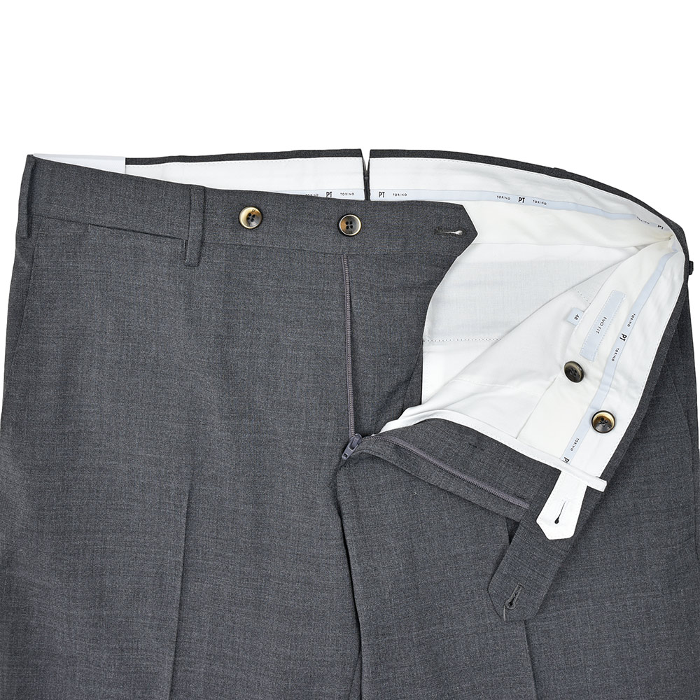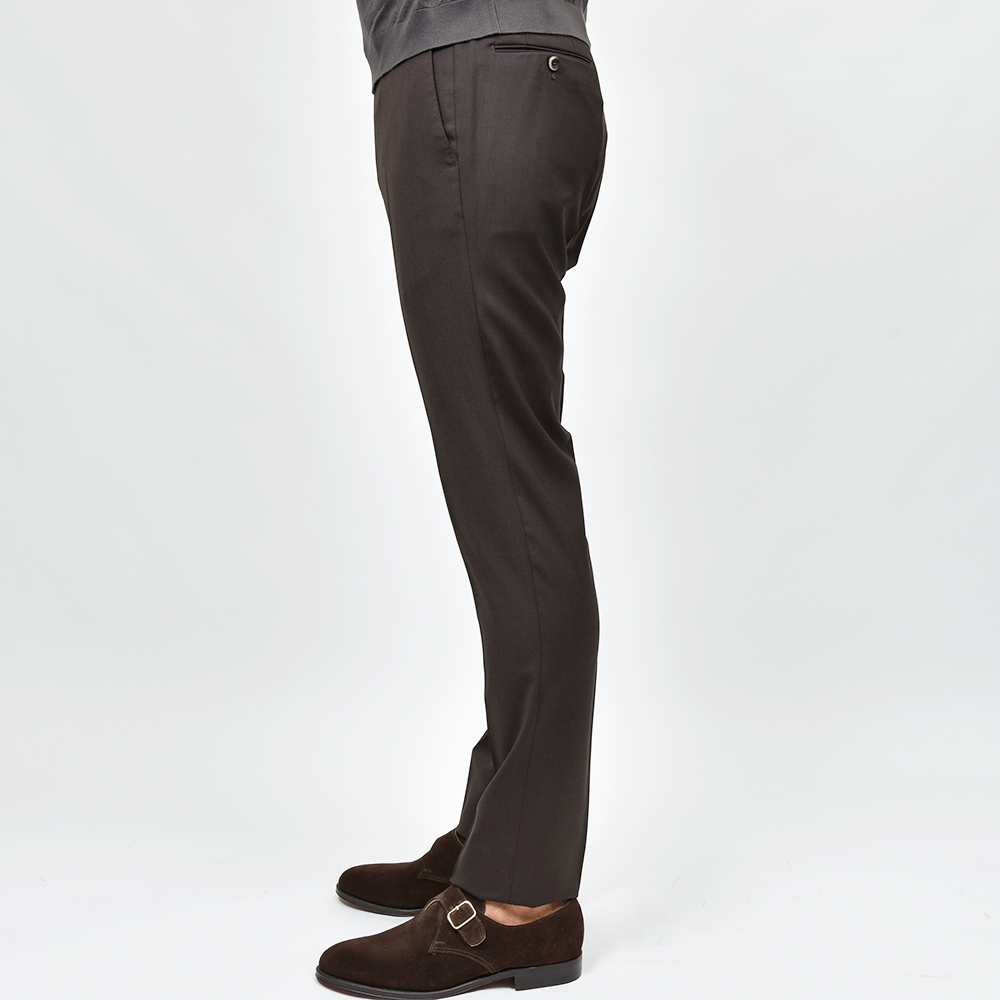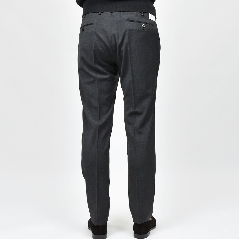 元祖美脚シルエットを誇るPT TORINOの代名詞“SUPER SLIM FIT”に比べて、渡りと太もも周りに少しゆとりを持たせた“EVO FIT”。ビジネスシーンで想定される立ったり座ったりを繰り返すデスクワークや、“SUPER SLIM FIT”では少し腰回りが窮屈という方には打って付けのFITになります。