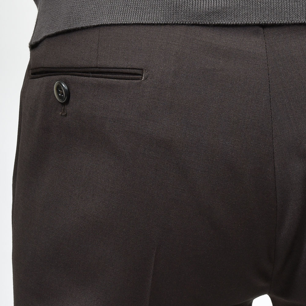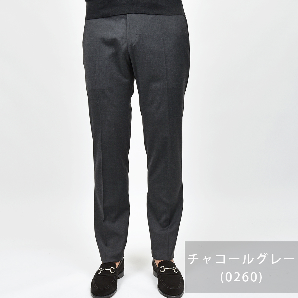 目付け260gの“WASHABLE STRETCH TECHNO WOOL”と名付けられたこちらは、一度穿くとやめられないビジネスパンツの金字塔”Travel”シリーズ。言わずもがなのストレッチが効いたバツグンの穿き心地に、トロピカルウールのドライなタッチは蒸れる日本の風土にぴったり。使用されているポリエステルとウールの混紡素材は柔らかでシワになりにくく、立ったり座ったりを繰り返すビジネスシーンにおいて必須となる機能性。そして何よりも自宅で洗濯でき、アイロンをかける事でシワもスムーズに伸びます。