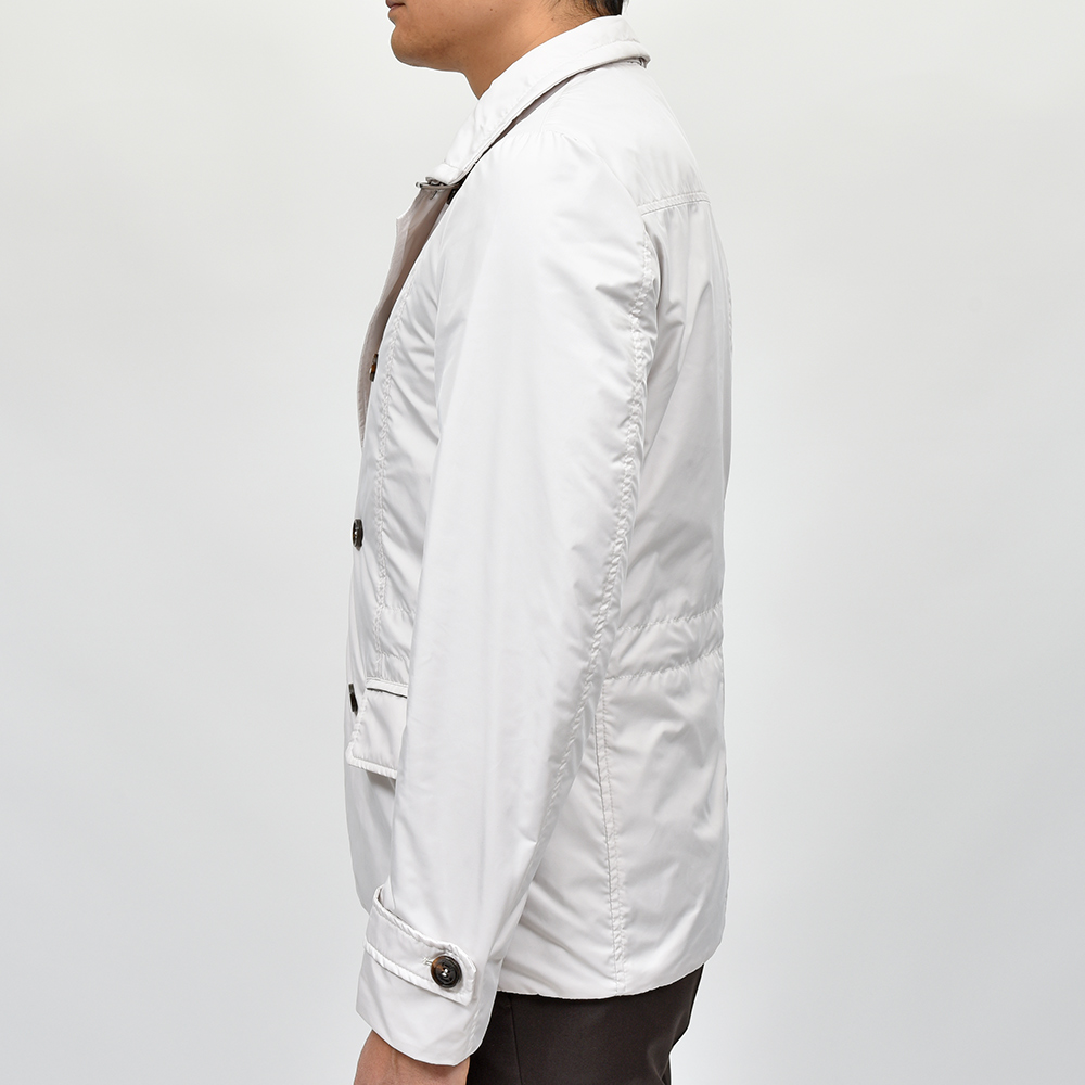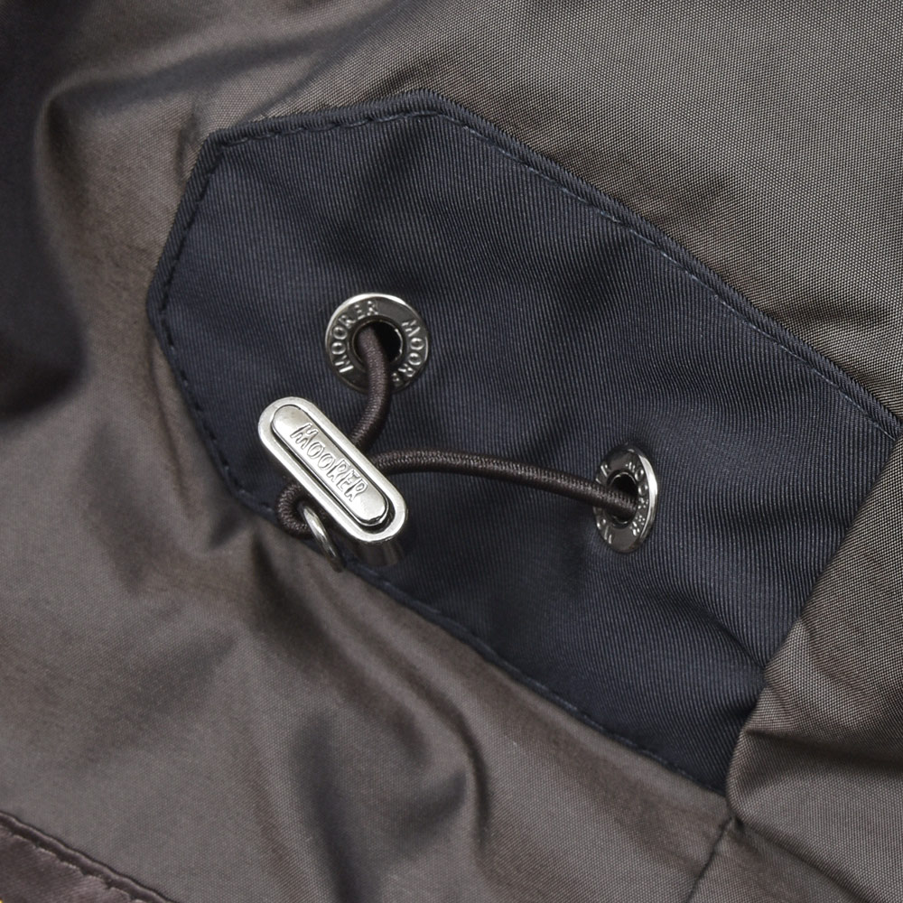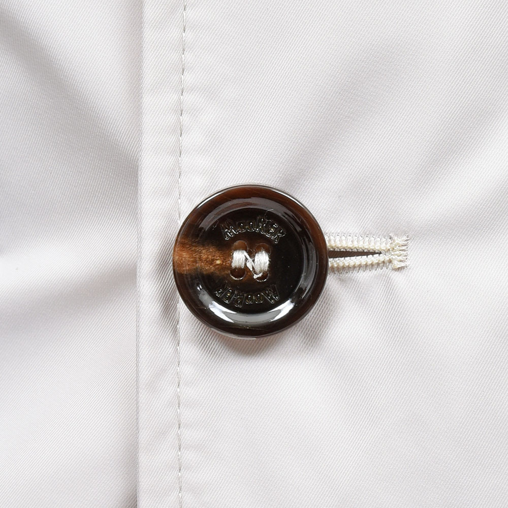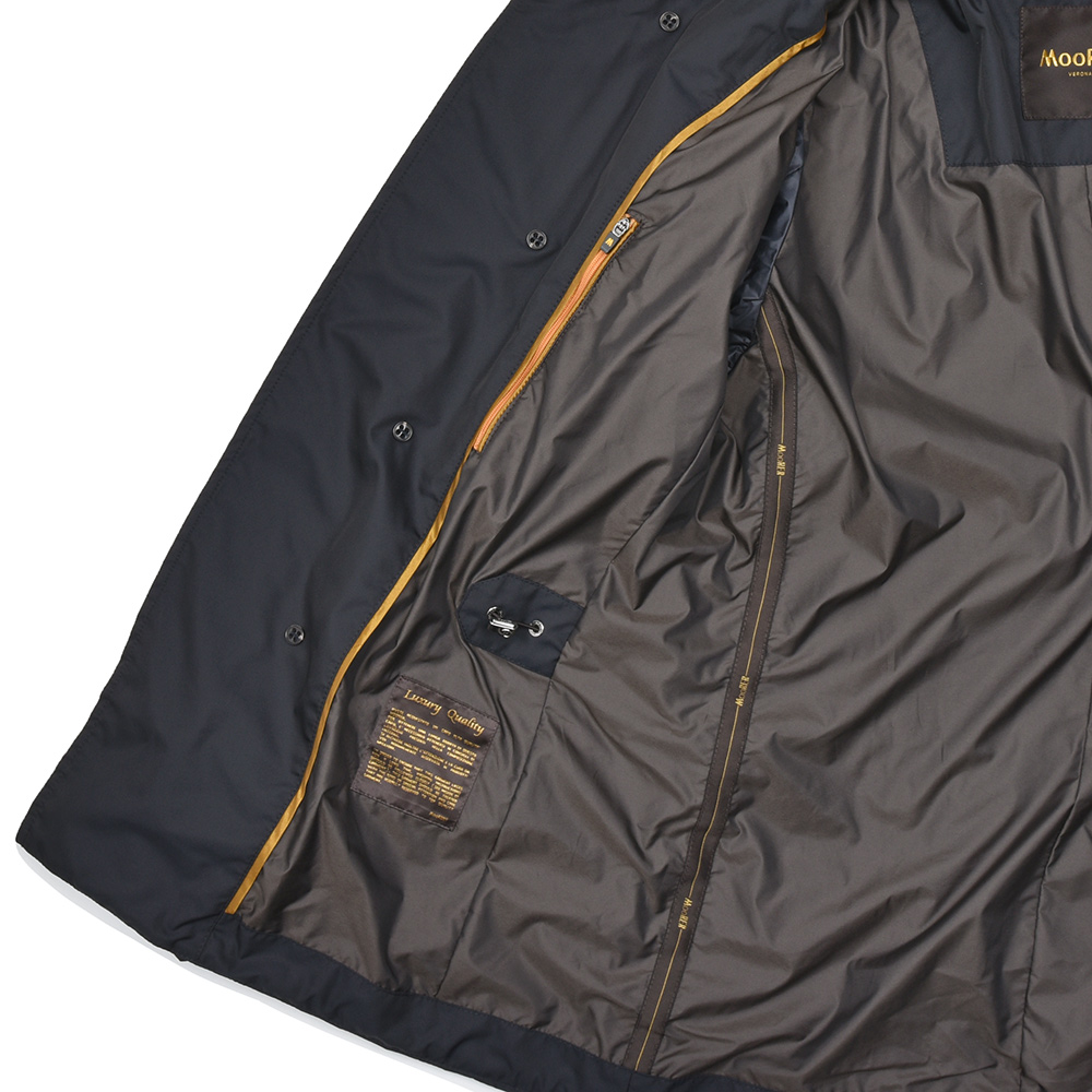 特注のスナップボタン、ファスナーやホーン釦などの拘りに、裏地のナイロン素材の美しさ加えてパイピング処理を施した丁寧な仕上げ。MooRERのアウターに死角はありません。