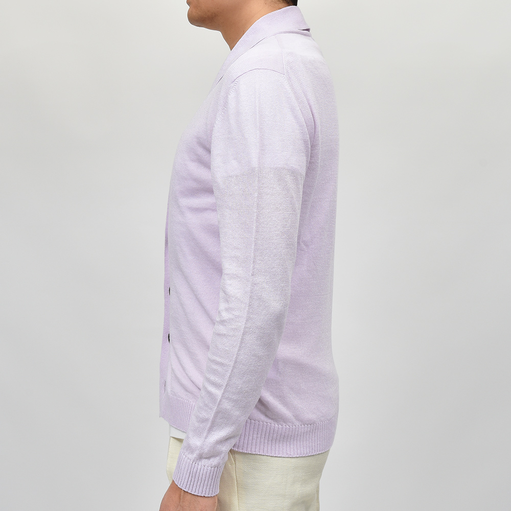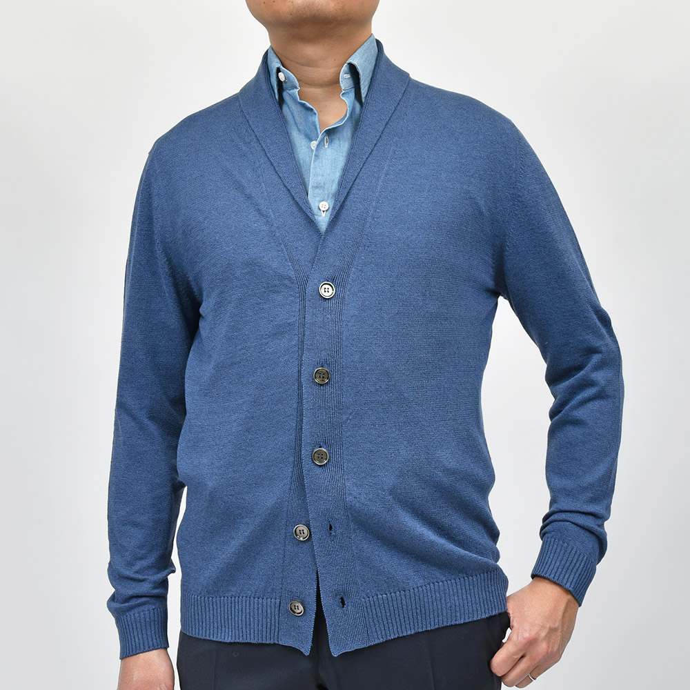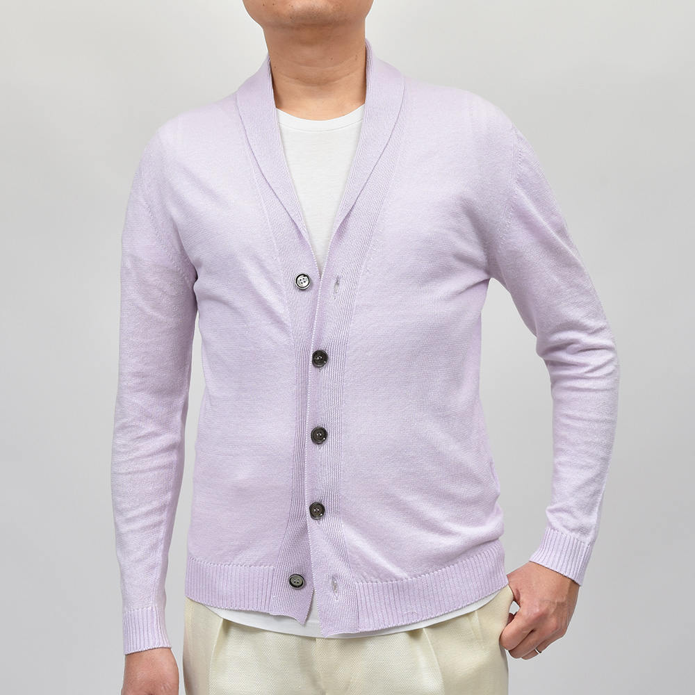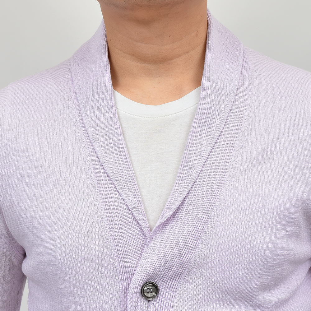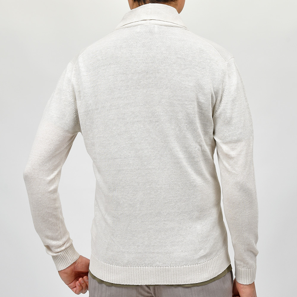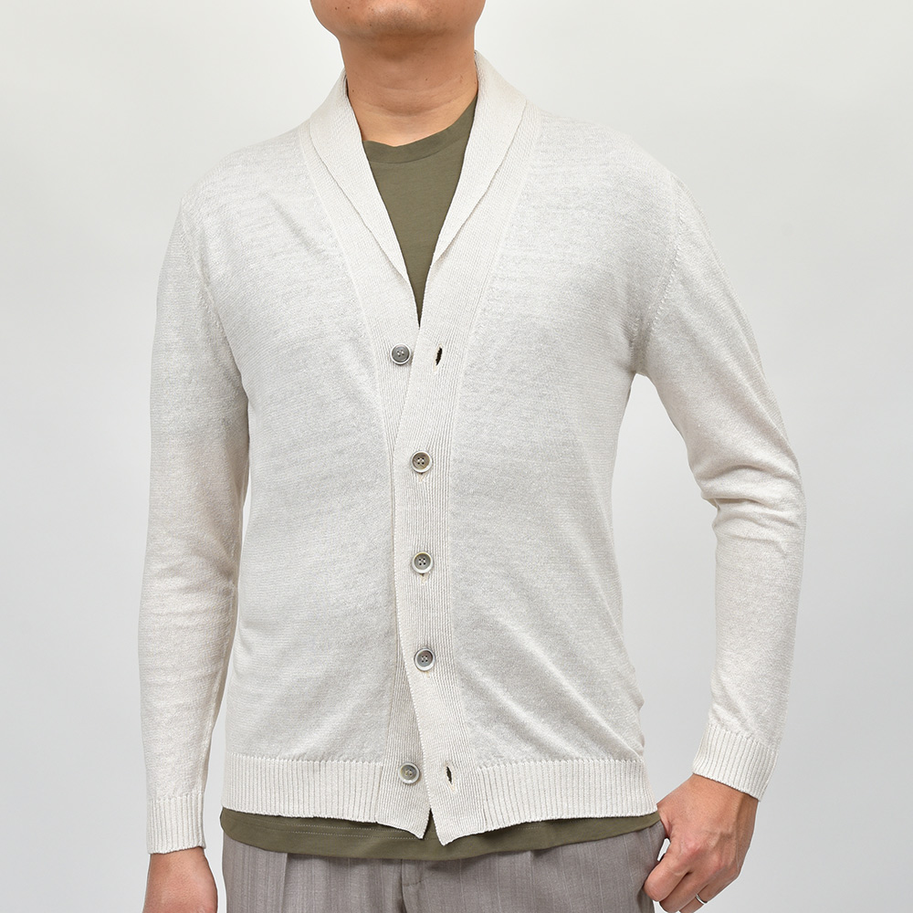リネン コットン ショールカラー ハイゲージ ニットカーディガン