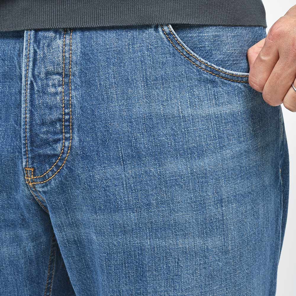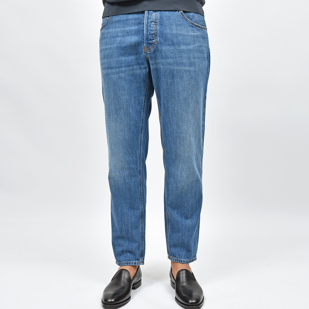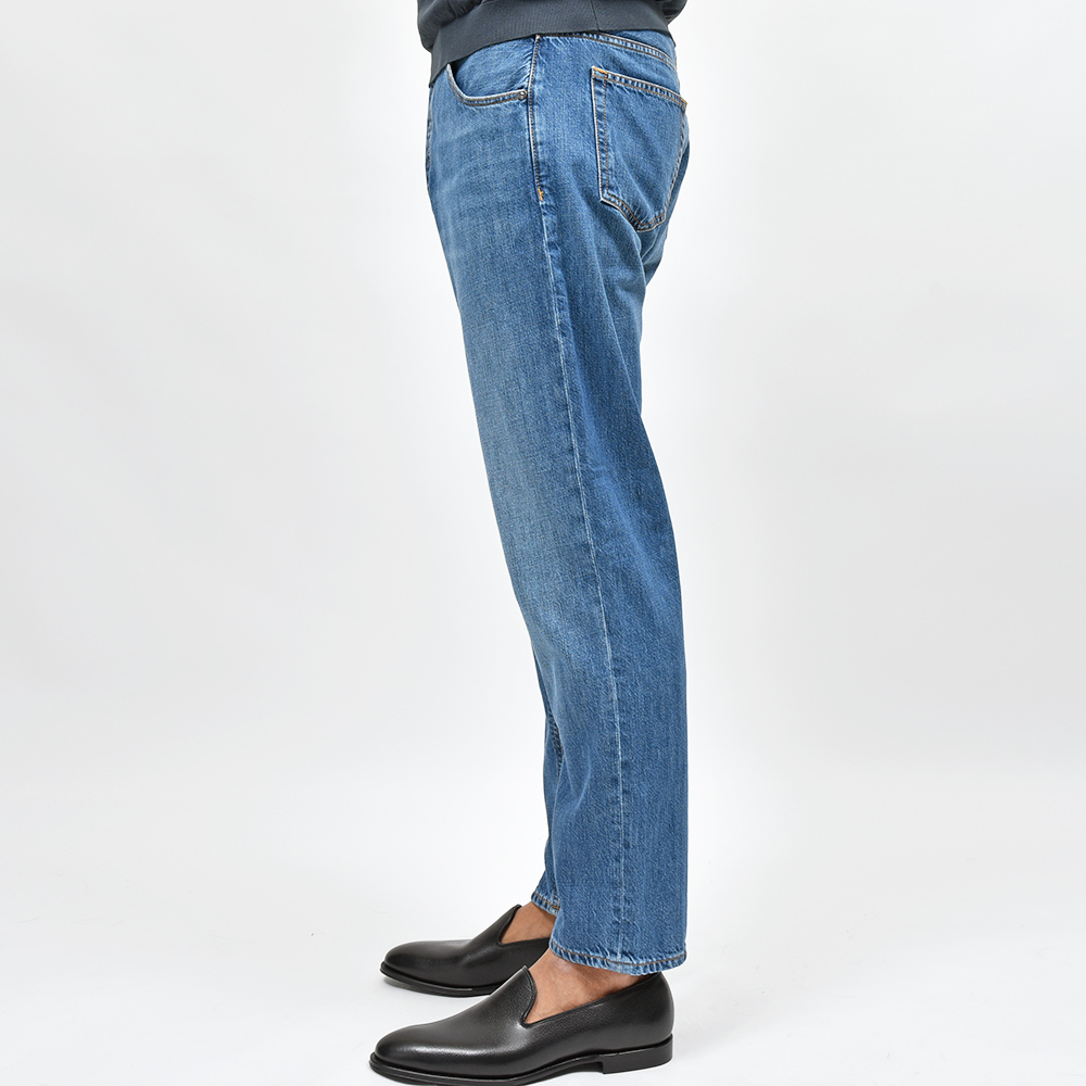 PT TORINO DENIMでは非常に稀なストレッチなしのコットン100%ファブリックを使用したこちらは、PT TORINO DENIMにおいて緩めのシルエット枠を担う定番モデル“REBEL”。やや強めに施されたウォッシュド加工ですがアタリ感を抑えることで、程よいカジュアルさをスタイリングにもたらせてくれます。シルバーのボタン&リベットに、ブラウンのステッチ使いは上品な佇まい。さらに高級感のあるスエードの革パッチが大人の色気を演出してくれます。