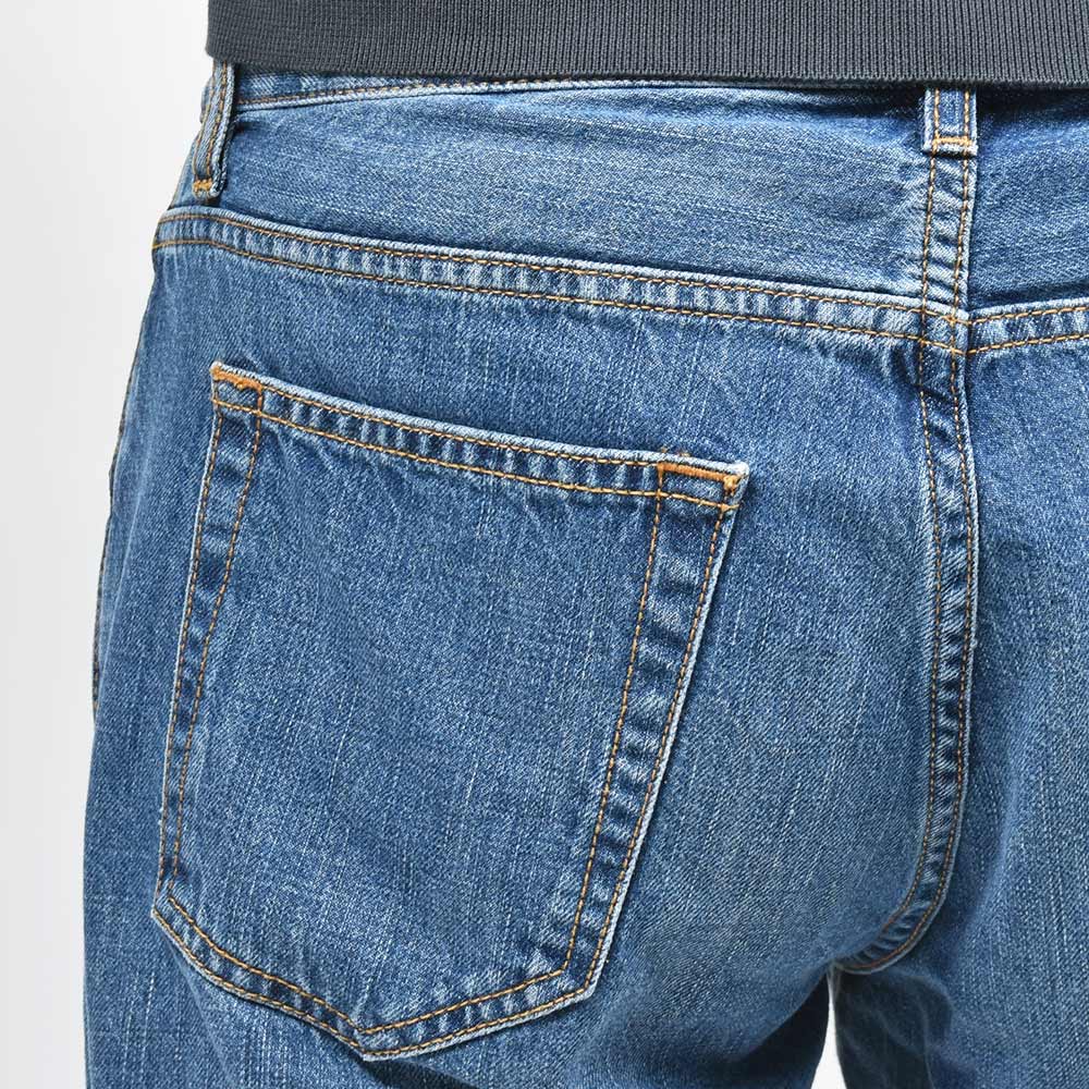 サイズ32がジャストサイズです。”SWING”・”REGGAE”よりも股上が深く、腰からヒップ上にかけてはスッキリと、ヒップ下からワタリ・裾にかけてはゆとりのあるシルエットとなります。ミディアムなインディゴブルーが使い勝手のいい一本です!