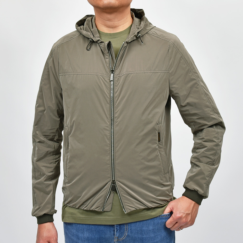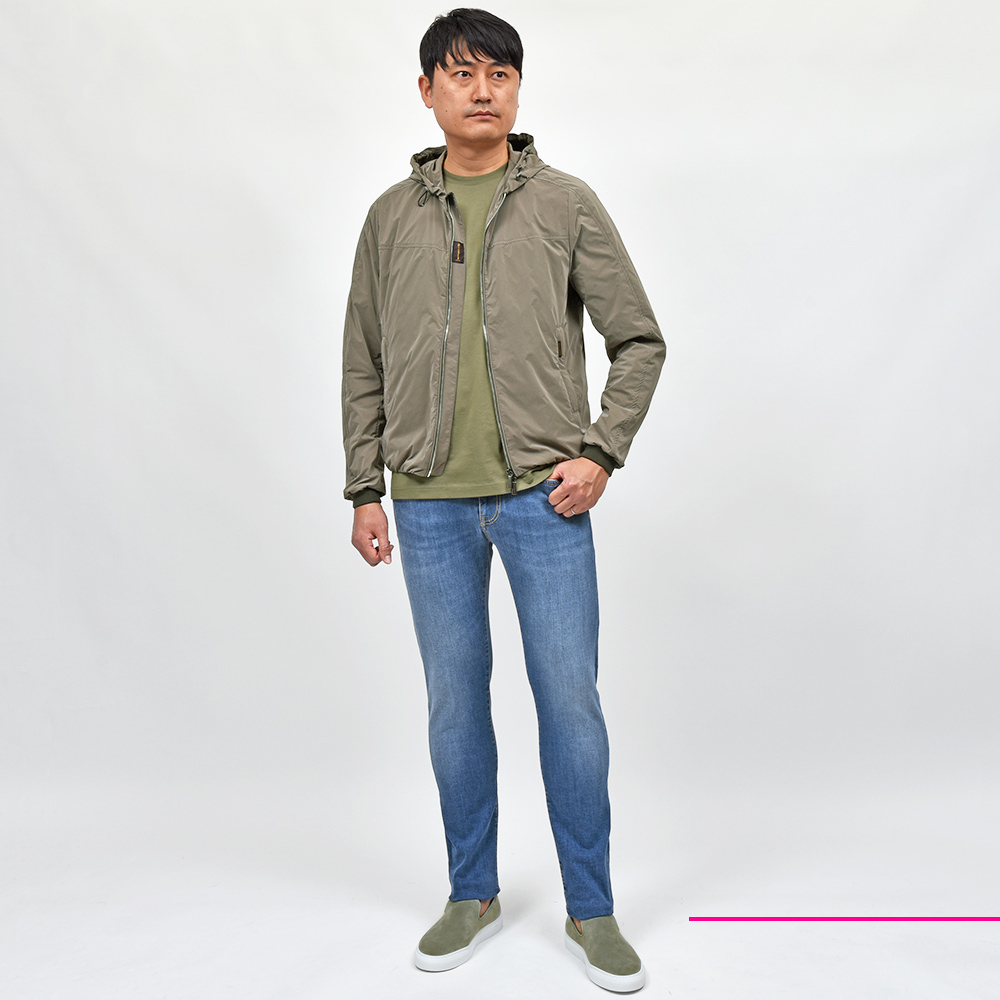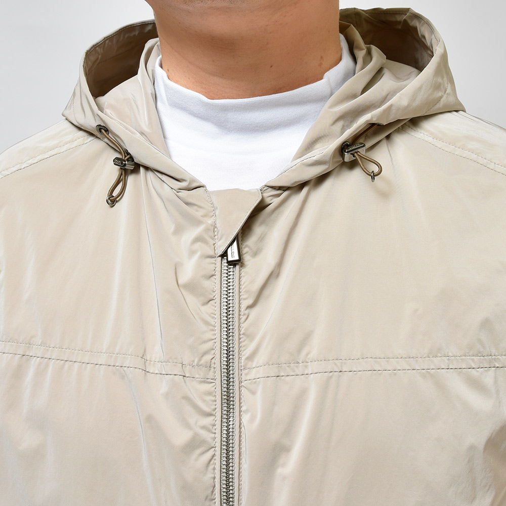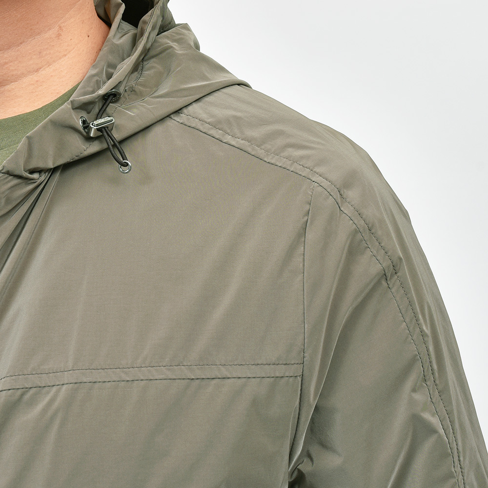 ナイロン×ポリエステルの軽量でマットな光沢感が特徴的な“OS”ファブリックを使用したこちらは、フーデット仕様のショートブルゾンモデル“ALBORI”。デニムやチノパンなどに合わせたカジュアルスタイルはもちろん、ウールパンツでキレイ目な合わせや、スウェット素材と合わせてスポーティーにもこなせる汎用性が魅力です。ライトアウターは春のみならず、秋にも着れる実はロングシーズン活躍してくれるアイテムです。