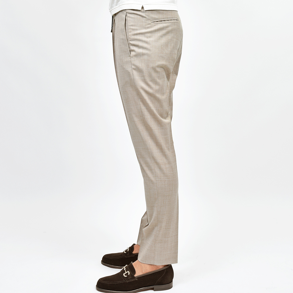 安心感と安定感のあるフィッティングとシルエットに、様々なシーンでの着用が容易に想像できる万能なファブリックを搭載した一本です。