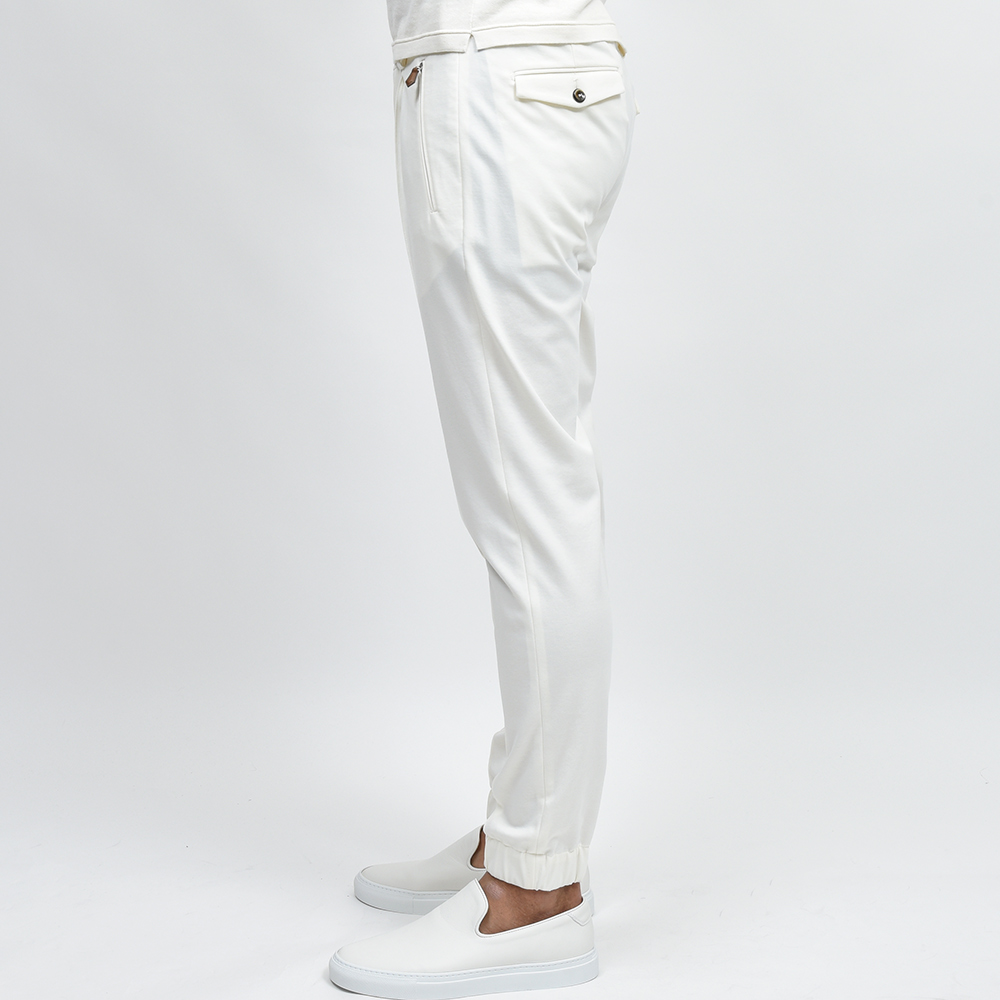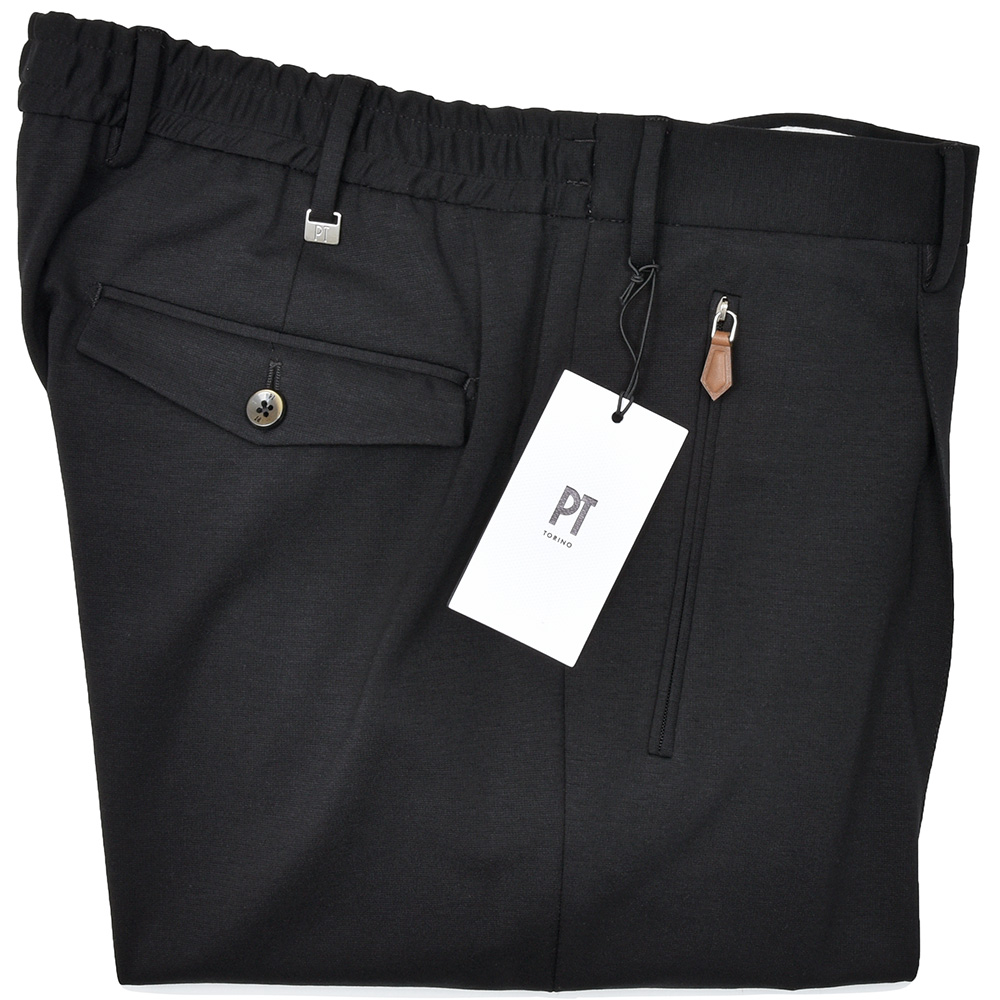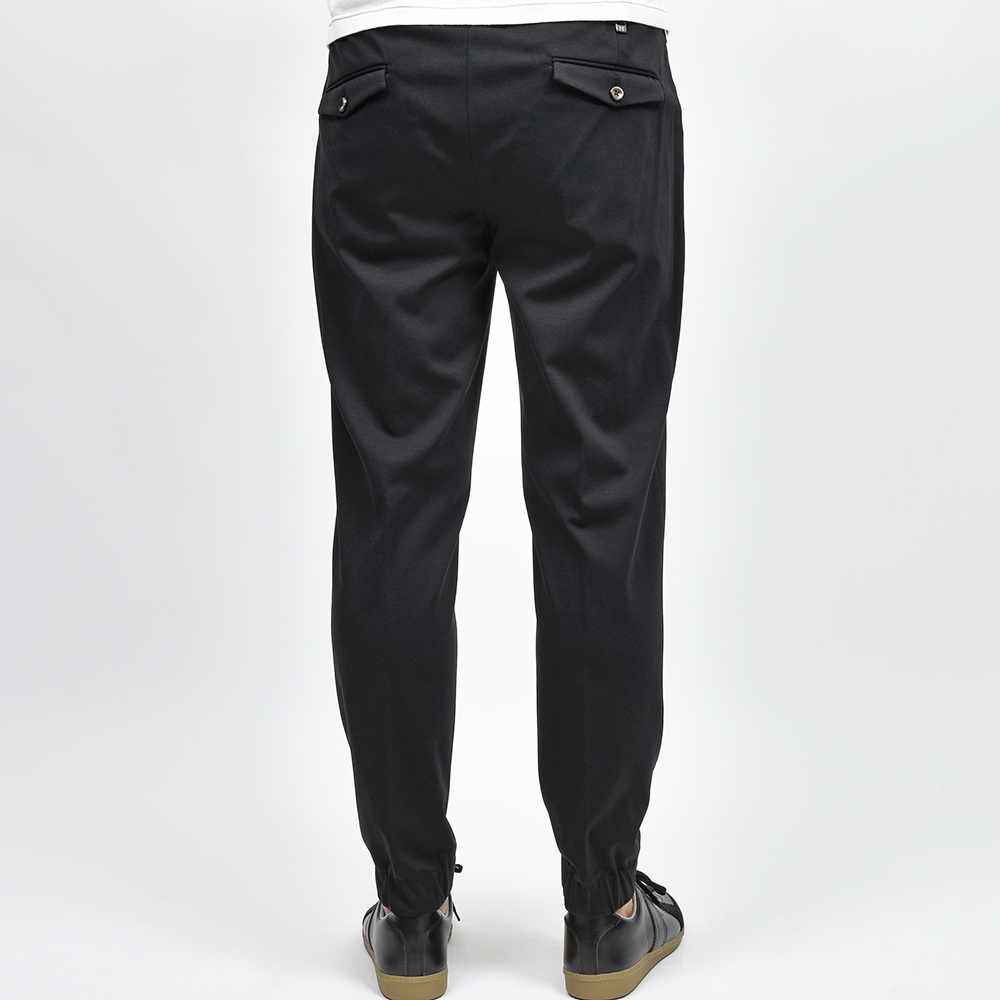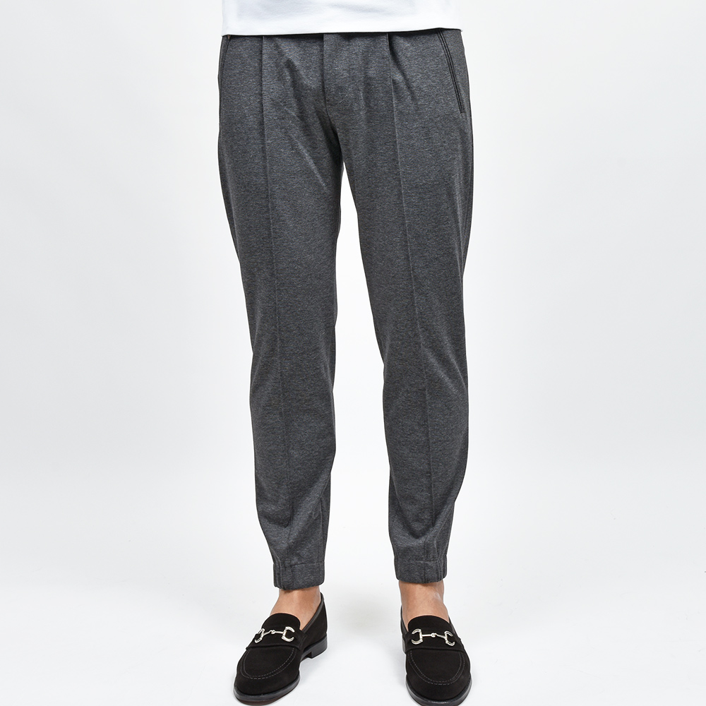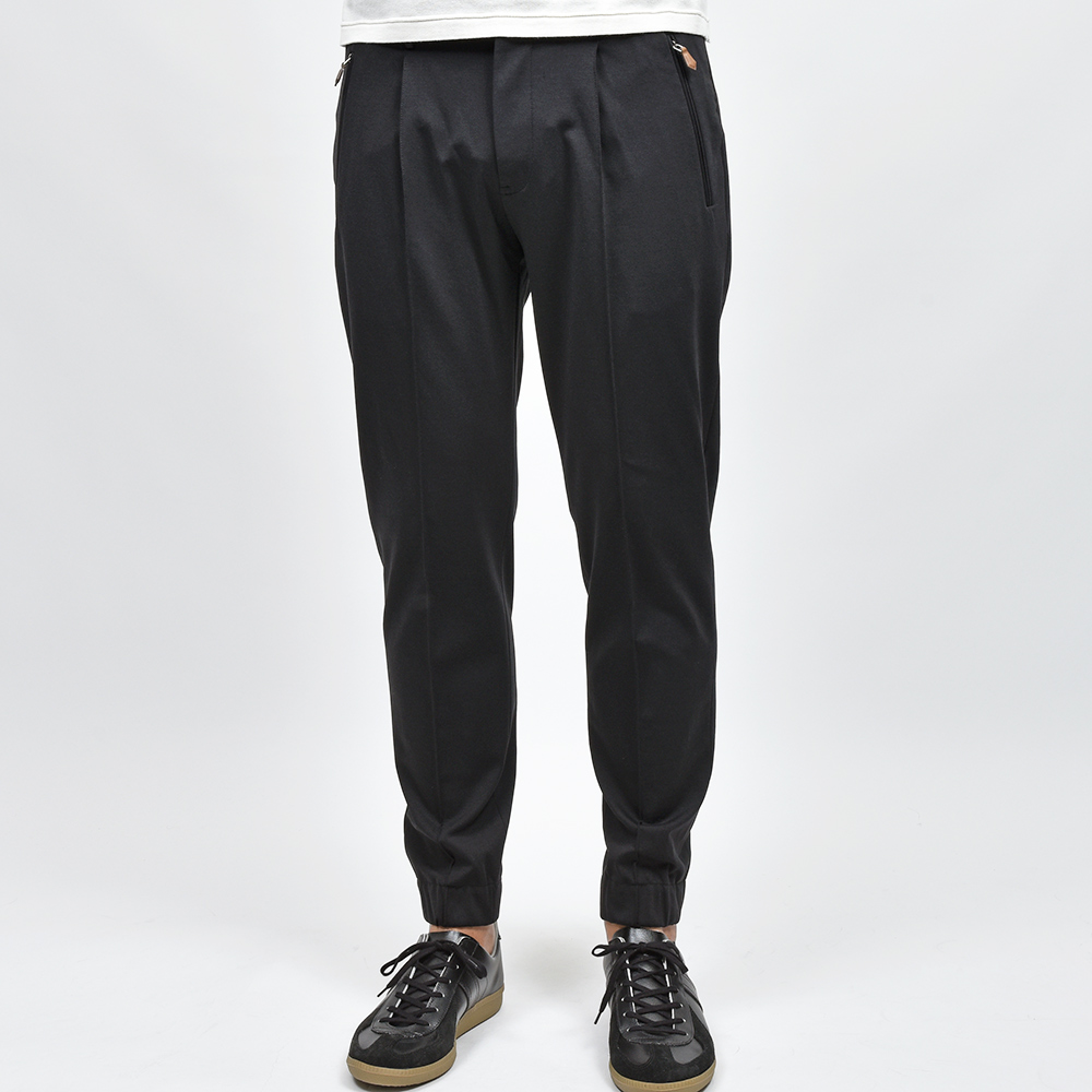 センタークリースにステッチを入れることで長時間穿いていてもクリースが取れることのない“永久クリース”を取り入れたモデル“BERLIN”。こちらは長らくPT TORINOの定番として存在している隠れて人気モデルを、裾を共地のリブ仕様にしてドレスポな雰囲気を高めた“NEW BERLIN”となっています。
