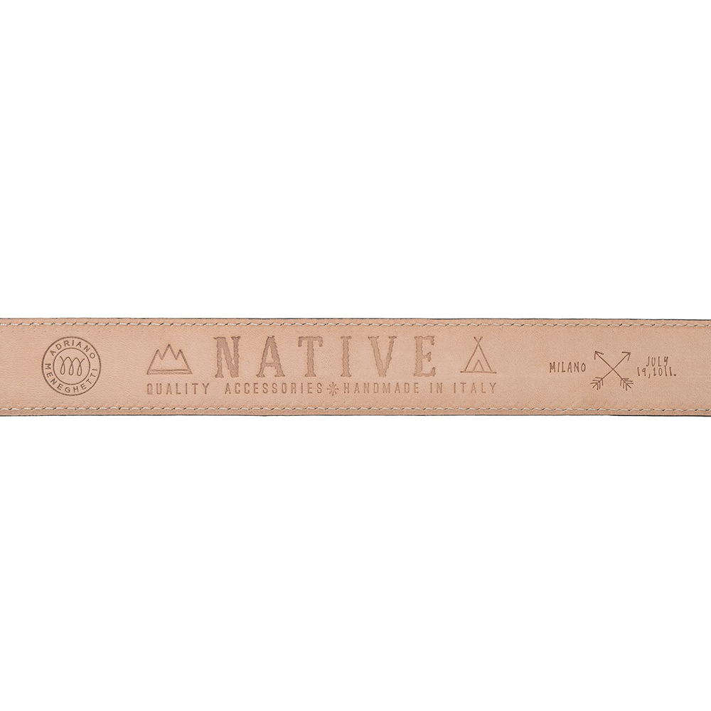 ハンドメイドならではのクラフト感を程よく香らせながらも、どこかモダンで洗練されたオーラが漂う“ADRIANO MENEGHETTI”。ネイティブなデザインが施されたバックルとチップが、カジュアルはもちろん、ドレススタイルのハズしには持ってこいのこなれた一本です。