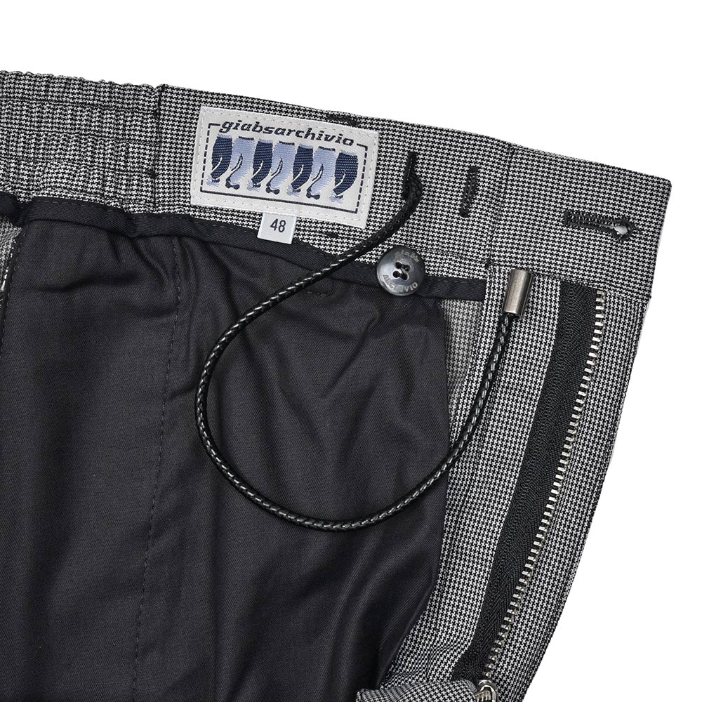 爆発的ヒットを記録したring初となるgiab's ARCHIVIO×ringの別注品、その名も“ring”。モデル名を決めかねていたバイヤー陣に対して、デザイナーの中新井氏の鶴の一声により決定した感慨深い一品です。そして、2020SSシーズンから“ring”をさらにアップデートした“ring2”が登場。1プリーツ入り“MASACCIO”のベースはそのままに、ドローコードをラグジュアリーな雰囲気が漂うイントレチャートに変更。さらに、マーベルトを-0.5cm幅を狭め、股上は+0.5cm深くすることでリラックス感が増しています。膝幅+0.5cmとそれぞれハーフサイズアップし、ふくらはぎの突っ張りを軽減しました。