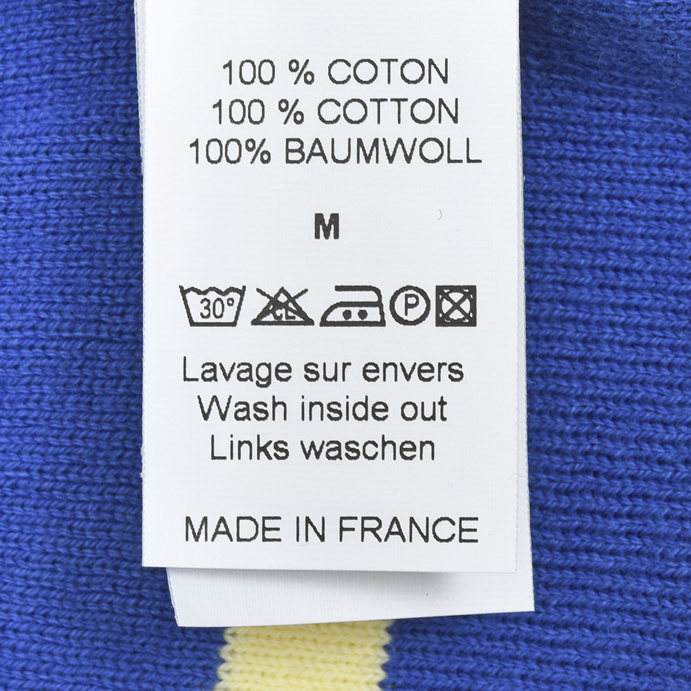 Lサイズでジャストサイズです。身頃がゆったりしていて安心感があります。見た目のシルエットもゆったりとしています。フレンチな配色が洒落ています!