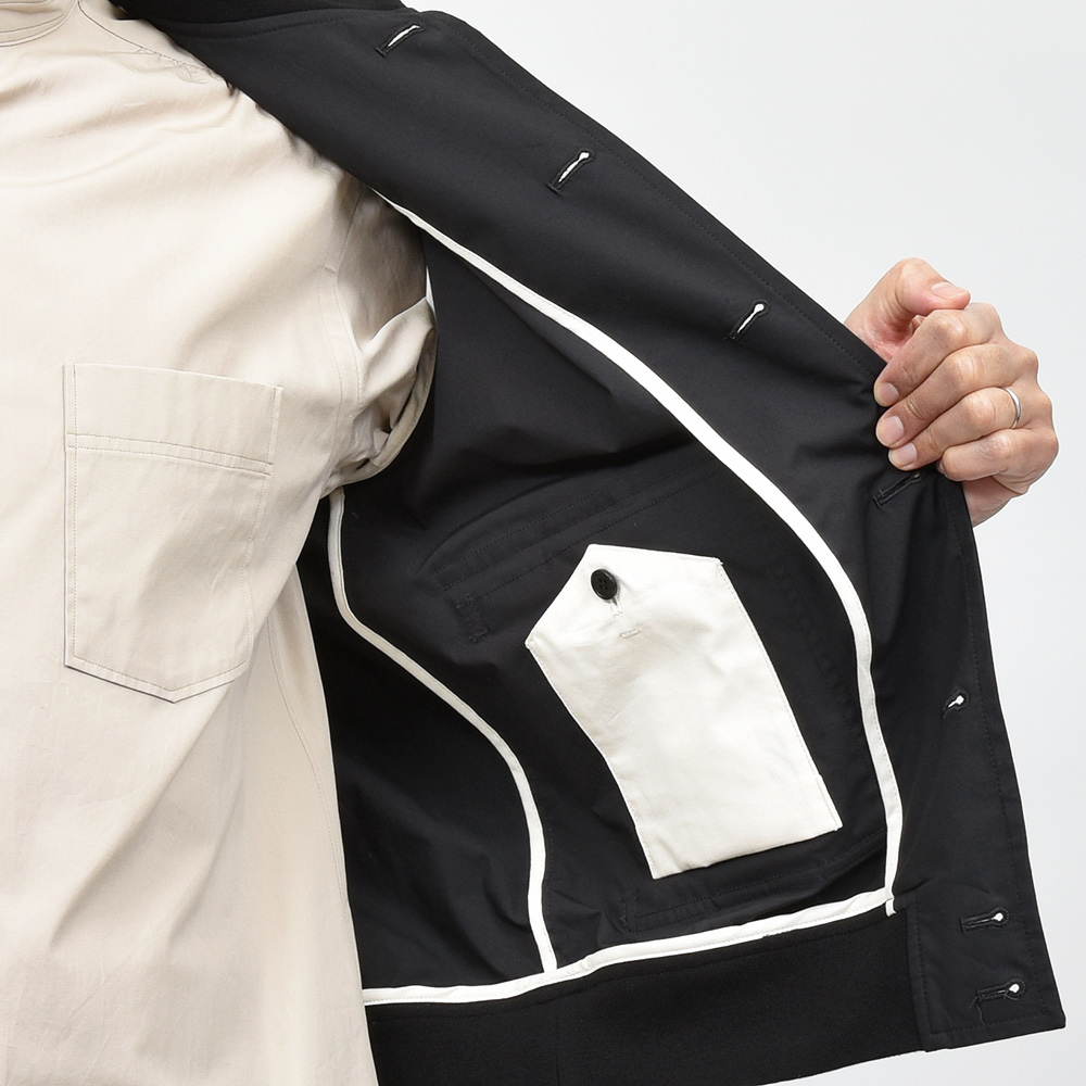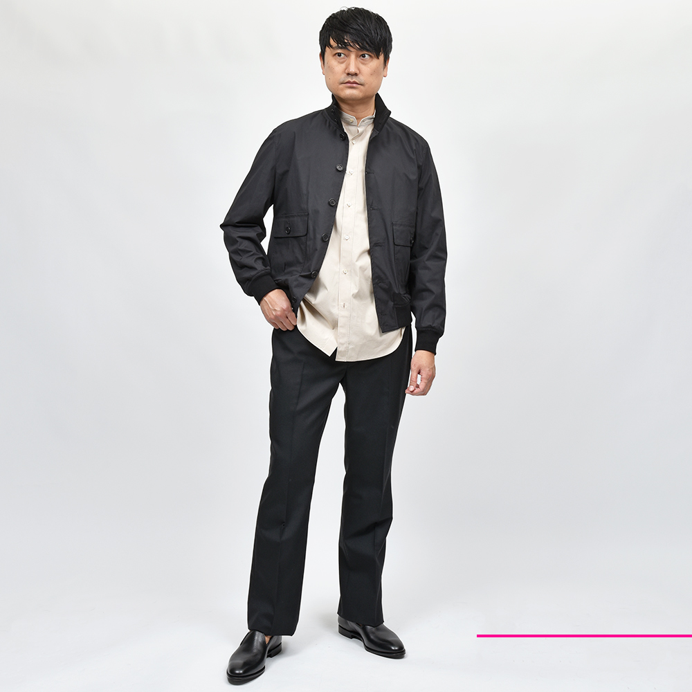 こちらは、ハリのある質感が清涼感をもたらせてくれる薄手なコットンポプリンを使用。ストレッチ性を持たせた生地は、裏地を省いた軽量な仕立てなので非常に快適な着用感をもたらせてくれます。オーセンティックなデザインでありながらも、使い勝手の良い素材を使用することで時代にあった進化を見せてくれる一品です。