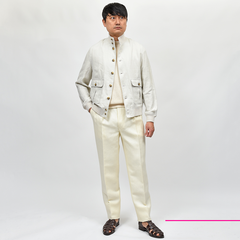 夏のファッションを楽しむ上で欠かせないリネン素材ですので、仕立て映えする上質なリネン素材はファッションアイテムとしては勿論、室内外での体温調節にもあると便利な一着です。