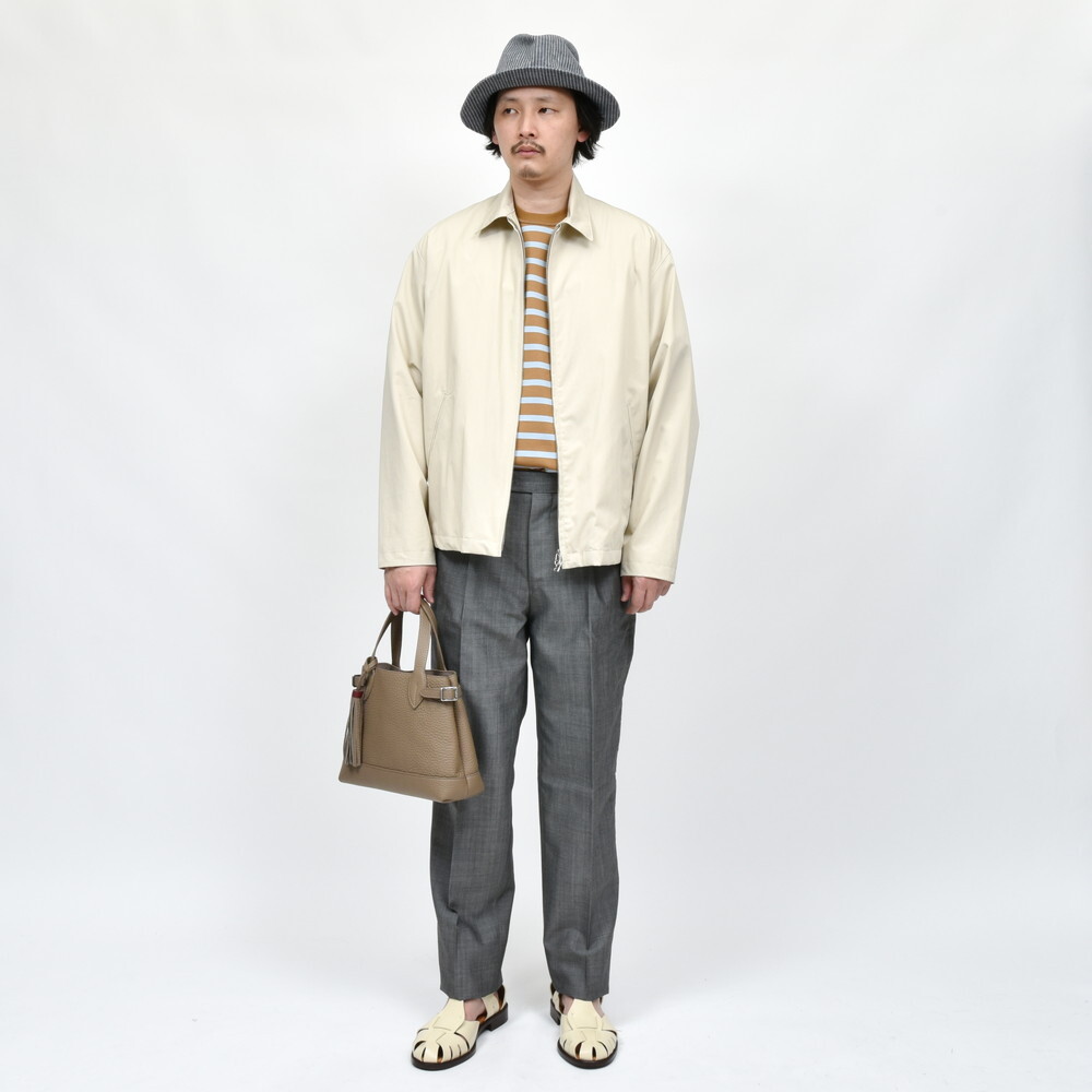 サイズLがジャストサイズです。Mサイズでも着用できますがゆったり着たいのでLサイズをチョイスします。身頃にゆとりがあってリラックス感のあるフィッティングです。どこか抜け感がありつつも上品さをキープしたブルゾンです!