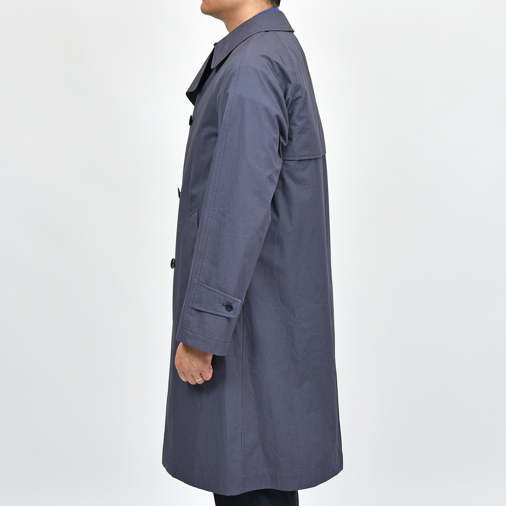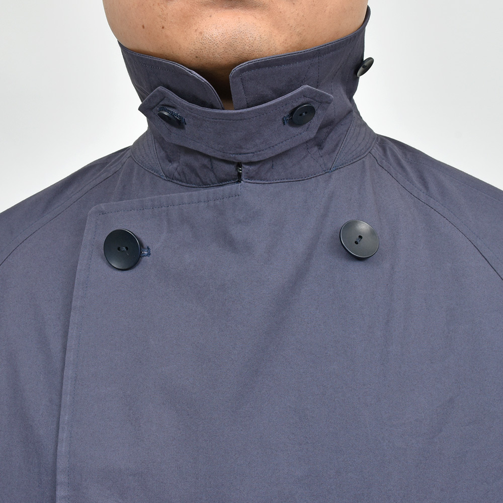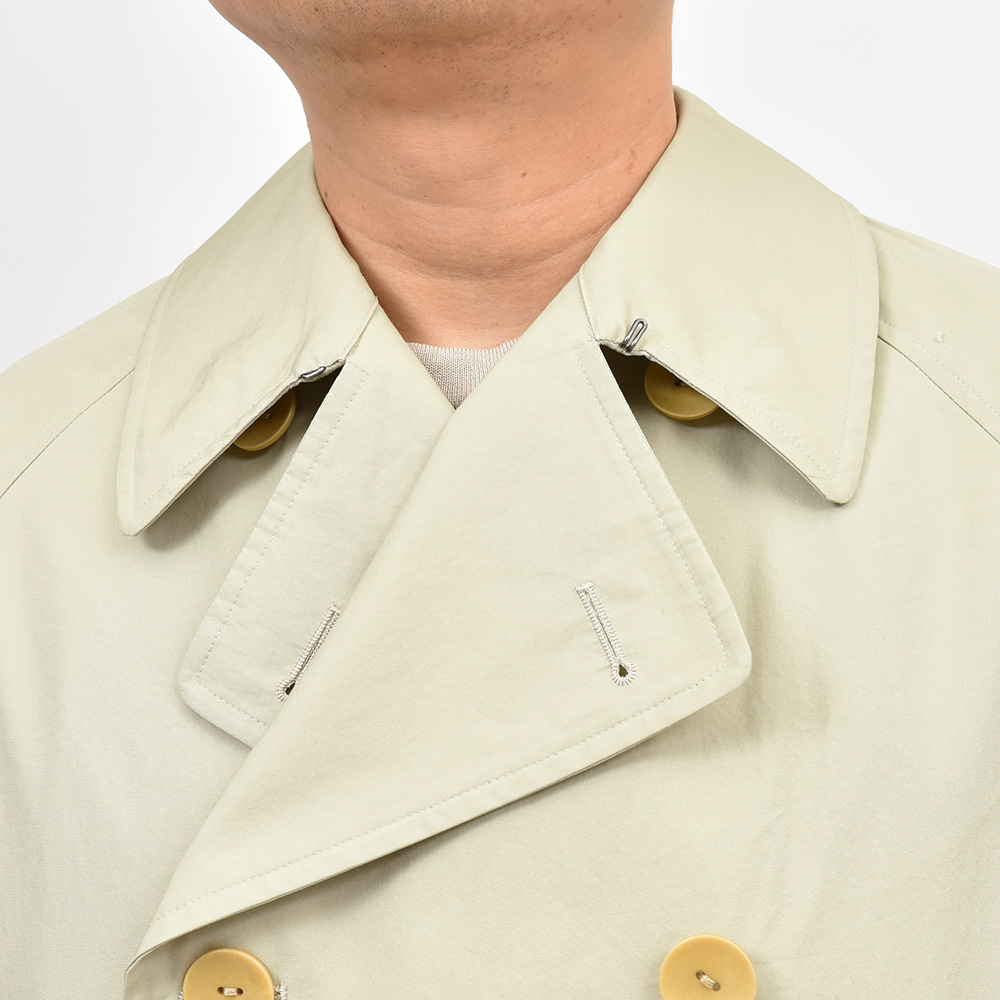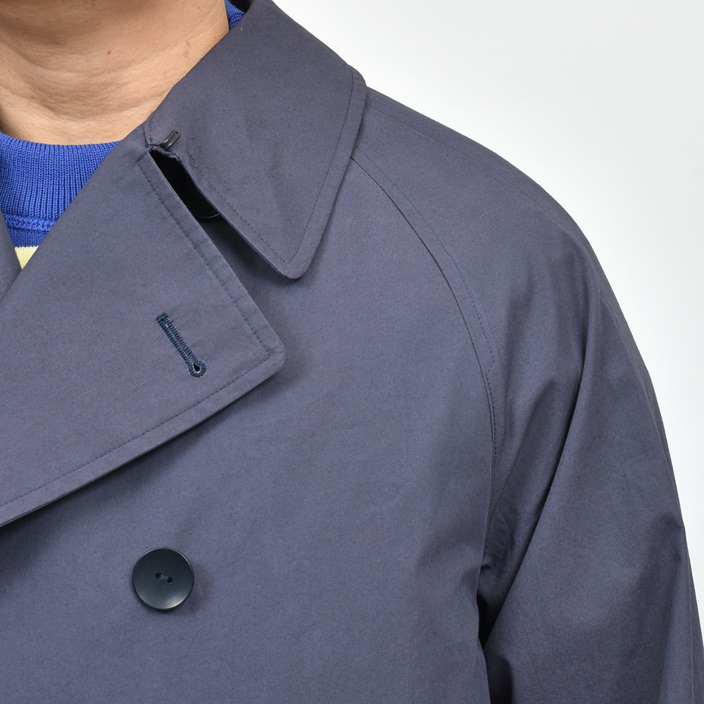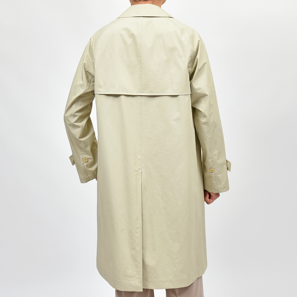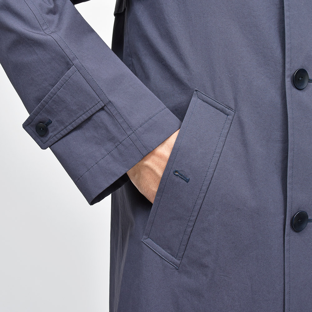 デザイナーである中込憲太郎氏自ら開発に携わる、オリジナルファブリックを使用するCOHERENCE。“COHERENCE Weather Resistant Cotton Light”と名付けられたこちらは、細番手の糸を使用し超高密度に織り上げることで、撥水性能を持つ軽量のコットン素材となっています。また、表面の凹凸感がドライな風合いをもたらしています。