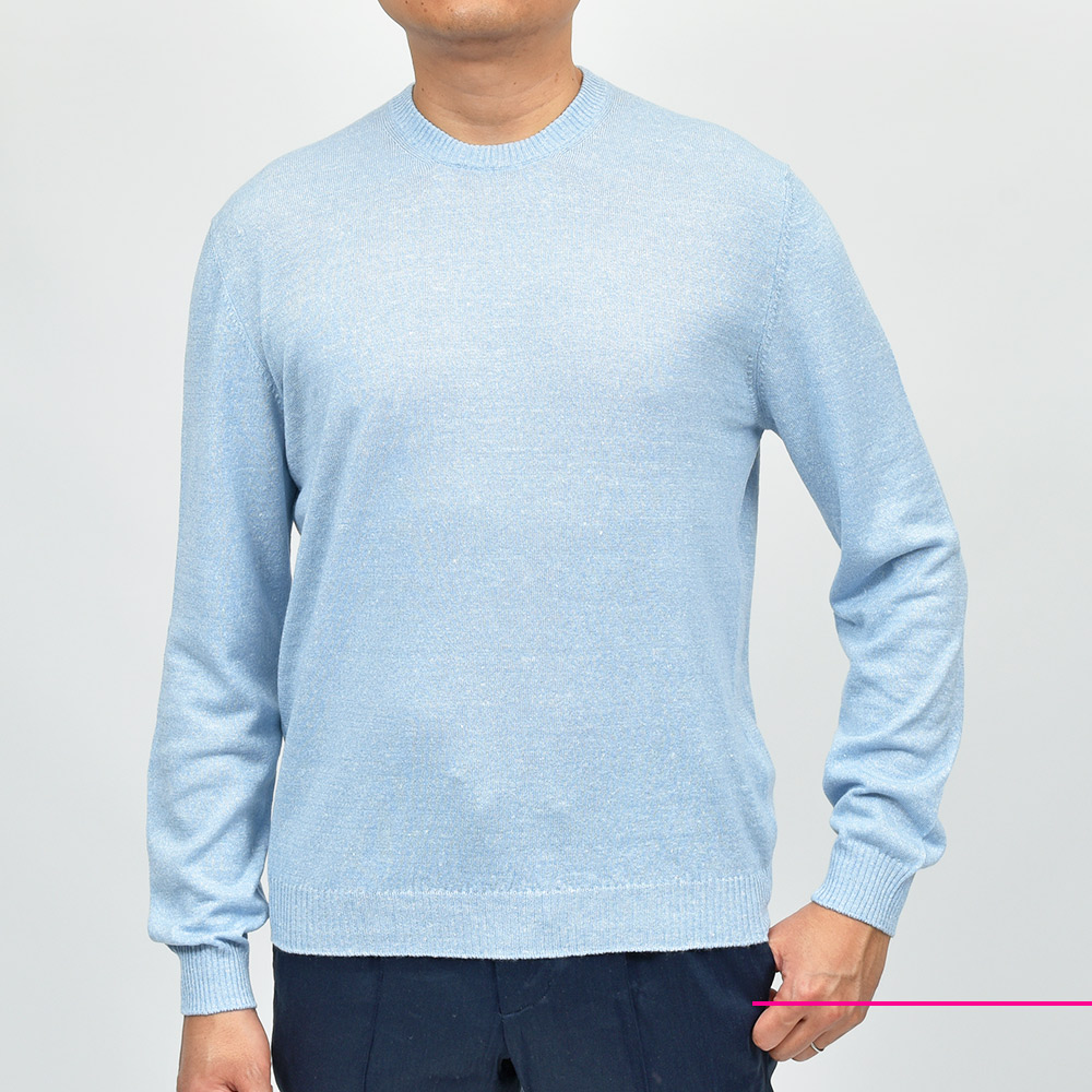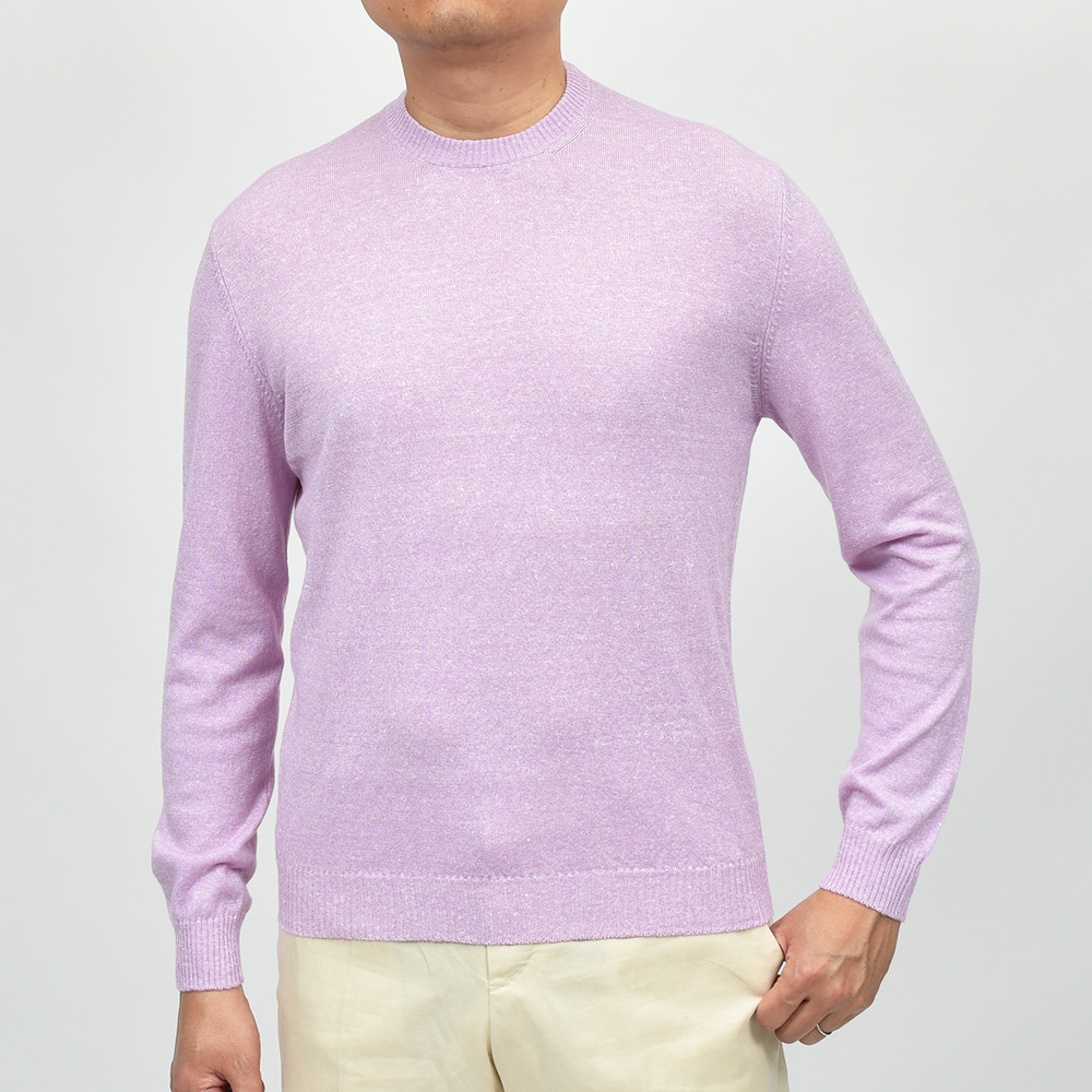 カシミヤ×リネンの程よくメランジを効かせたコチラのニットは、カシミヤらしいふんわりとしたエアリーな柔らかさに、リネンらしいドライなタッチが合わさった、不思議な気持ち良さを持ちます。春夏ものであってもココンチらしいカシミヤの風合いに、十八番とも言える美しく品のあるメランジの色合いが楽しめます。春先から秋口までの長い期間での着用が期待できる一品です。