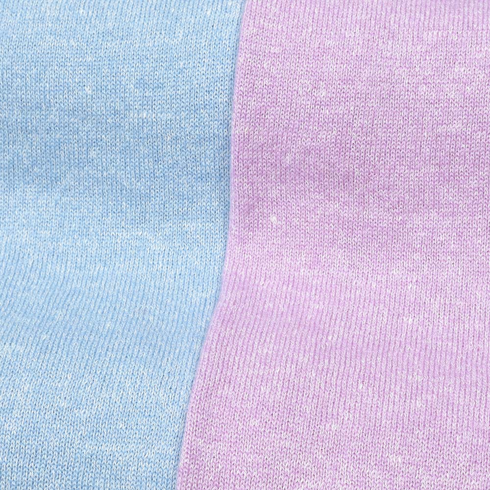 (画像のスタッフは182cm、76kgでサックスブルーはサイズ50を、ラベンダーはサイズ48を着用しています。)