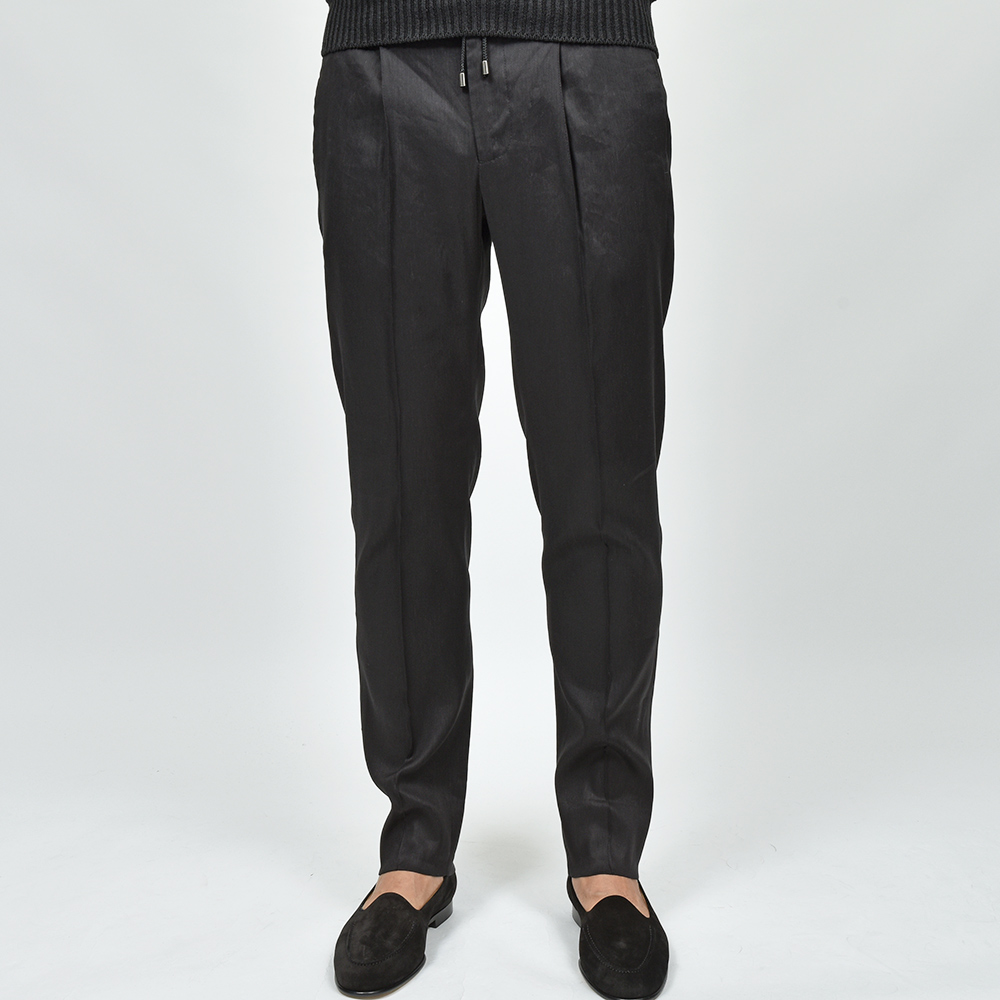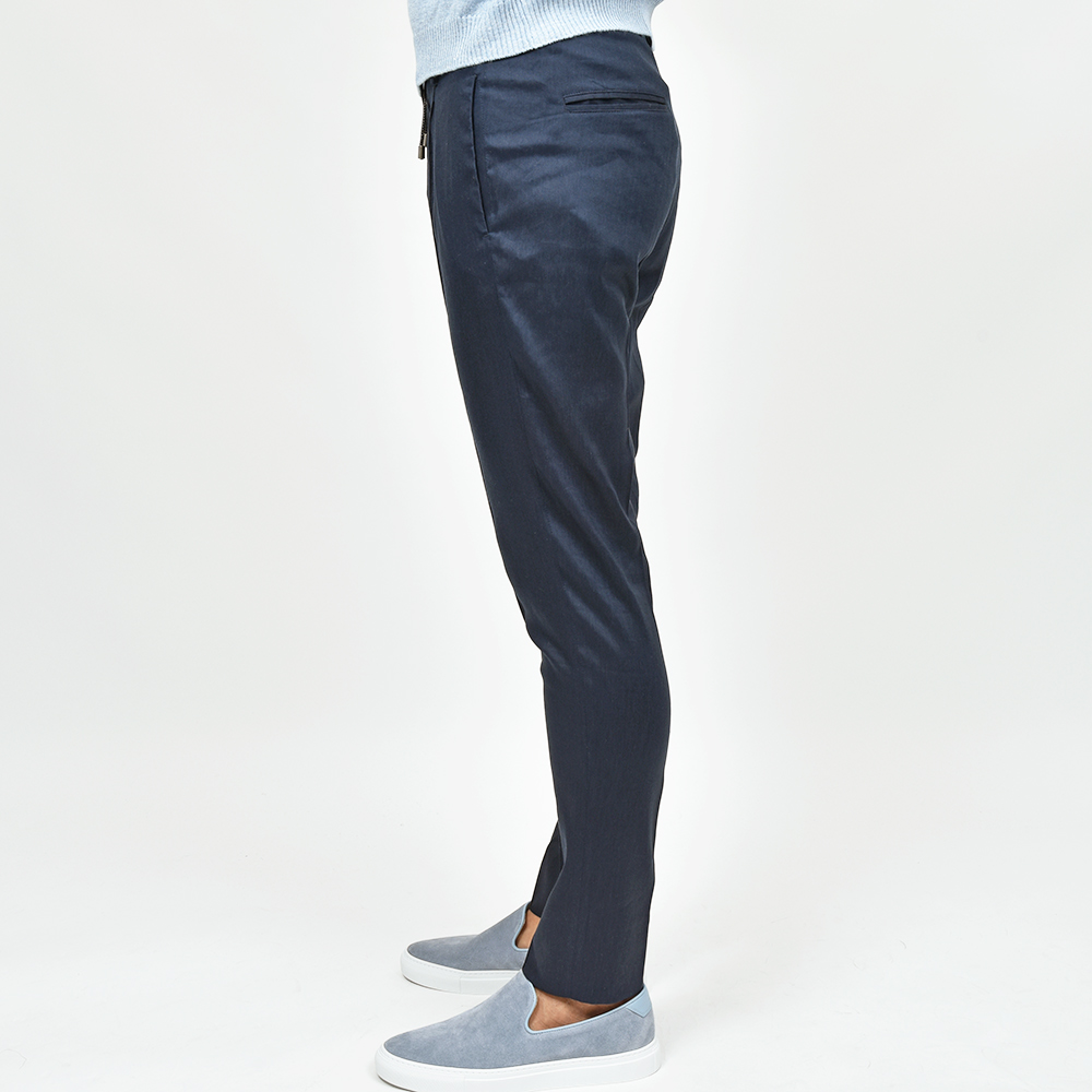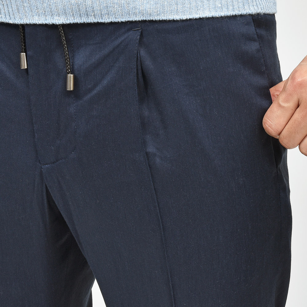 giab's ARCHIVIOを語る上で外せないアイコンモデルの“MASACCIO(マサッチョ)”。フロントクリースをステッチで抑えることで、美しいラインがいつまでも続く永遠を約束された特別な一本です。ウエストのサイドにはゴムが入っており、ウエストは4cmほど伸縮してくれるリラックスした穿き心地。ドローコードは内側に隠すことができるため、ベルトを巻くとビジネスにも対応する、リラック顔にもドレス顔にも変化の効く万能なアイテムです。
