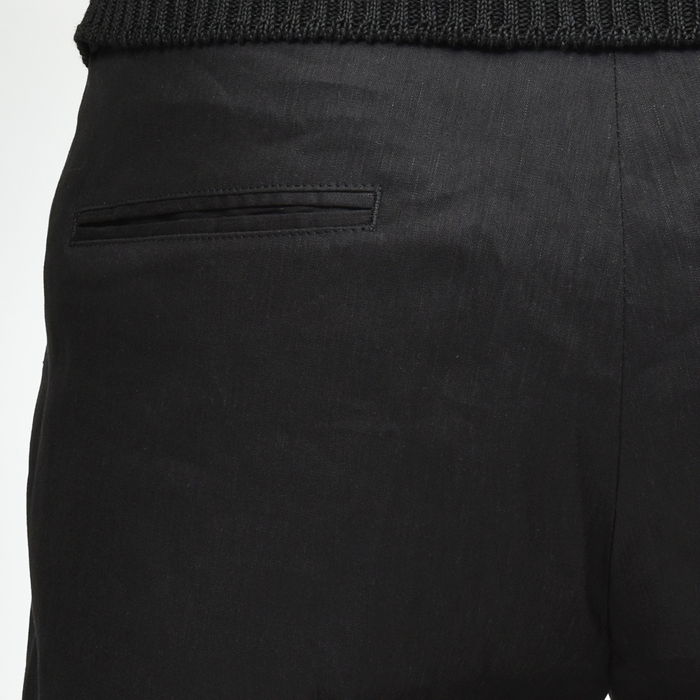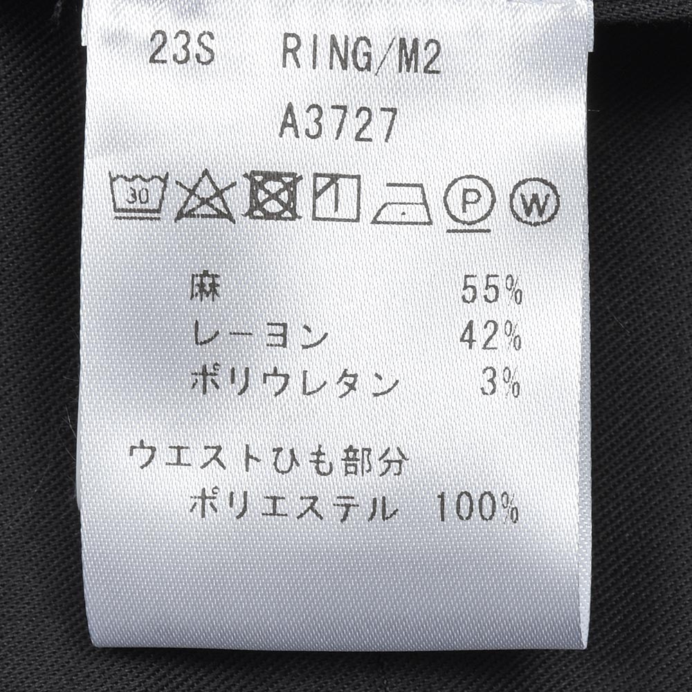 サイズ50がジャストサイズです。ヒップ・ワタリから裾にかけてタイトすぎず気持ちゆとりがあります。見た目はスッキリとしていてリブがスポーティさを演出しています。程よい光沢が高級感漂うリネンパンツです!
