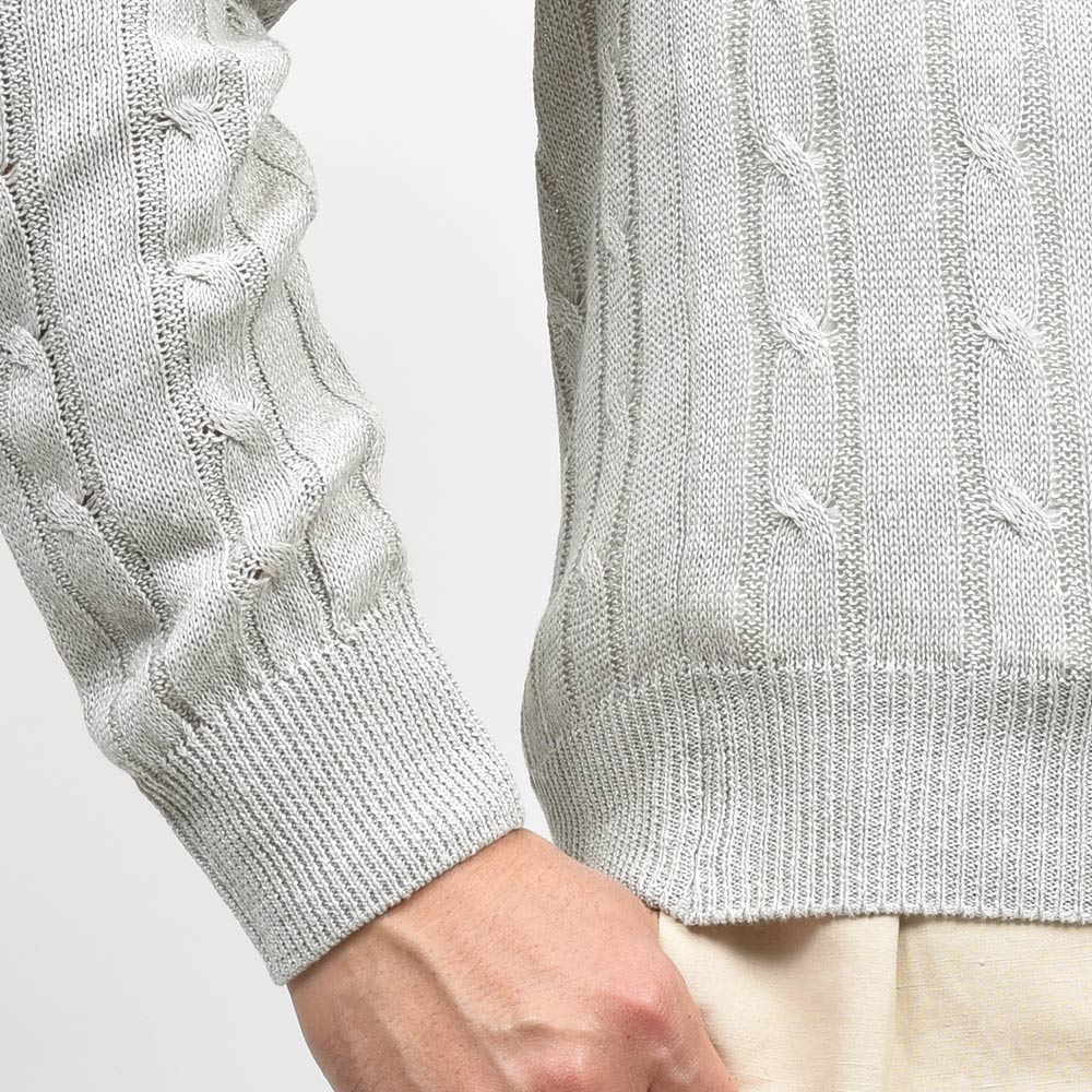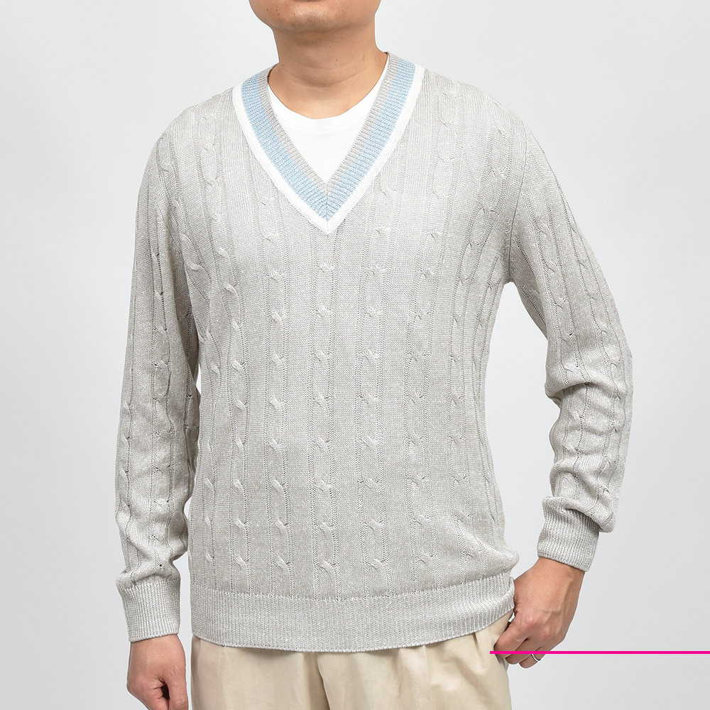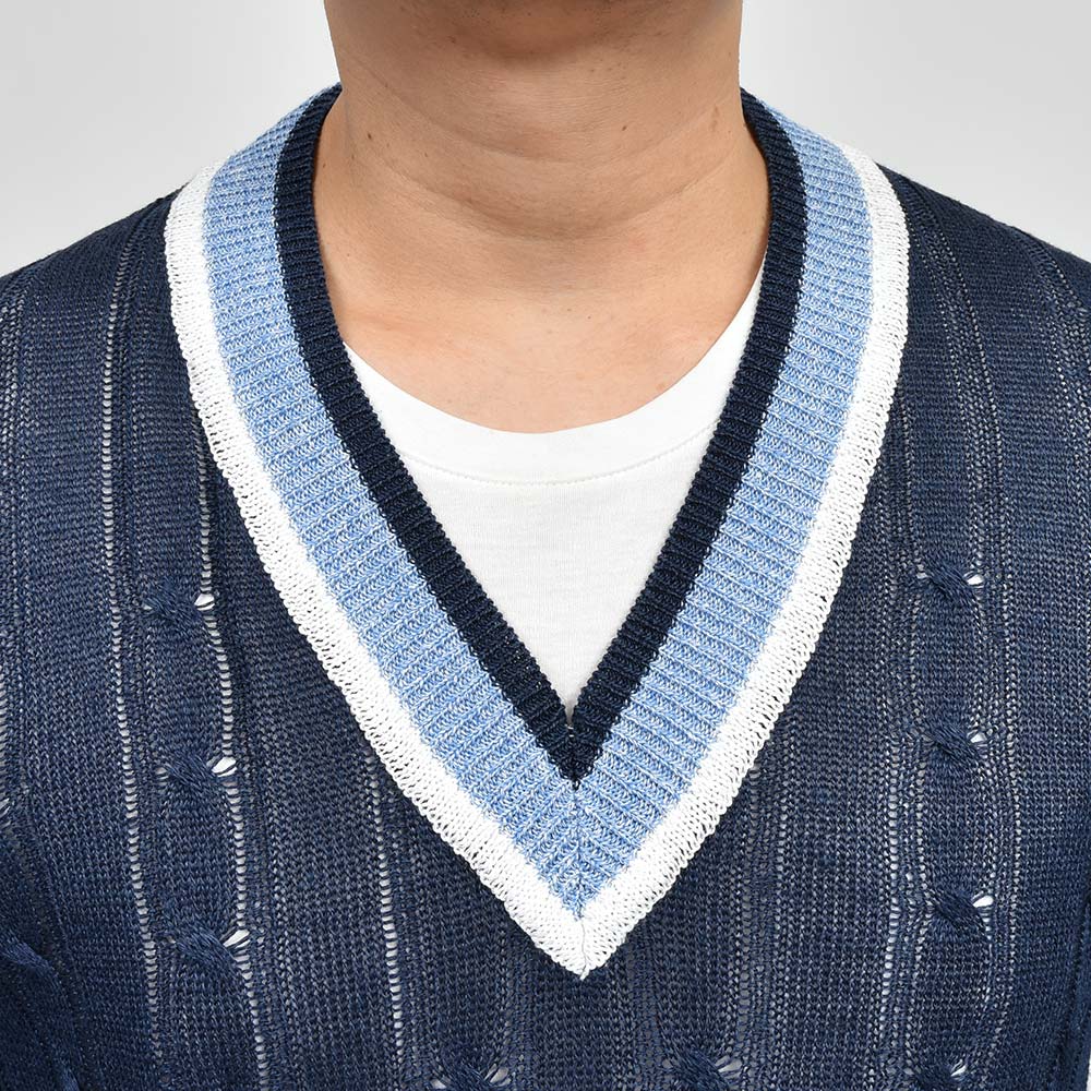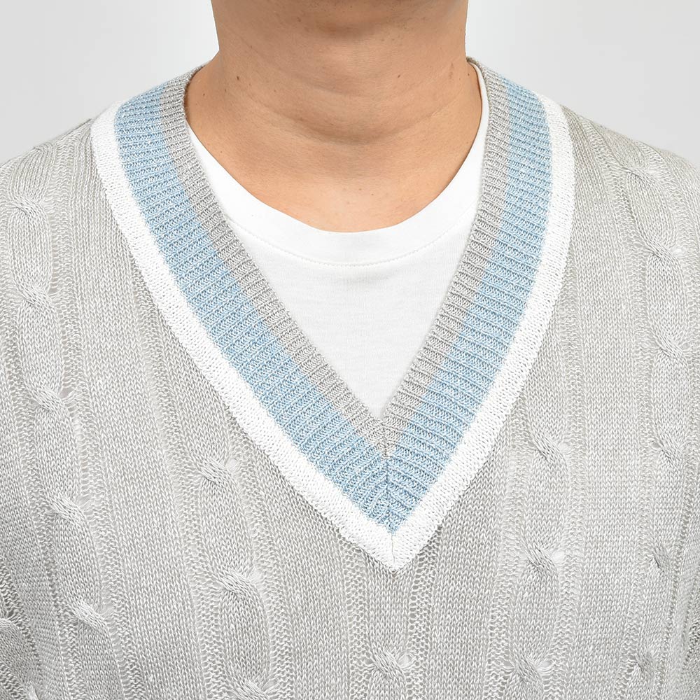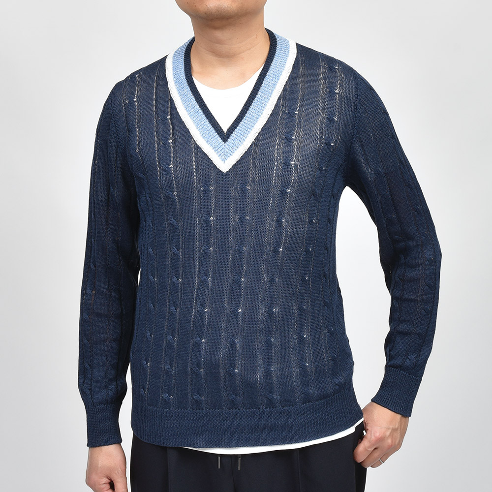 リネン コットン 7ゲージ ケーブル Vネック チルデンニット