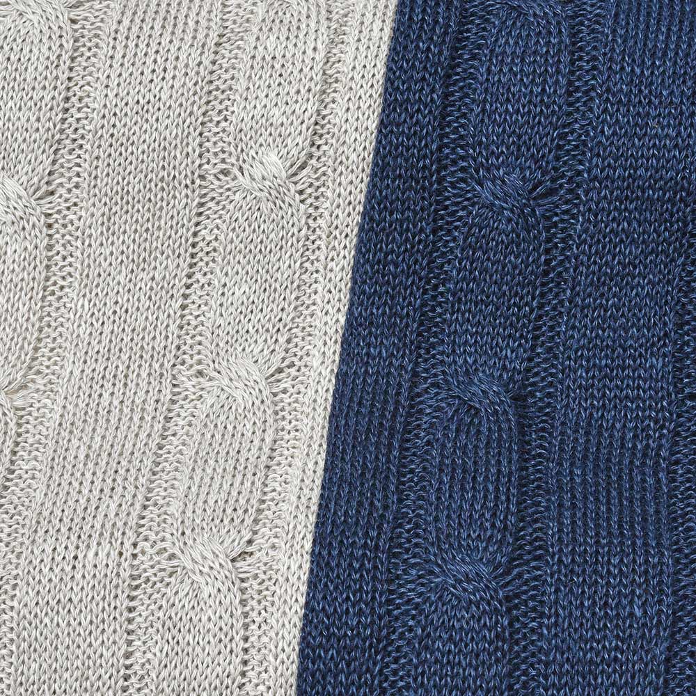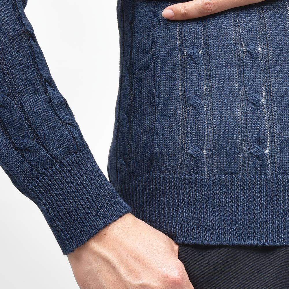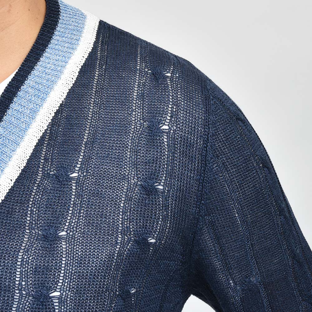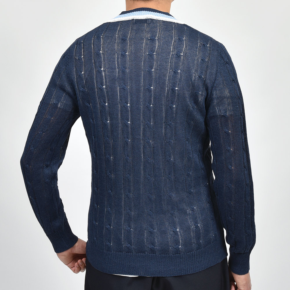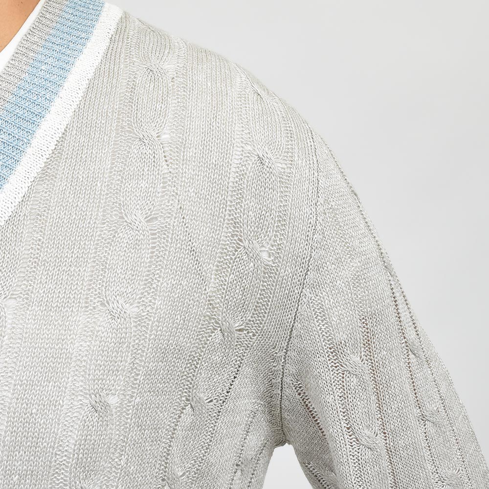 リネン コットン 7ゲージ ケーブル Vネック チルデンニット