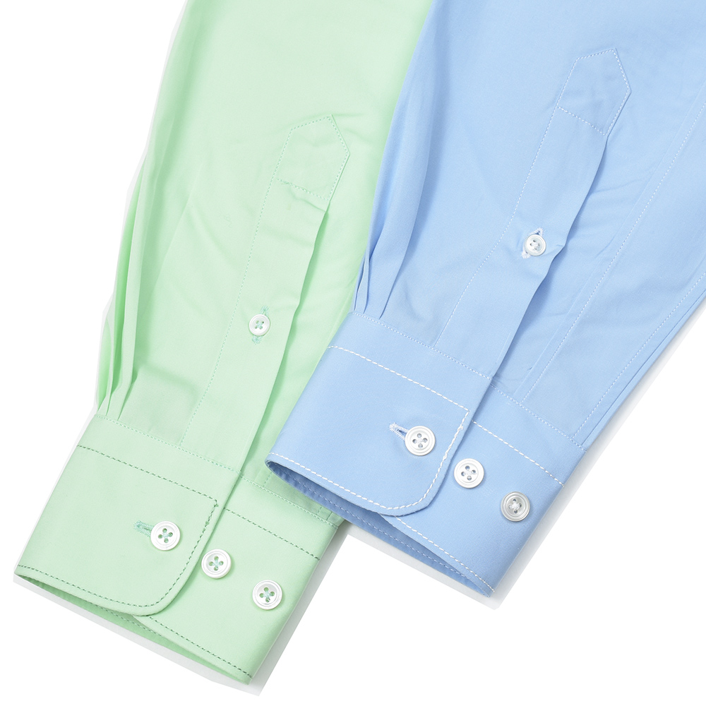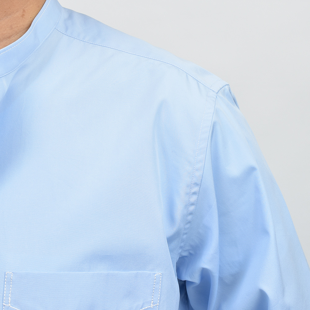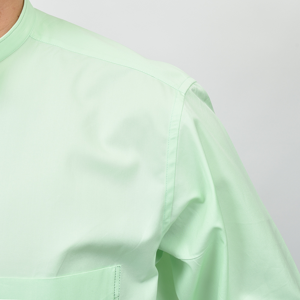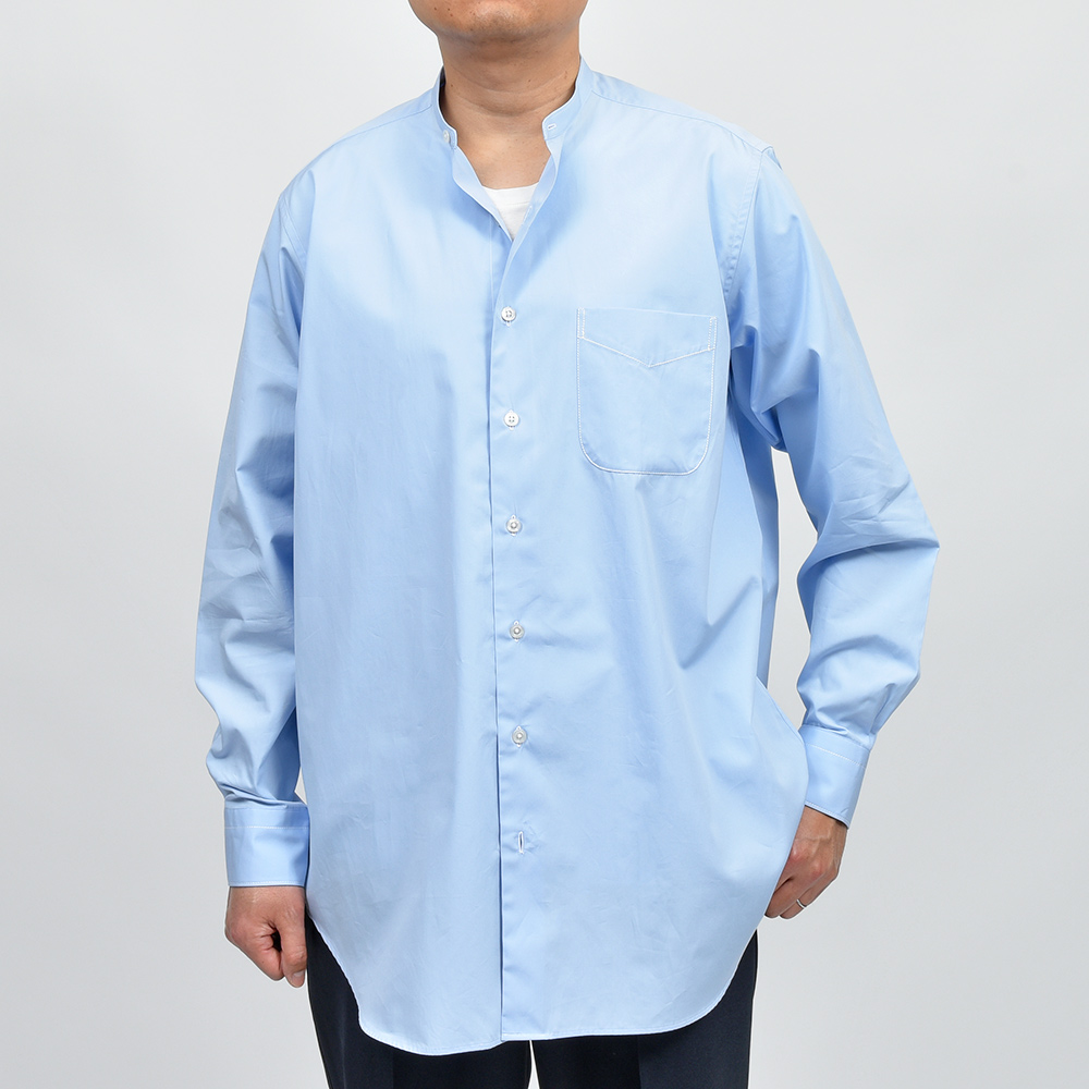 素材はエジプト超長綿のGIZAコットン120双糸を高密度に織った“Full Weight Egyptian Poplin”。ハリとコシのあるヘビーなポプリンに、パッカリングが起きやすい箇所にはシルク糸で縫製を行っています。着用と洗濯を繰り返すことで変化する表情は、長い年月をかけて楽しめる飽きのこない一品です。