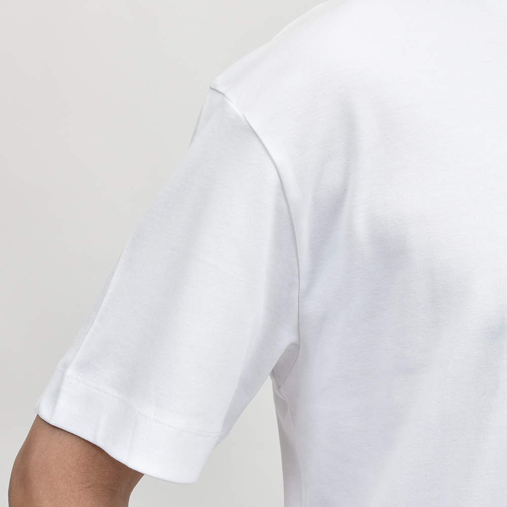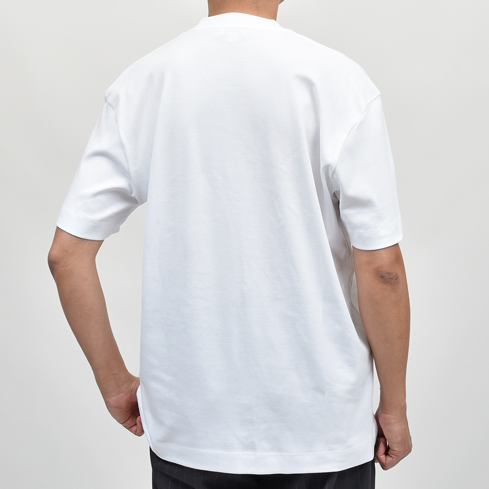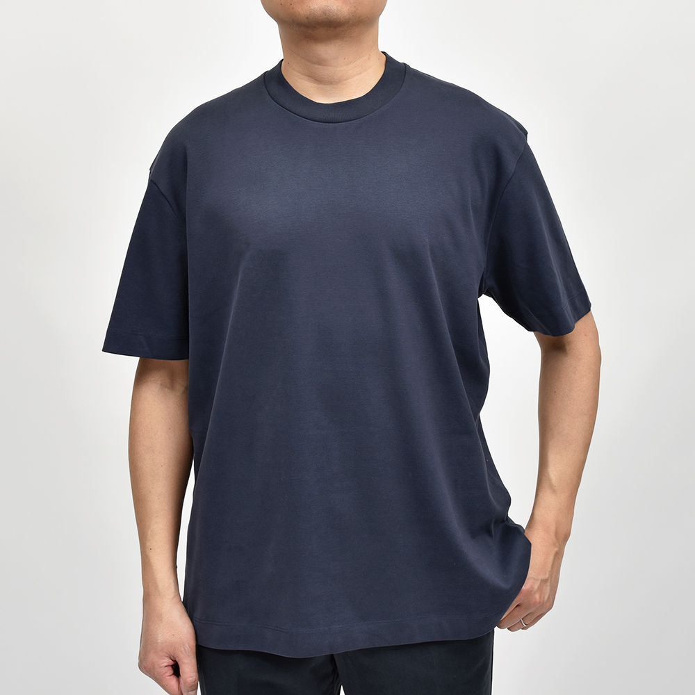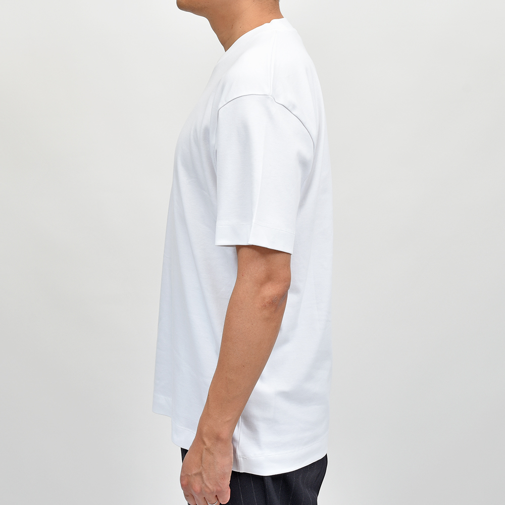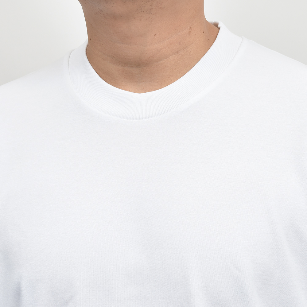 最高級のカリフォルニア産エクストラロングステープル(超長繊維)スーピマコットンを使用したこちらは、程よいコシがありつつも滑らかで肌触りの良いシルキーな質感。リラックス感あるフィッティングに、少し太めのネックリブ。さらに、しっかりとしたヘビーウェイトのブラッシュドコットン生地を使用することで、透け感を抑え一枚で着用できる頼もしい一枚となっています。