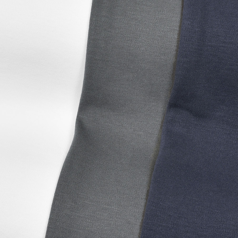 (画像のスタッフは182cm、76kgでホワイト・ネイビーはXLサイズを、チャコールはLサイズを着用しています。)