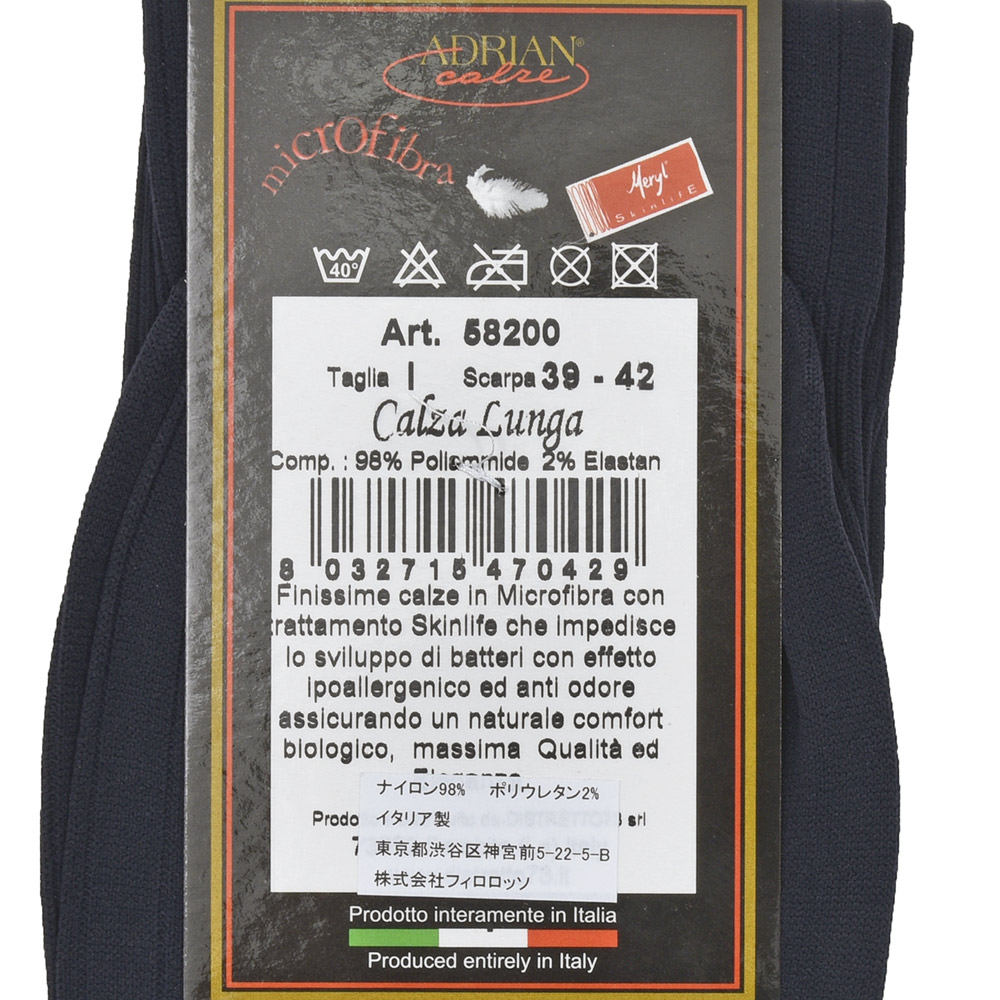 ADRIANが使用する“Meryl Skinlife(メリル スキンライフ)”と呼ばれるマイクロファイバーは、長時間履いてもしっかりフィットします。さらにナイロン素材特有の耐久性に、バクテリアの繁殖を抑えるため、防臭効果も非常に優れいているのが特徴です。また、静電気を発生させないためパンツにまとわり付く事もありません。