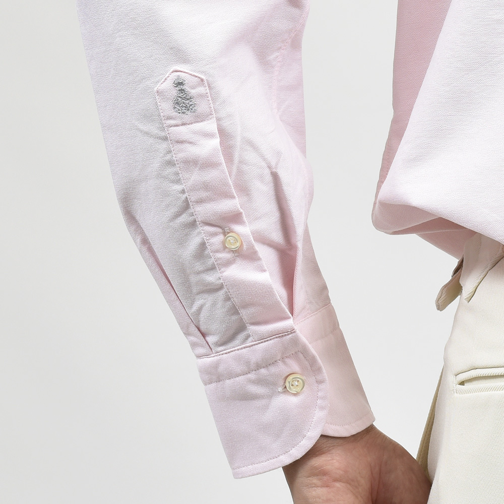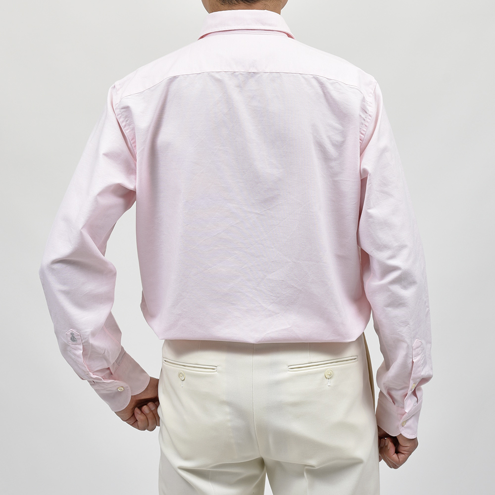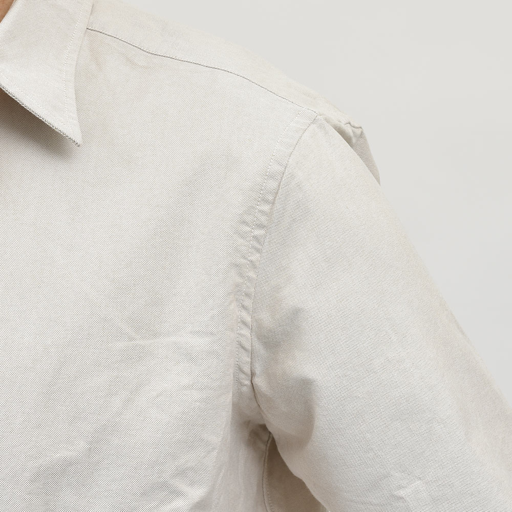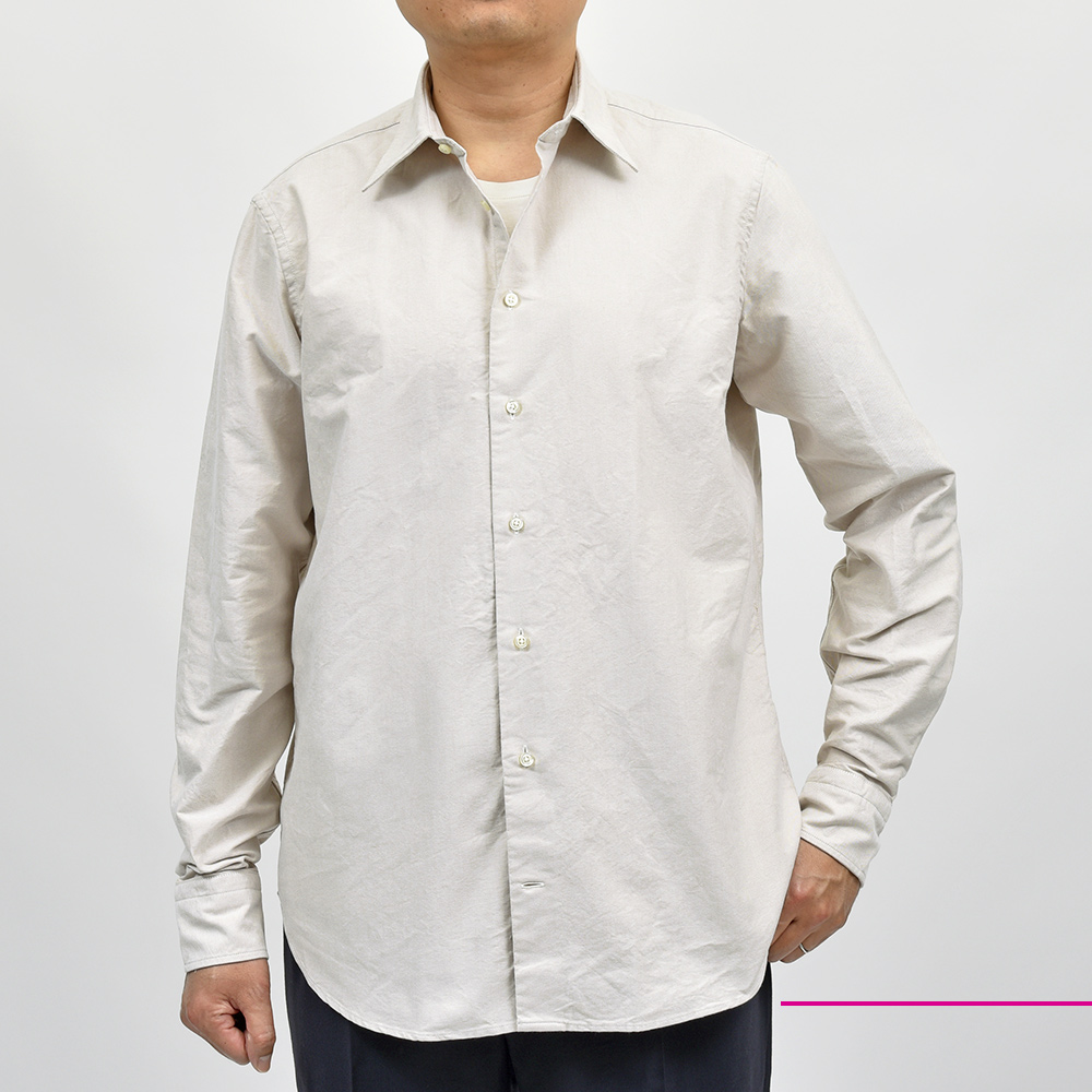 程良くガシッとした質感を残したオックスフォード生地を使用したこちらは、ゆとりのあるFITを採用したレギュラーカラーモデルになります。一見すると端正なカジュアルシャツですが、サイズ感で現代的な味付けを施したインでもアウトでもサマになる一品です。