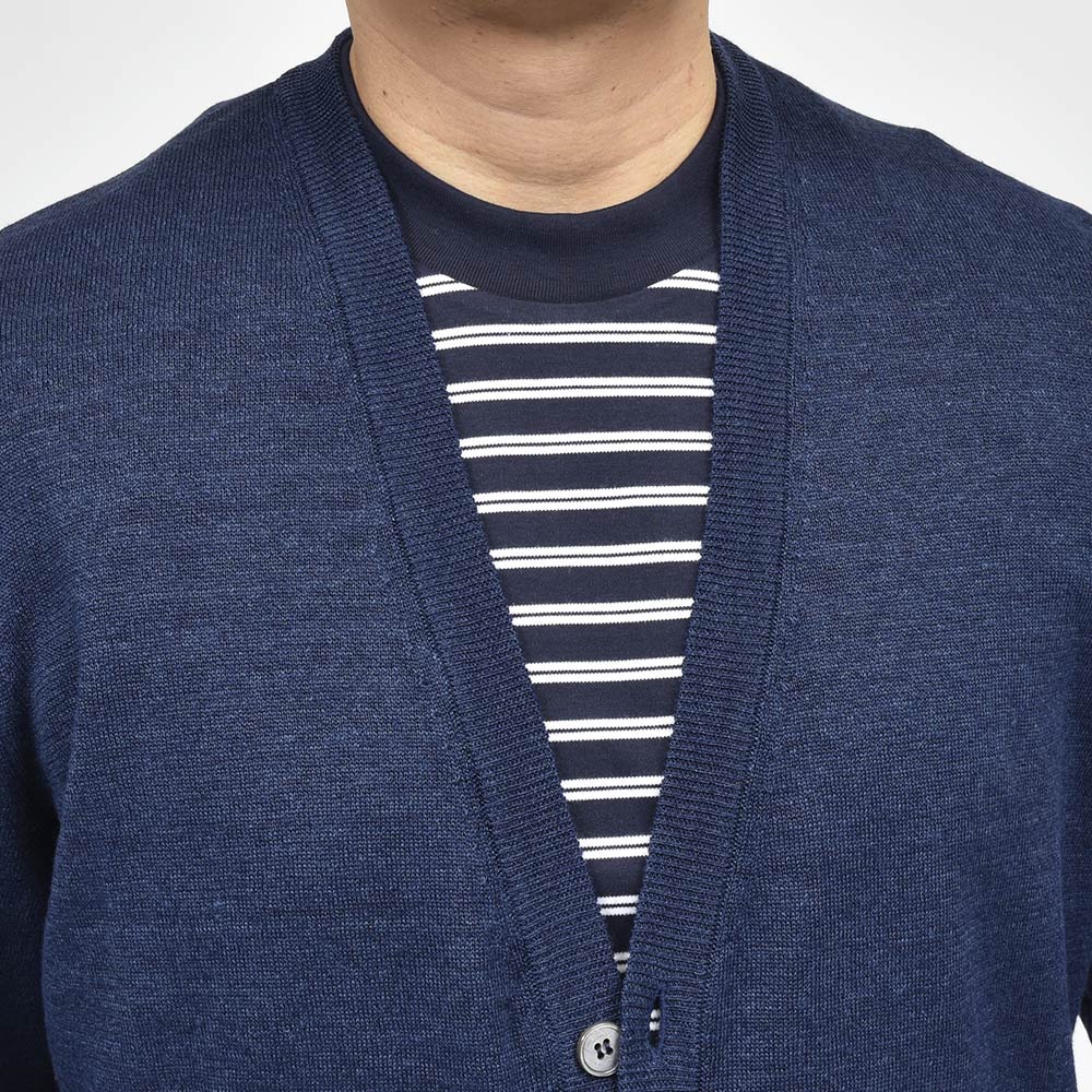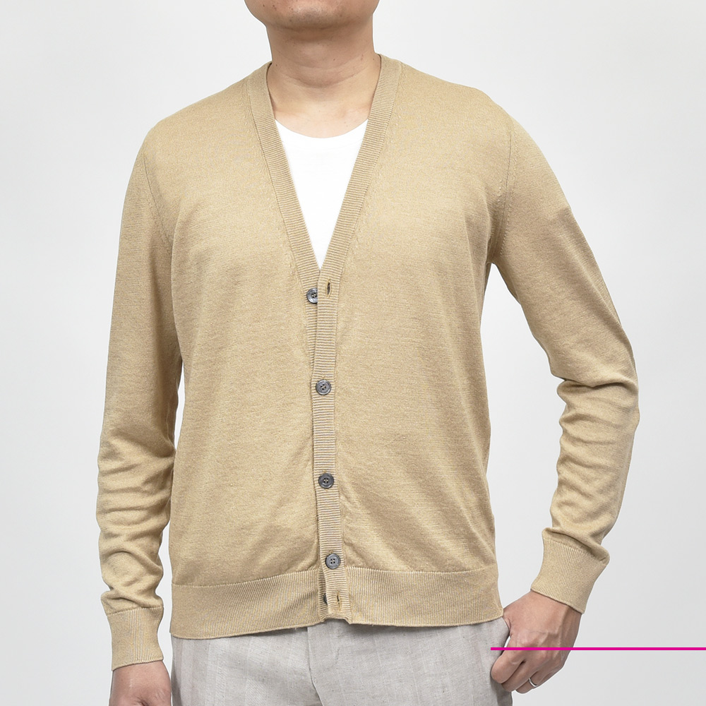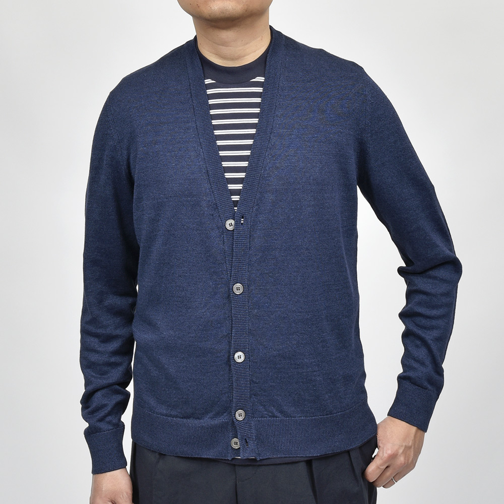リネン コットン ハイゲージ ニット カーディガン