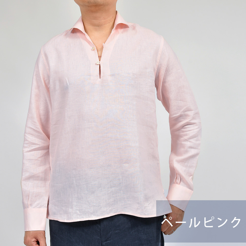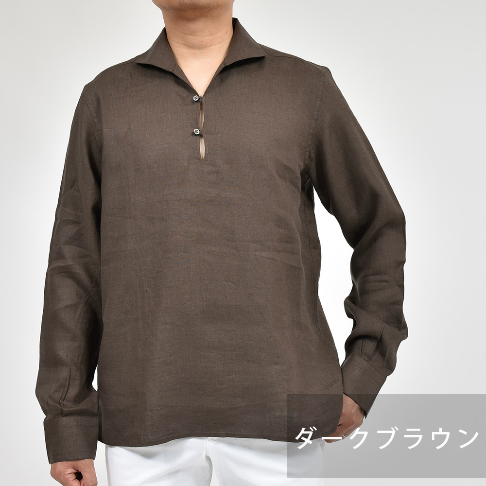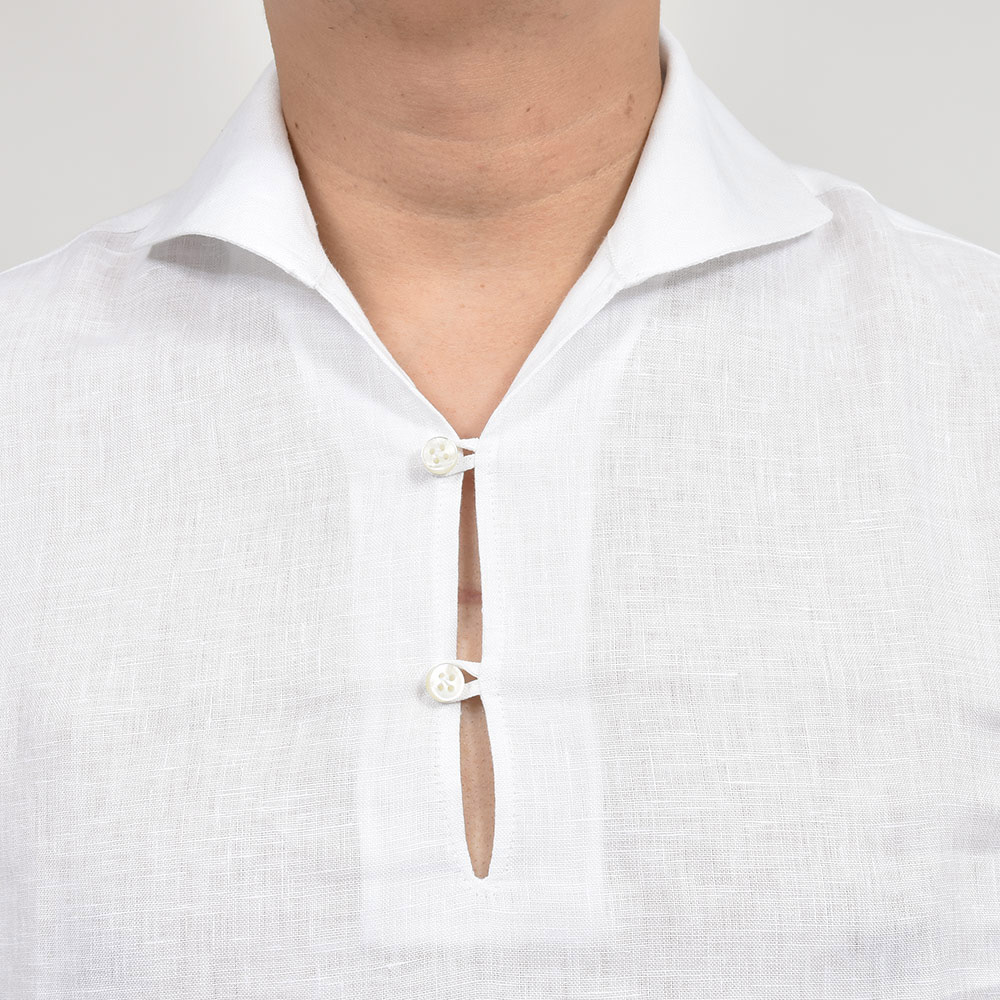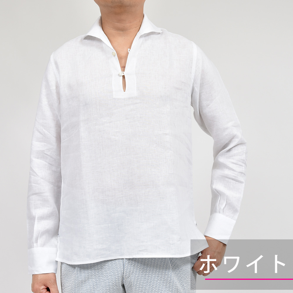 上質なリネン素材を用いたシャツ専業ブランドであるが故の高いクオリティー。現代的なすっきりとしたシルエットの仕立ては、モダンな色気を漂わせる“Massimo d'Augusto”。一枚でリゾーティーに着るも良し、ジャケットのインナー使いでも良し、この夏の最重要アイテムといっても過言ではないのがカプリシャツです。Massimo d'Augustoのカプリシャツは、シンプルな中に香る本物のオーラが感じられることで、カプリシャツを着るという満足感に浸ることができます。