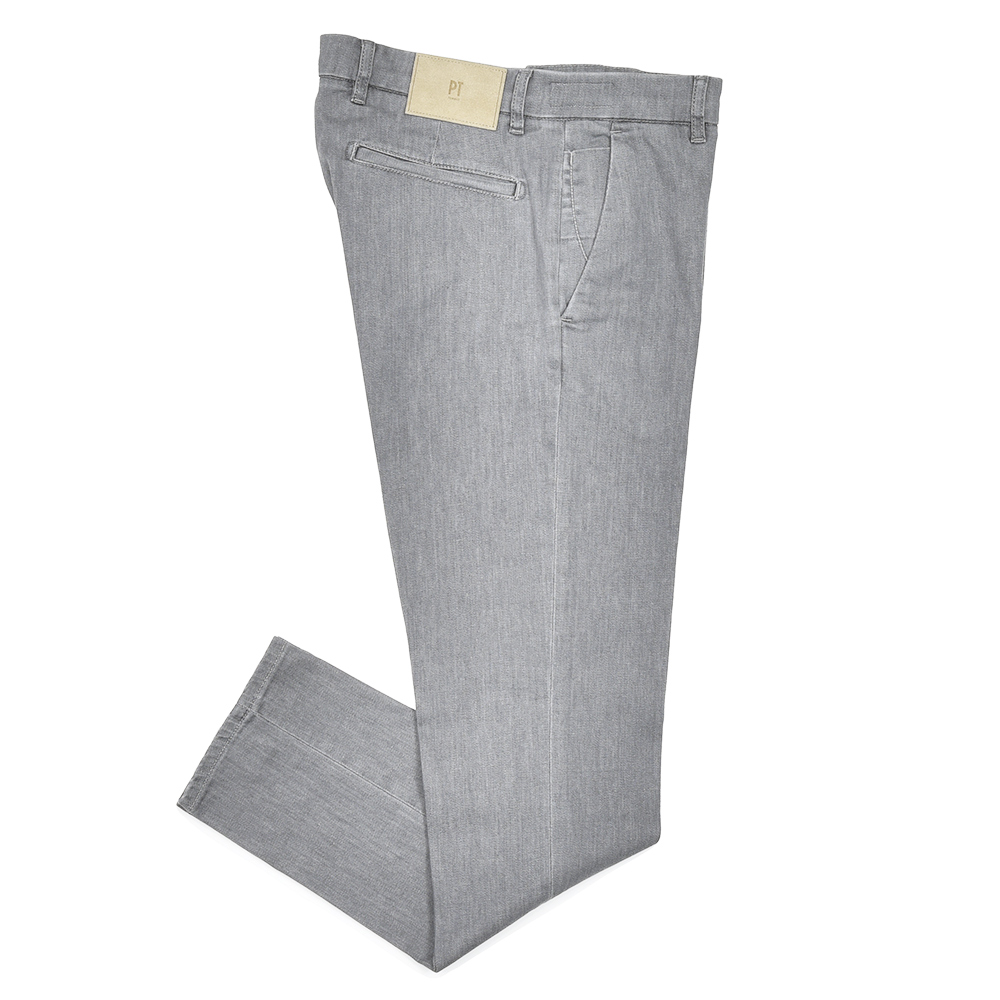 通年で使える薄すぎず厚すぎないオンスのコットン100%を使用したデニム生地は、ややハリ感を持たせつつも程よくしなやかな風合いです。シルバーのボタンと、ウォッシュド加工を施しアタリを付けたエイジングの雰囲気が素晴らしい一着。PT TORINOのウェアーコレクションでは定番となった3rdタイプをモチーフとしたGジャンは、シャープなシルエットがモーダな香りを漂わせます。また、オリジナルには無い、腰に付けられたスラントポケットは、タウンユースとして非常にありがたい仕様です。以前よりお声の多かったGジャン型ブルゾンは、PT TORINOファンが待ちに待った待望の一着と言えます。