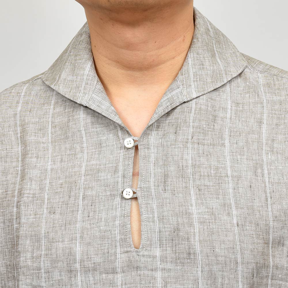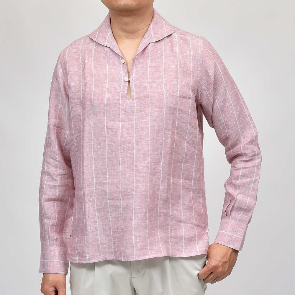 上質なリネン素材を用いたシャツ専業ブランドであるが故の高いクオリティー。現代的なすっきりとしたシルエットの仕立ては、モダンな色気を漂わせる“Massimo d'Augusto”。一枚でリゾーティーに着るも良し、ジャケットのインナー使いでも良し、この夏の最重要アイテムといっても過言ではないのがカプリシャツです。Massimo d'Augustoのカプリシャツは、シンプルな中に香る本物のオーラが感じられることで、カプリシャツを着るという満足感に浸ることができます。