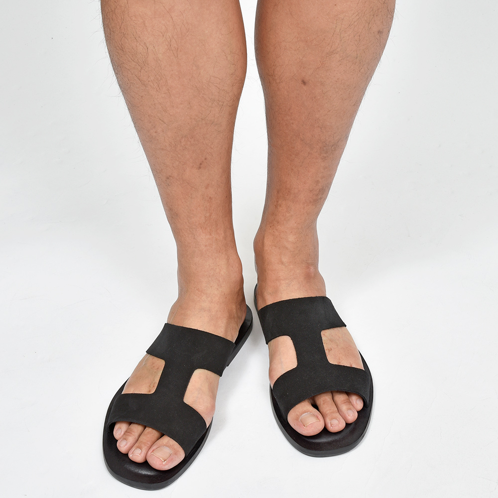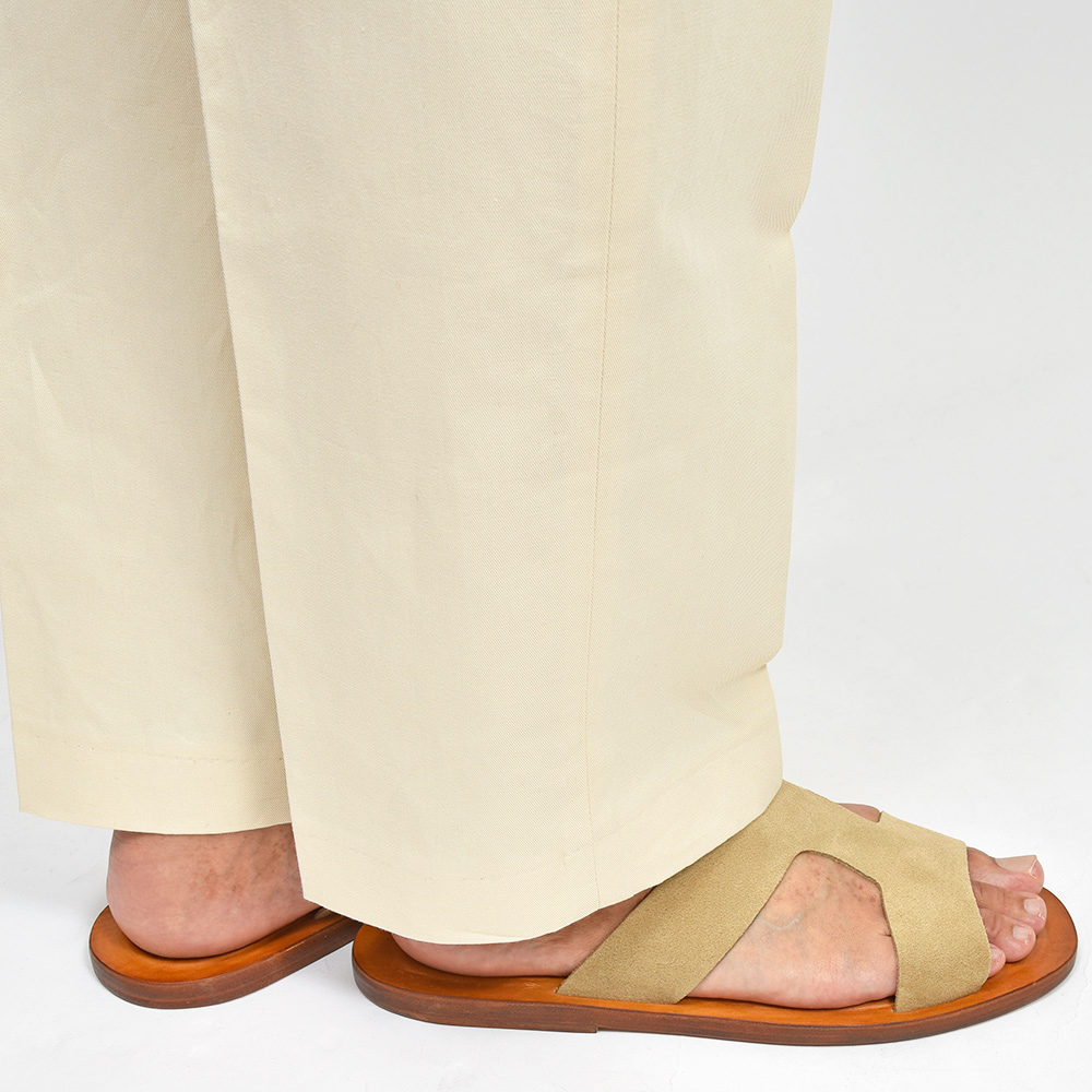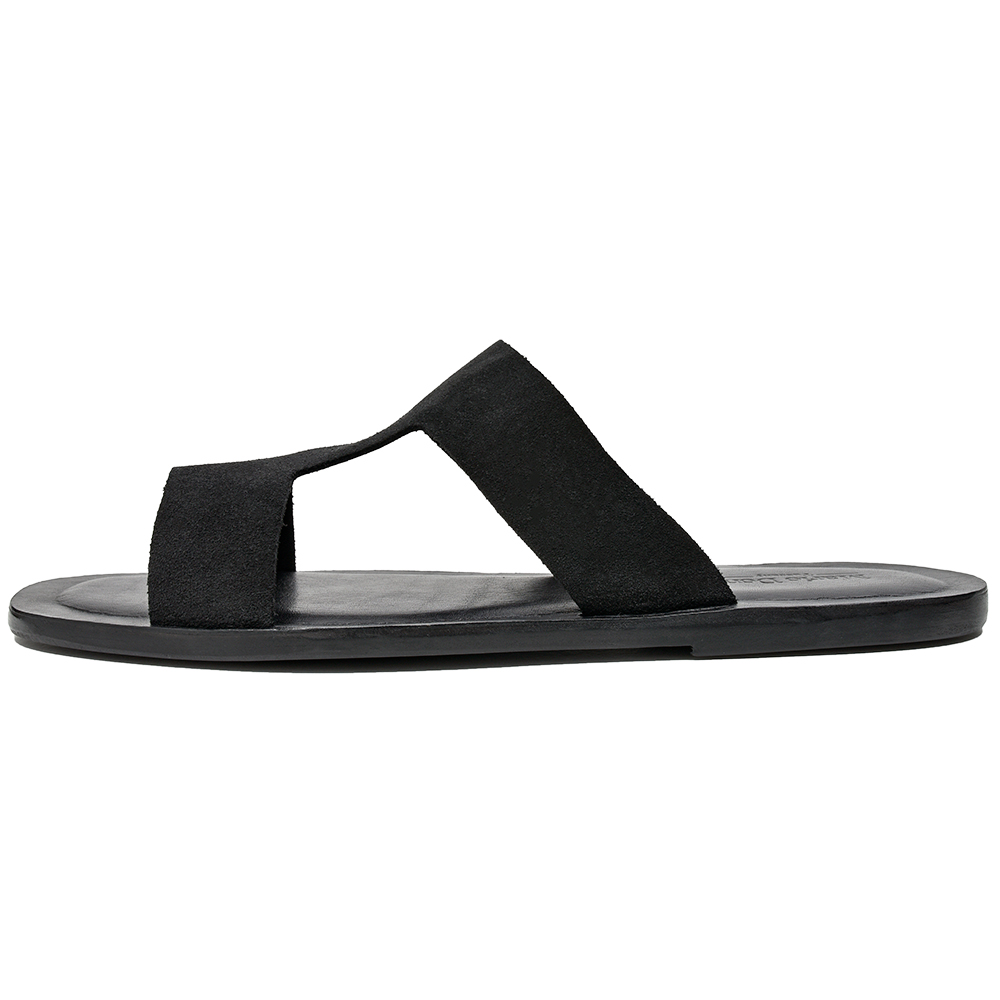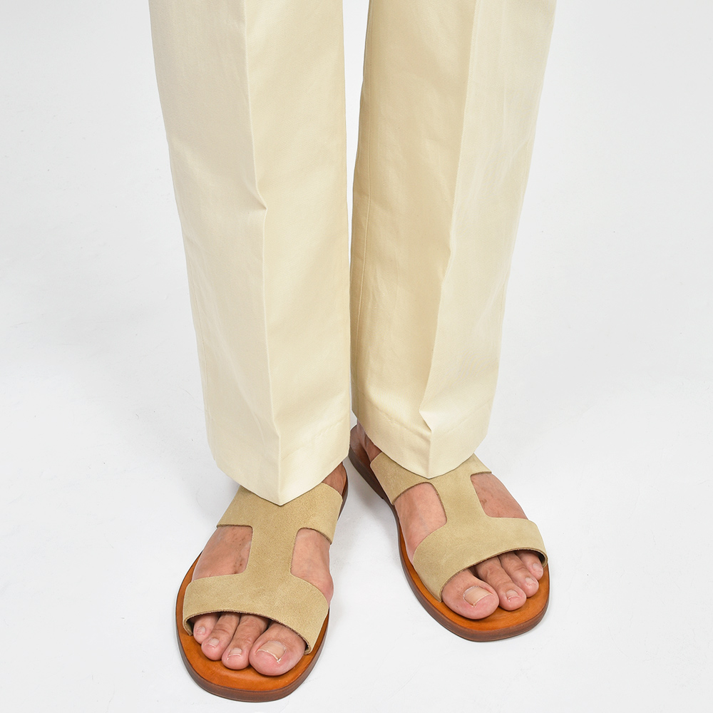 今やレザーサンダルで代表的とも言えるデザインに上質なカーフスエードの表情が、スタイリングを引き締めつつもカジュアルになりすぎず上品さを感じさせてくれます。