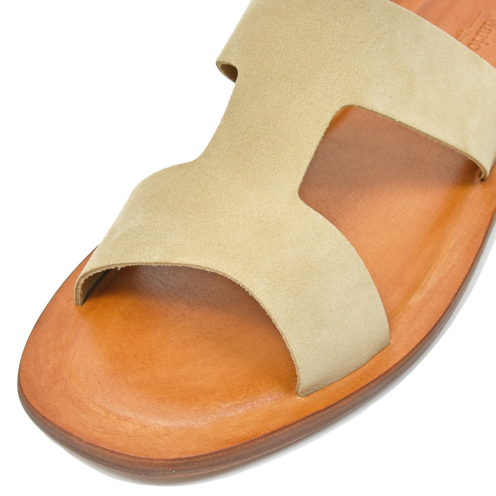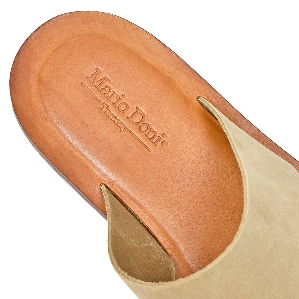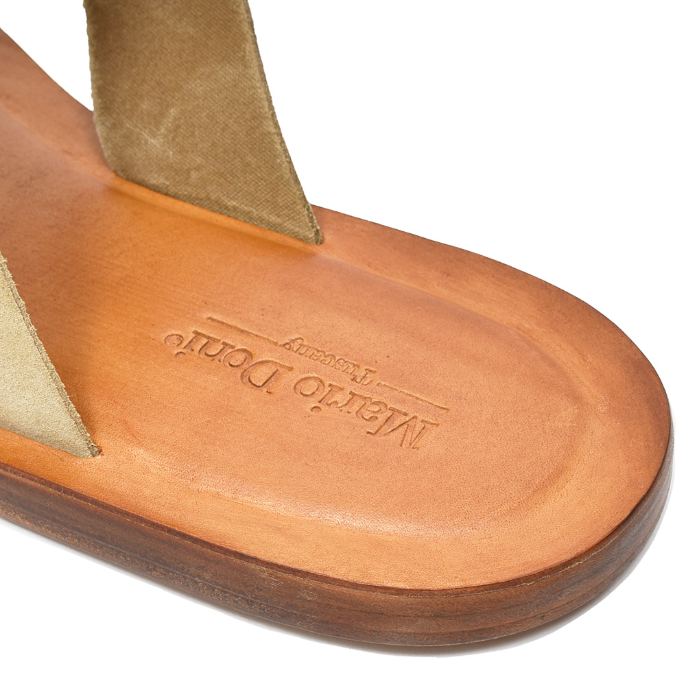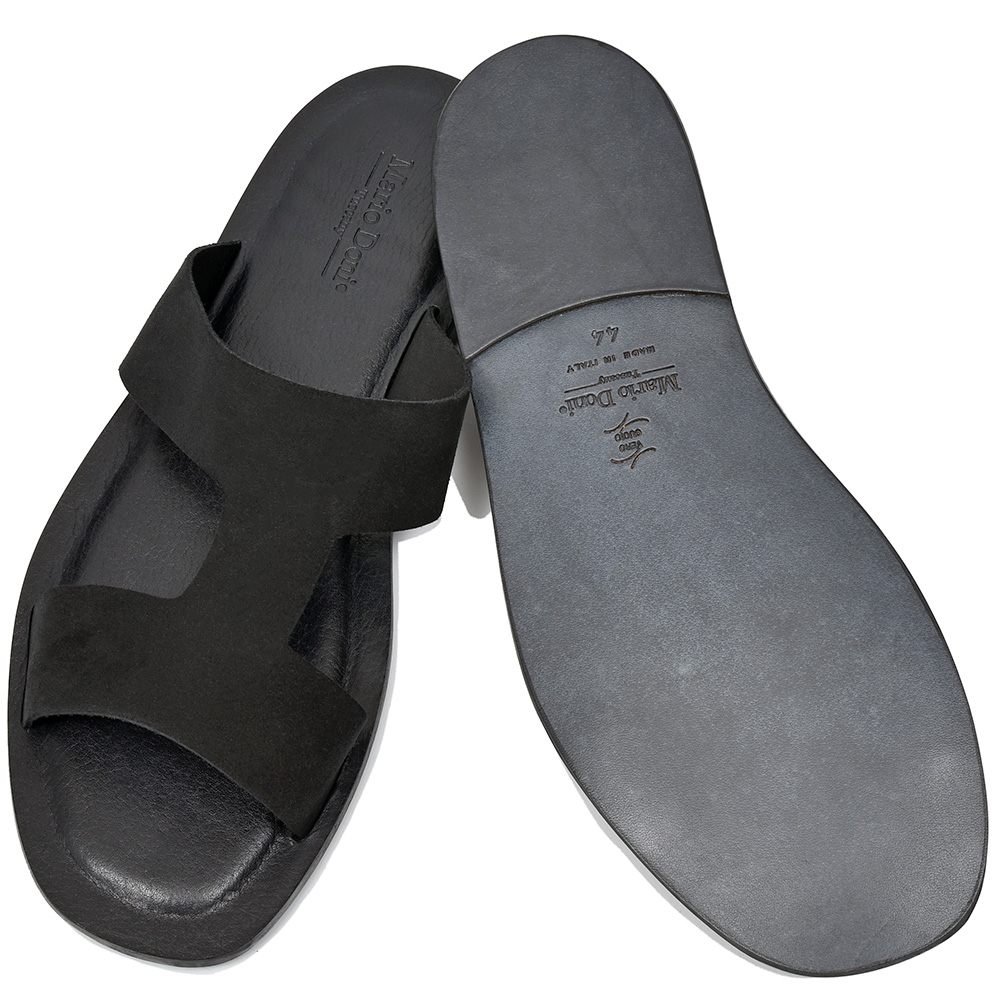オールハンドメイドで作られるMario Doniのレザーサンダルは、小さな工房ならではの職人による一点一点丁寧に作られた、美しい仕上がりからくる上品な佇まい。植物から摘出した天然のタンニンを使用して鞣された、トスカーナ地方の伝統的な製法バケッタレザーは、履き込むほどに味わいを増し経年変化を楽しめる一品。また、インソールにはクッション性のある素材を内蔵しているため、履き心地も考えられた作りとなっています。