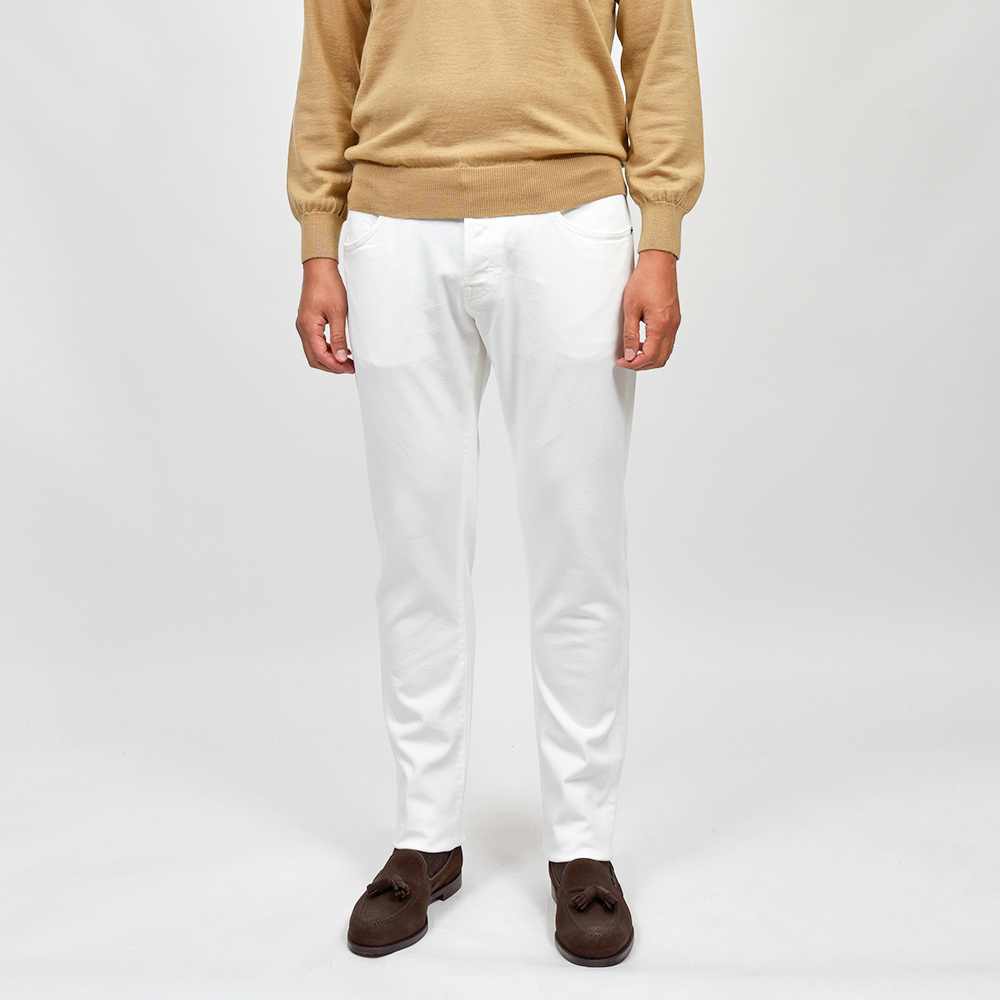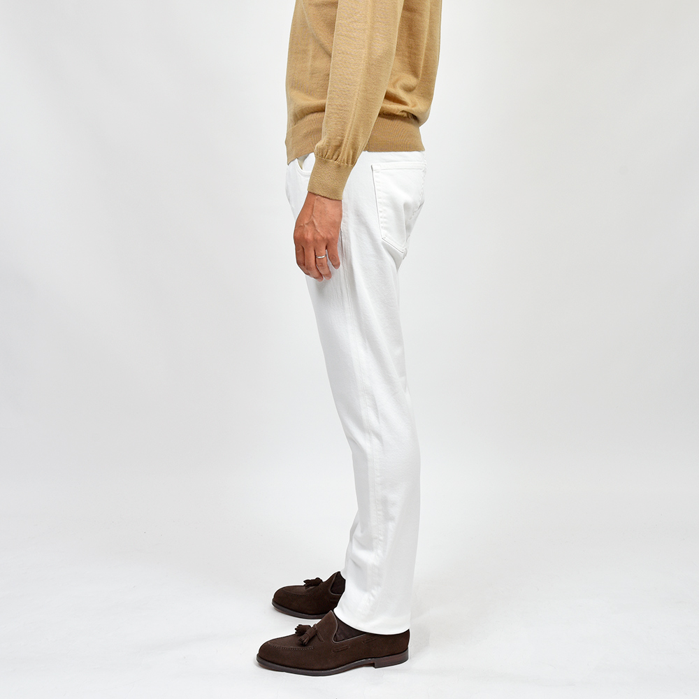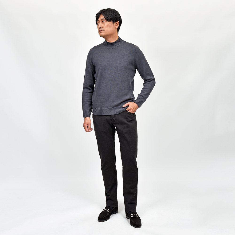 程よくストレッチの効いたファブリックを使用したこちらは、レギュラーシルエットのモデル“BREAKBEAT”。時代の流れによるシルエットの変化を受けて、久しぶりにコレクションに復活しました。スリムシルエットの“SWING”、スリムレギュラーの“JAZZ”、そしてレギュラーシルエットの“BREAKBEAT”といったシルエットの流れは、様々な体型やニーズに応えられる万全の布陣。